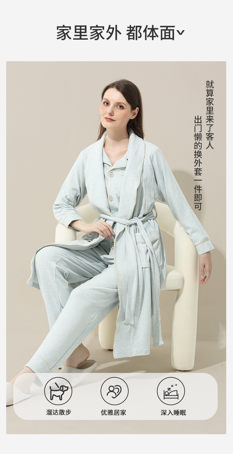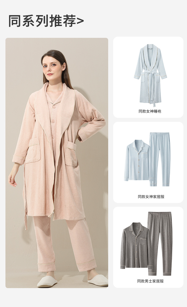 Meiyabei jacquard rejilla Otoño e Invierno camisón de las mujeres traje de pijamas traje de lana forrado espesado almacenamiento de calor puede salir el hogar desgaste