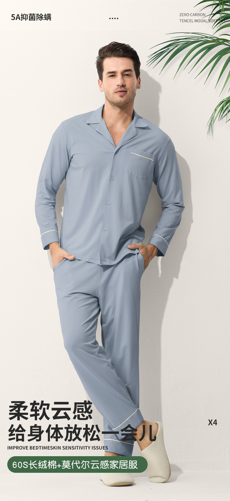 Conjunto de pijama de algodón modal para hombre, estilo delgado, para usar en el año de nacimiento, listo para la venta.