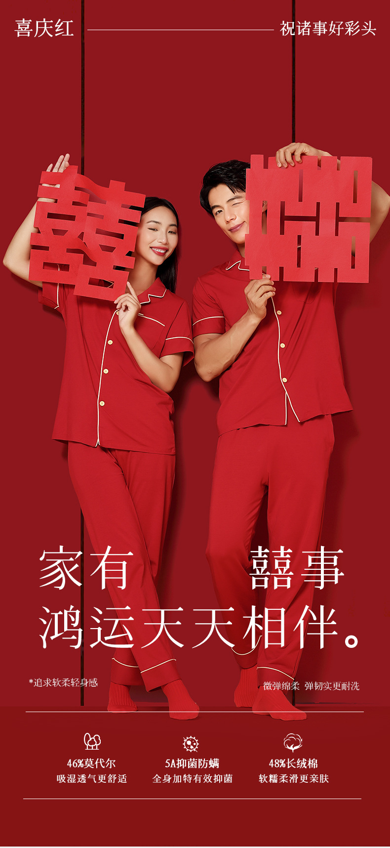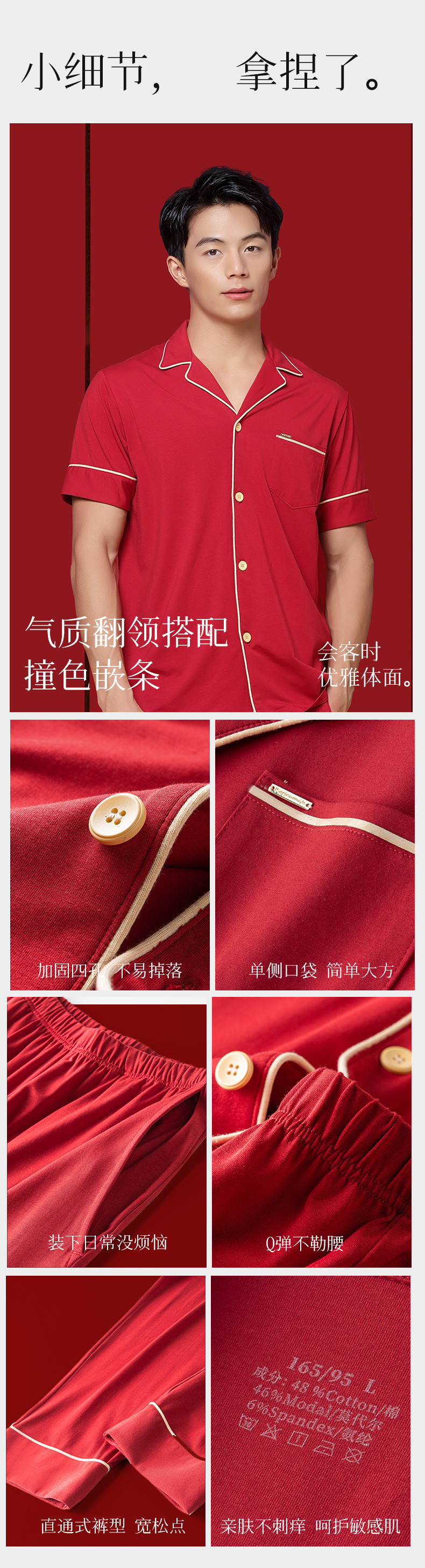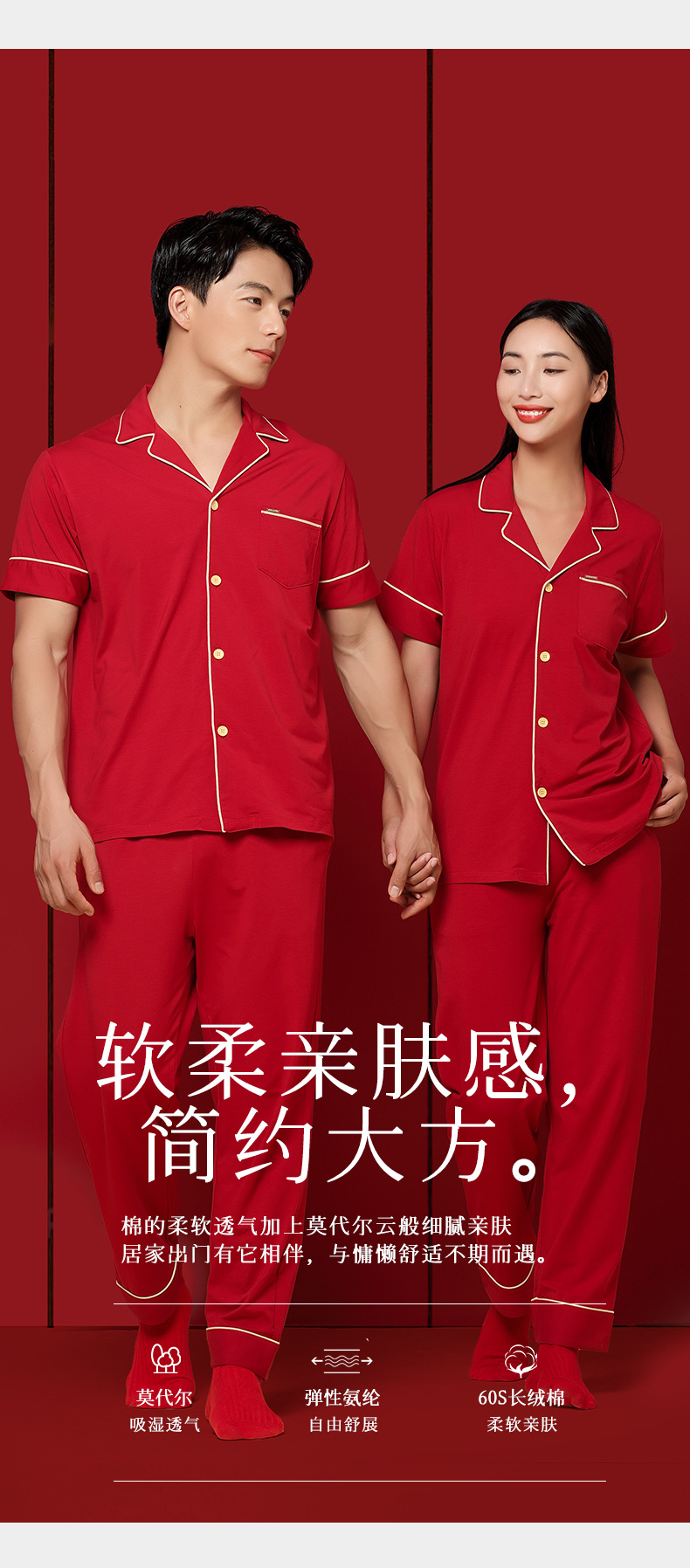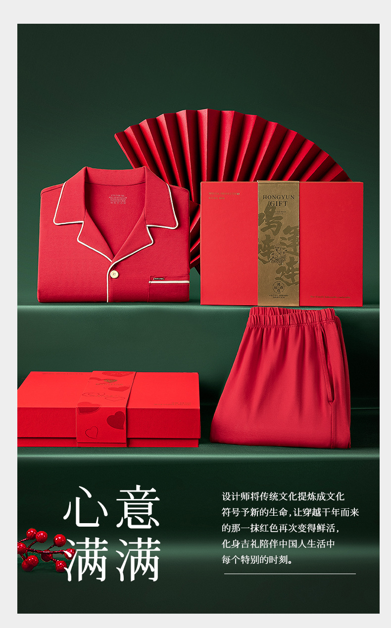 Nuevo conjunto de ropa de estar en casa de manga corta con cárdigan rojo de boda para parejas, de algodón modal, de 60 unidades, transfronterizo, en stock.