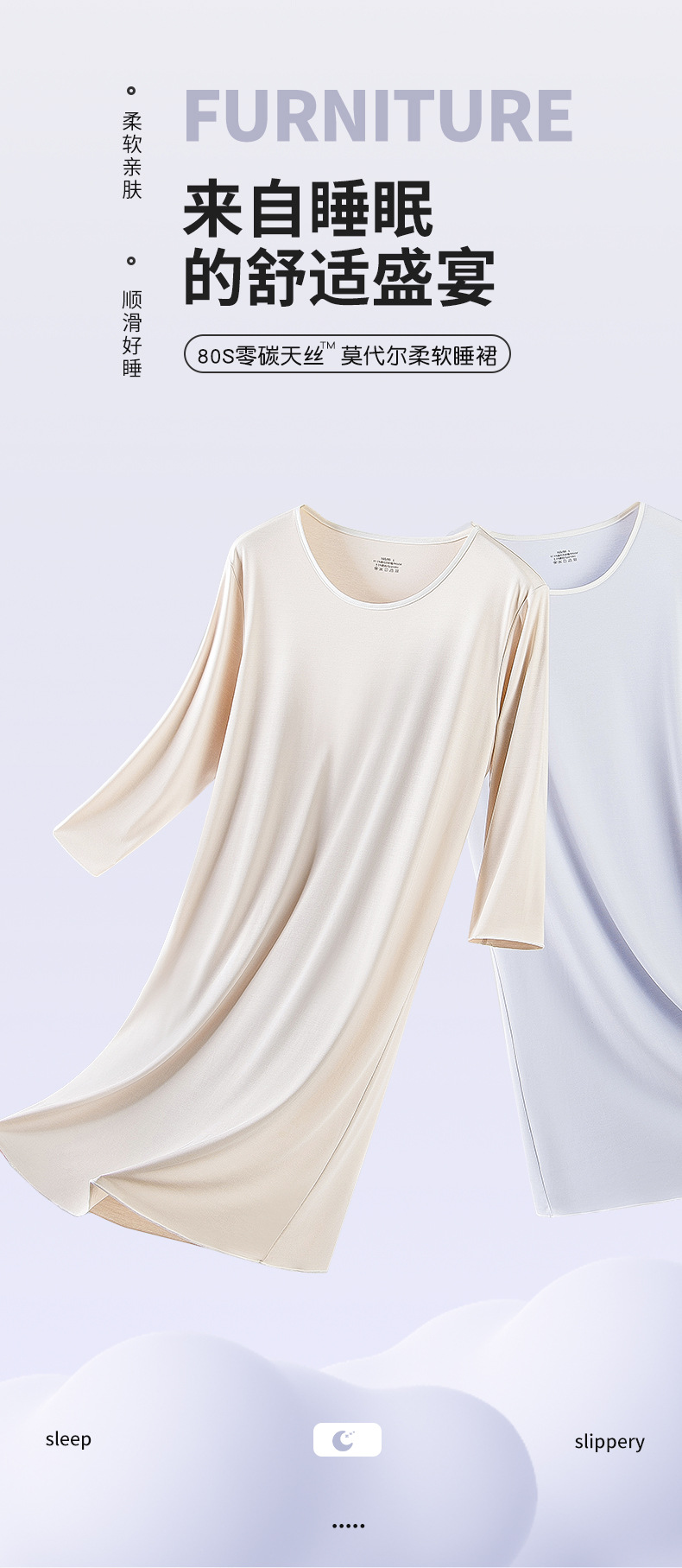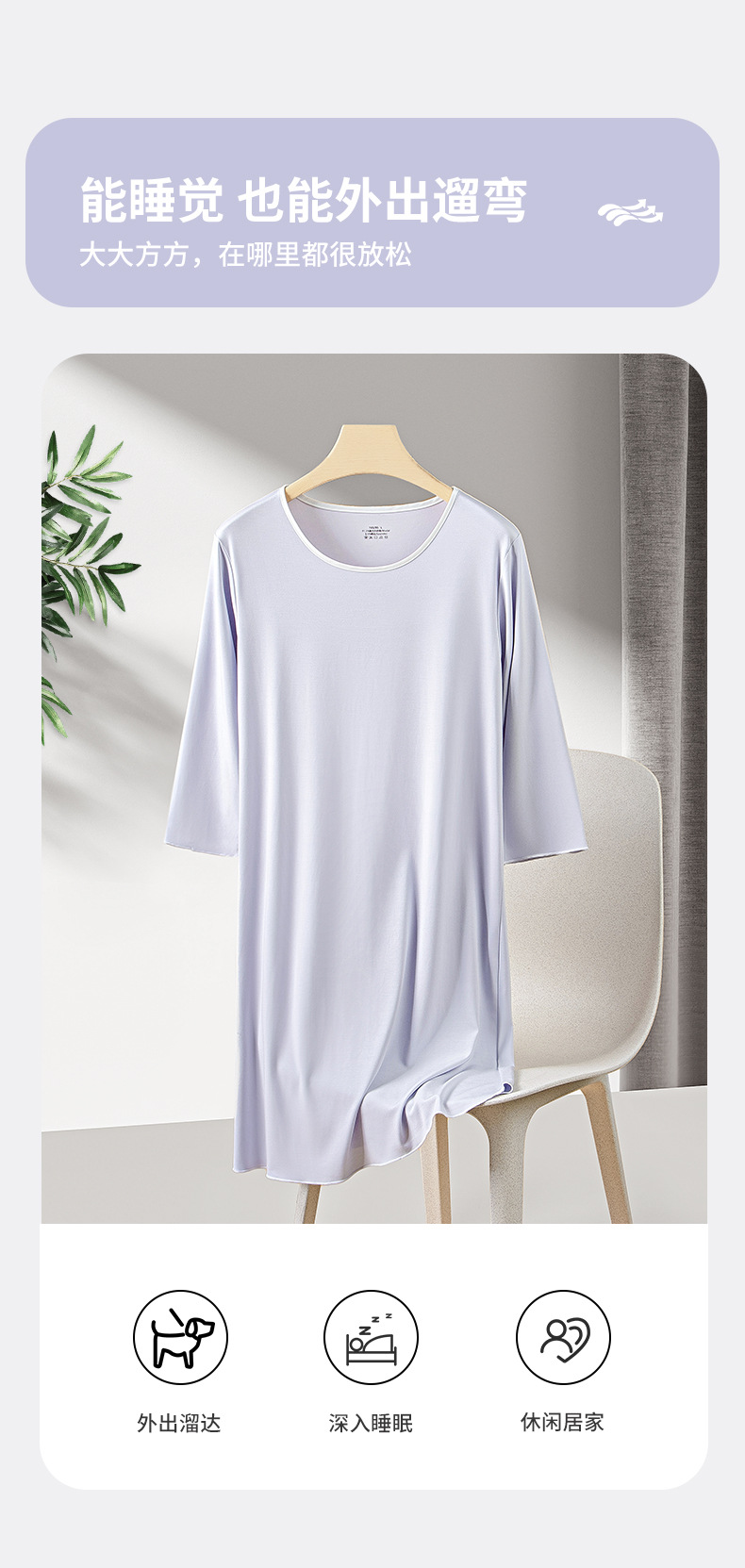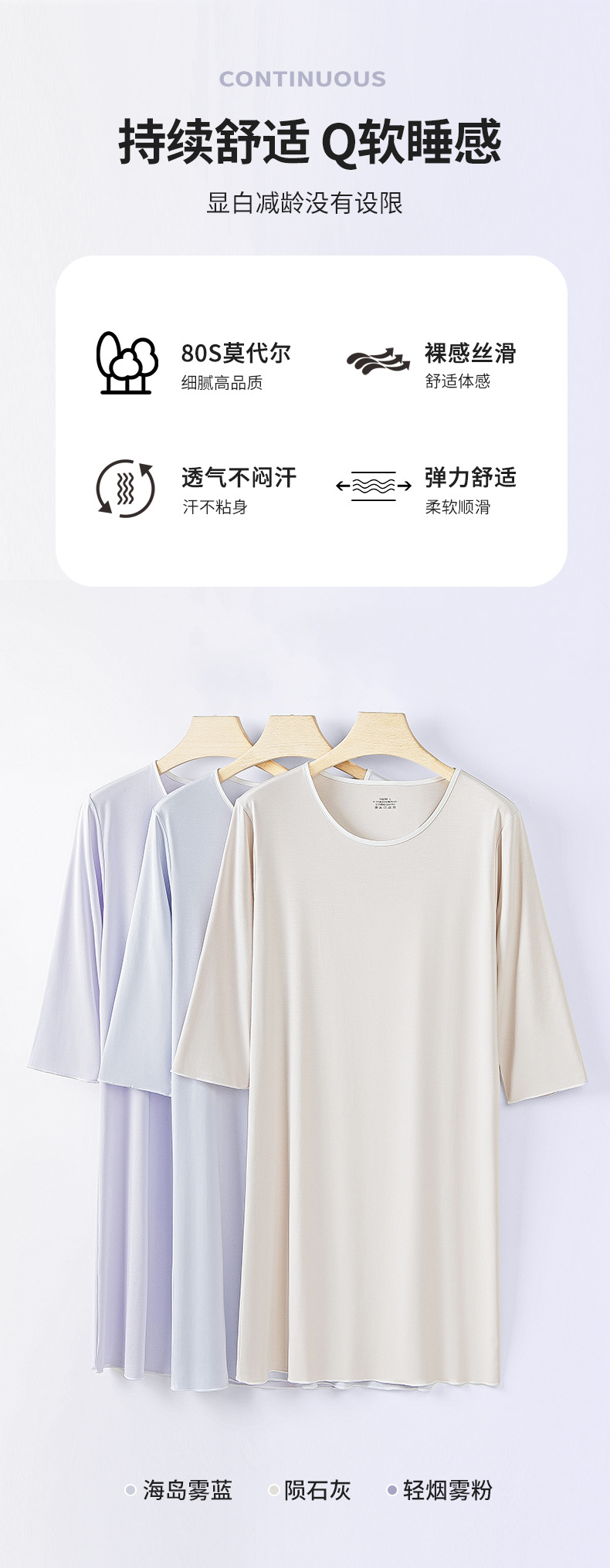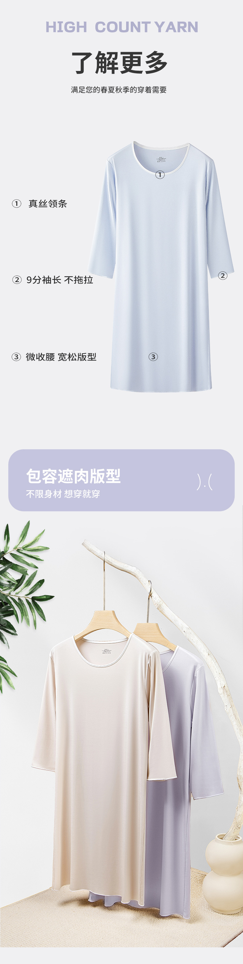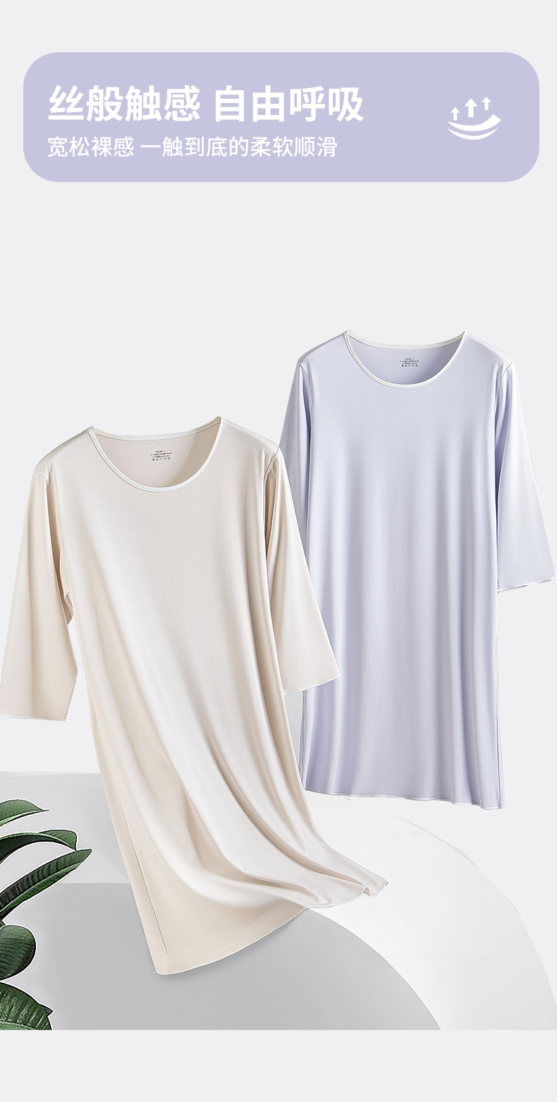 80 algodón de lujo modal de primavera y otoño de verano de las mujeres de tres cuartos de manga agradable para la piel cómodas piernas largas pueden salir camisón