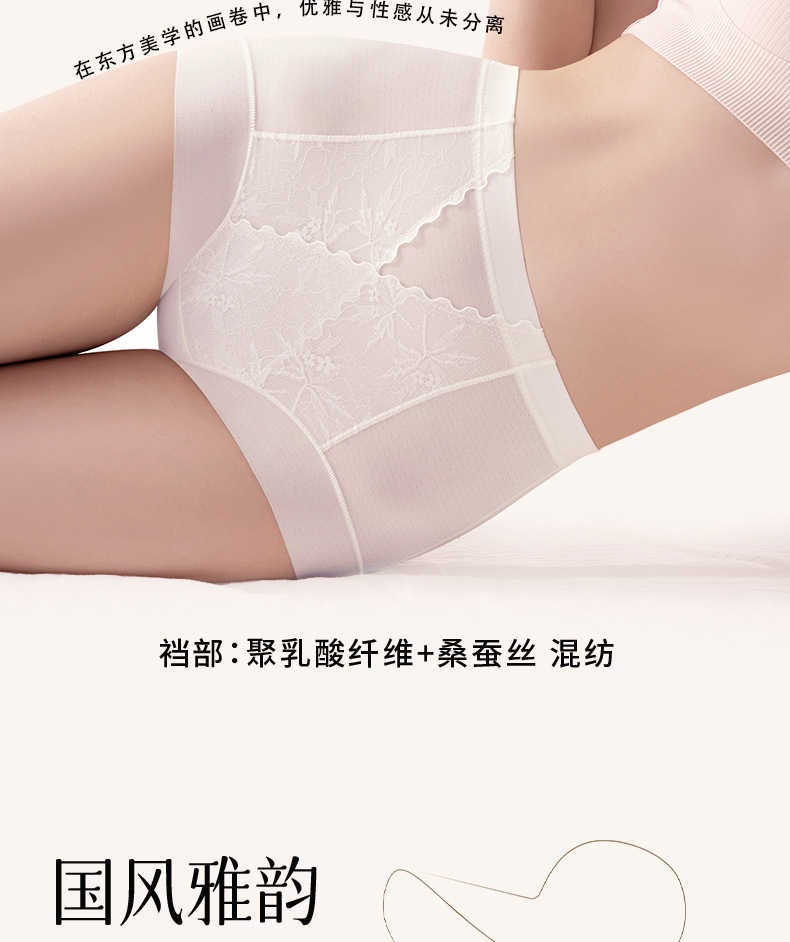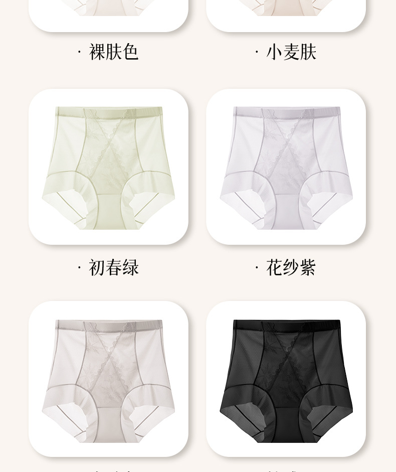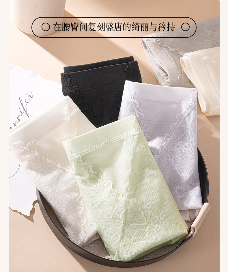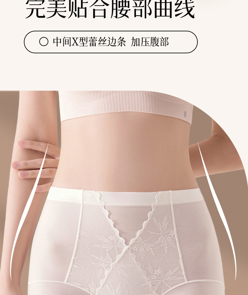 Ropa interior de encaje francés para mujer sin costuras de seda de hielo, cintura alta de gran tamaño, abdomen, caderas, entrepierna antibacteriana boxer pequeña, ropa interior para mujer