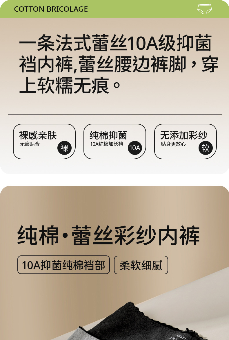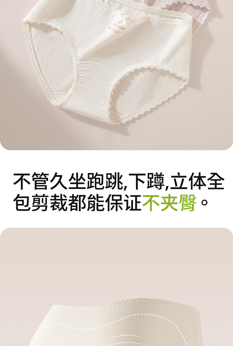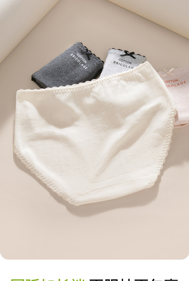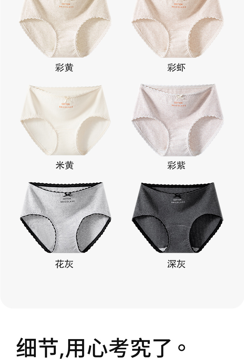 Versión grande de cintura media y alta Clase A de algodón puro 10A entrepierna antibacteriana entrepierna larga cómoda y transpirable hilo de color de encaje ropa interior de mujer