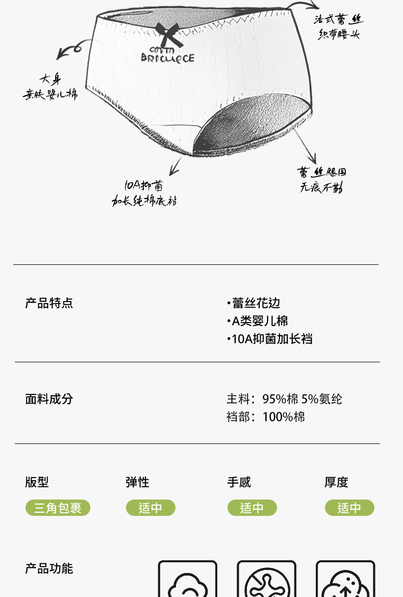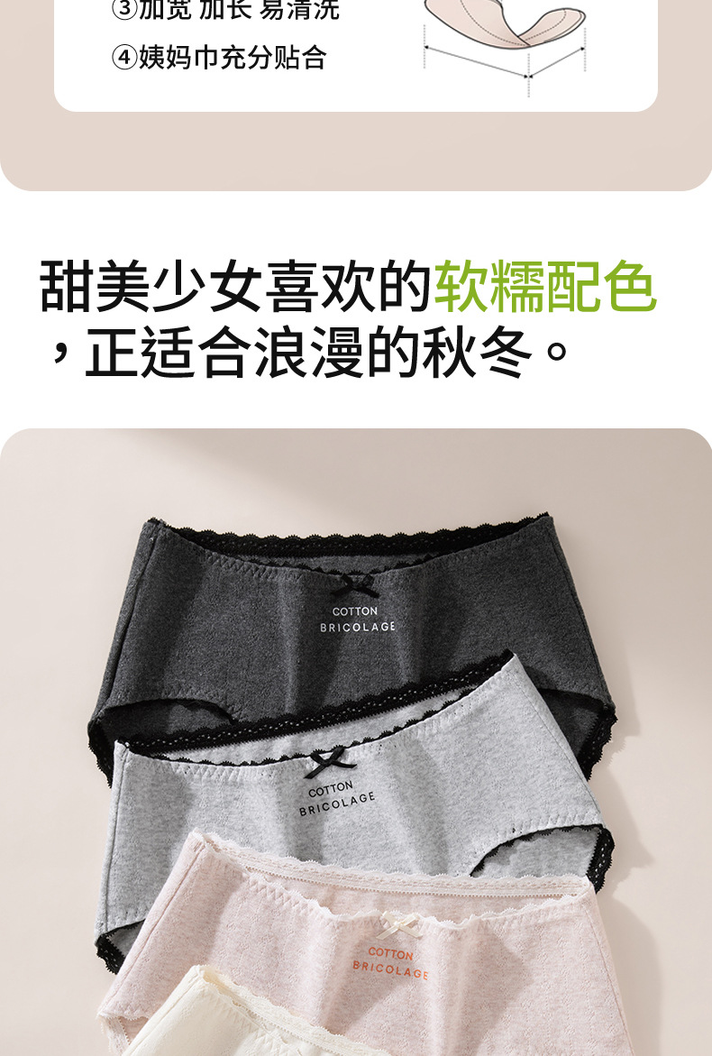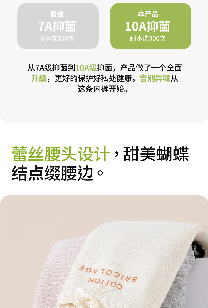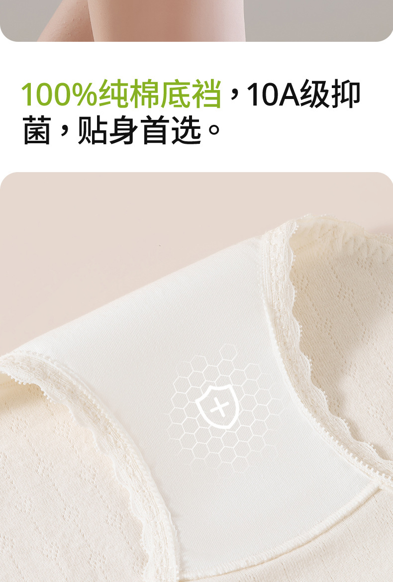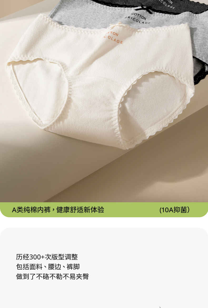 Versión grande de cintura media y alta Clase A de algodón puro 10A entrepierna antibacteriana entrepierna larga cómoda y transpirable hilo de color de encaje ropa interior de mujer