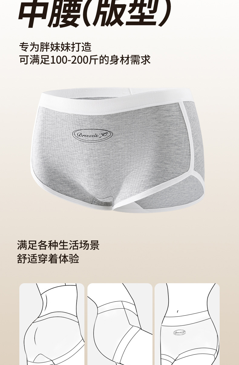 Clase A entrepierna de algodón puro entrepierna antibacteriana entrepierna ropa interior de gran tamaño grasa femenina 200 kg ropa interior de bóxer pequeña para mujer con bolsa de estilo deportivo de algodón puro