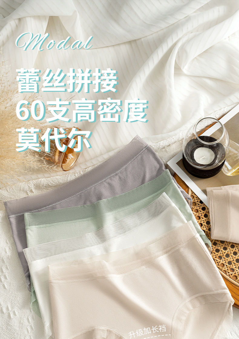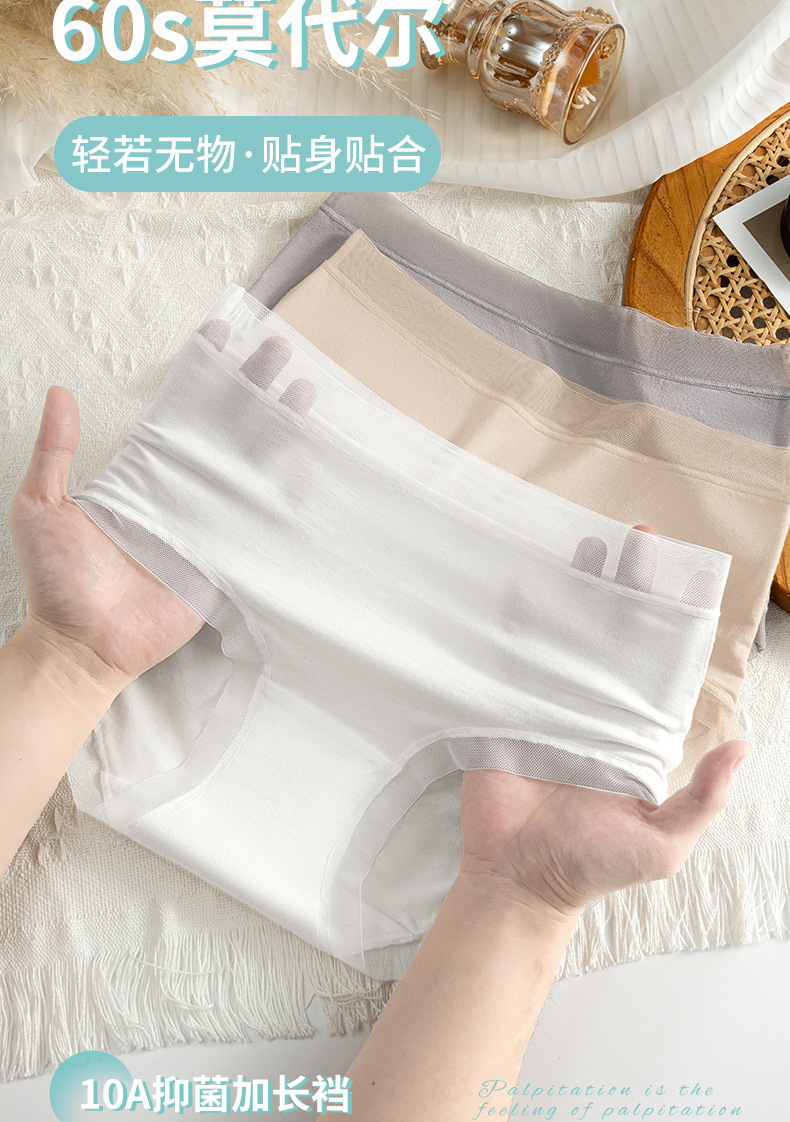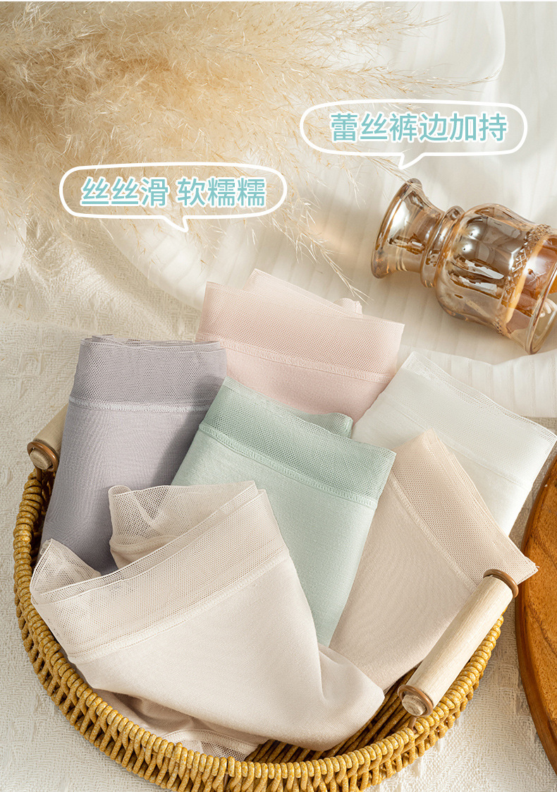 Bragas modales para mujer, cintura media, encaje sin costuras, seda de hielo delgada, entrepierna de algodón transpirable, entrepierna antibacteriana, calzoncillos para mujer