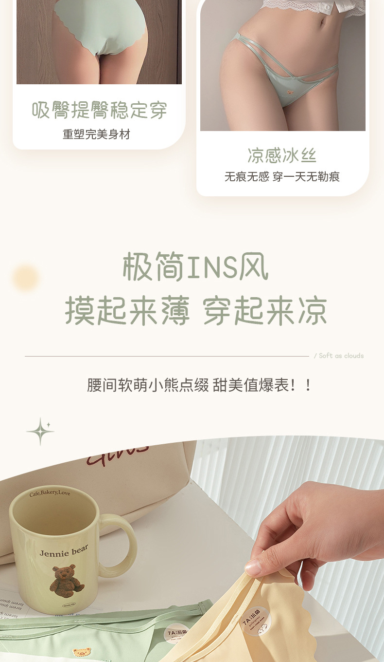 Hielo de seda algodón puro entrepierna antibacteriana cintura baja sin costuras sexy puro deseo tentación bragas de mujer cabeza transpirable calzoncillos de niña
