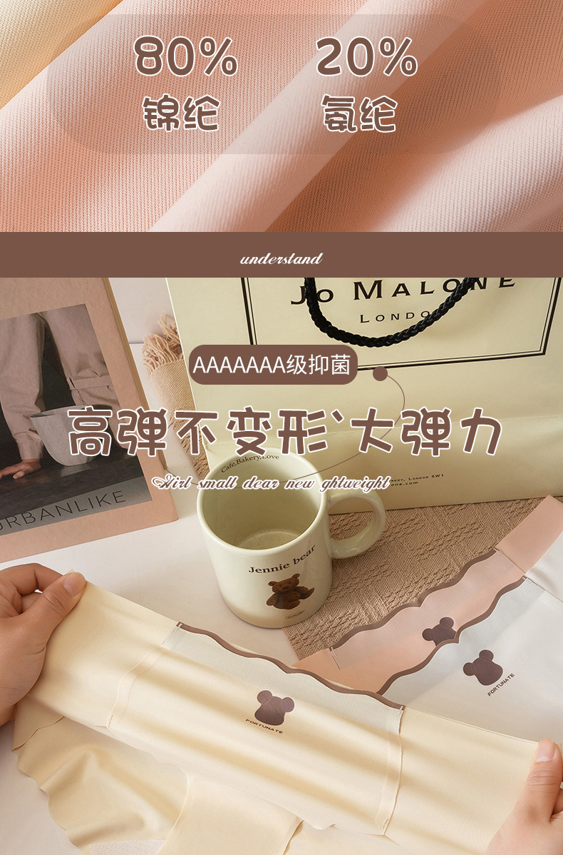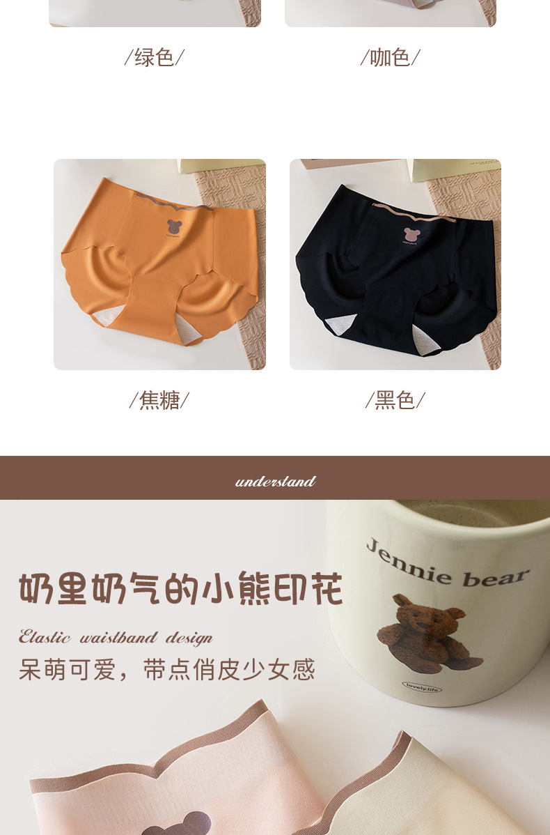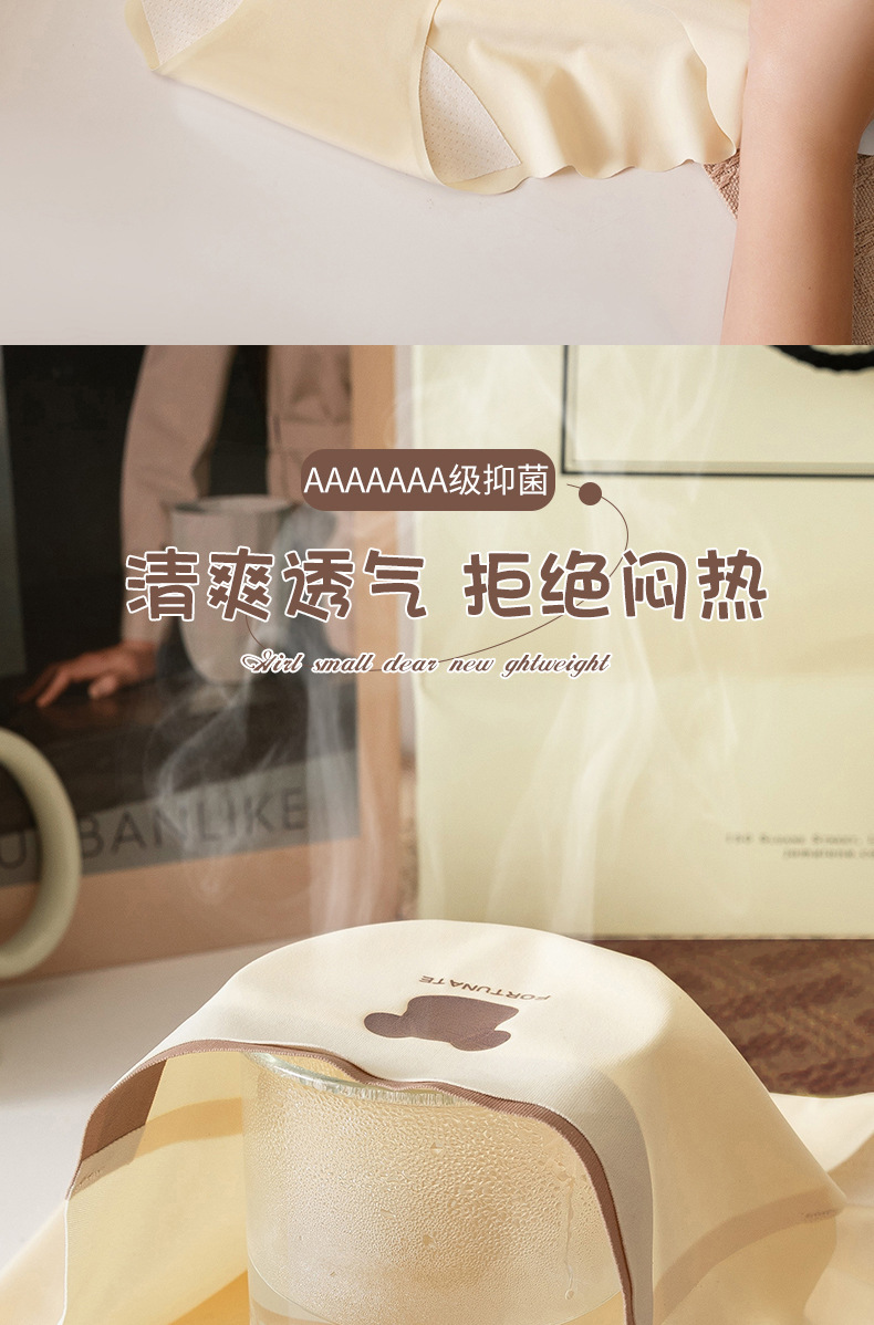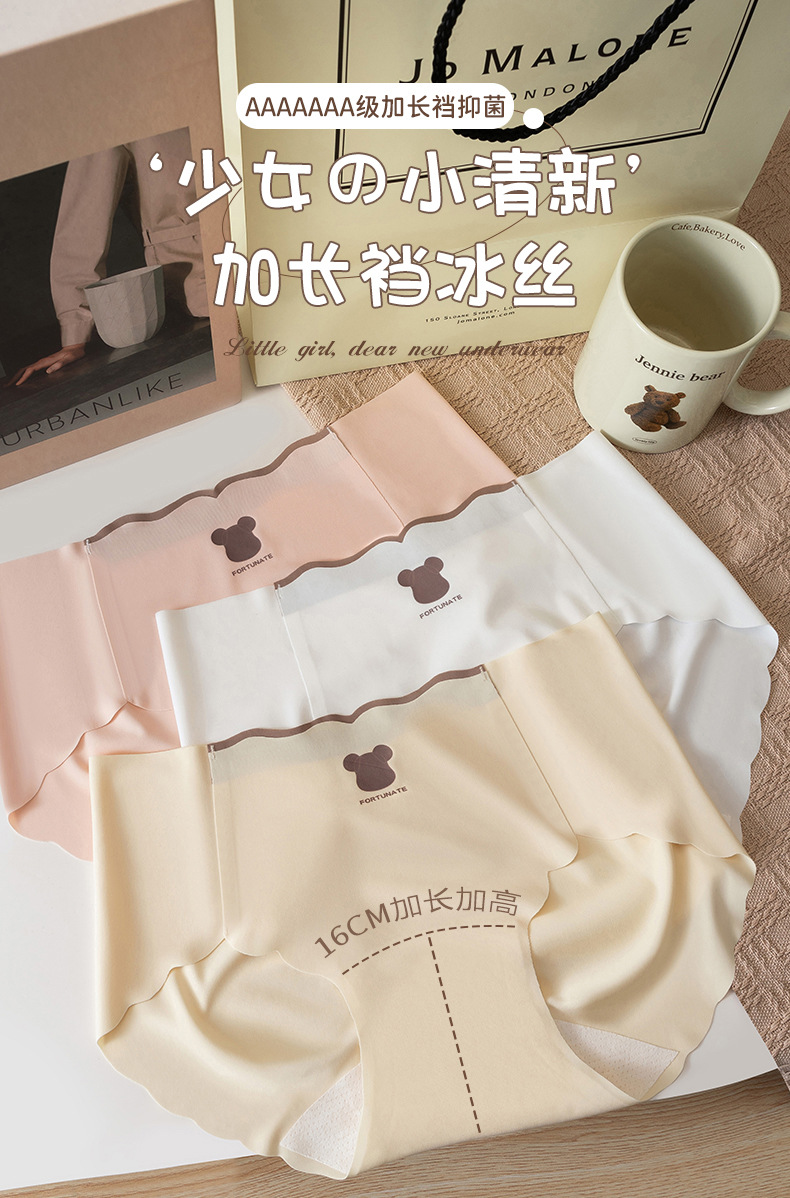 Primavera y verano nueva seda de hielo sin costuras oso yoga deportes seda de hielo algodón antibacteriano bragas de entrepierna larga
