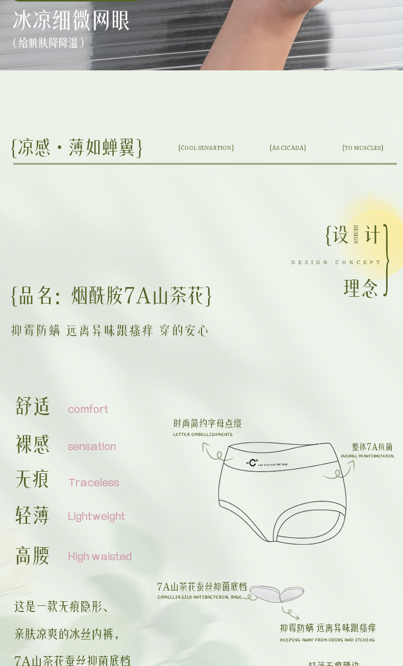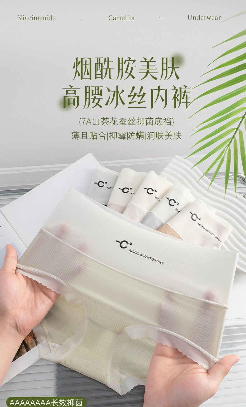 Seda de hielo de camelia sin costuras de cintura alta, seda de hielo de cintura alta ultrafina, entrepierna antibacteriana, seda de hielo, ropa interior de cintura alta sin costuras, refrescante