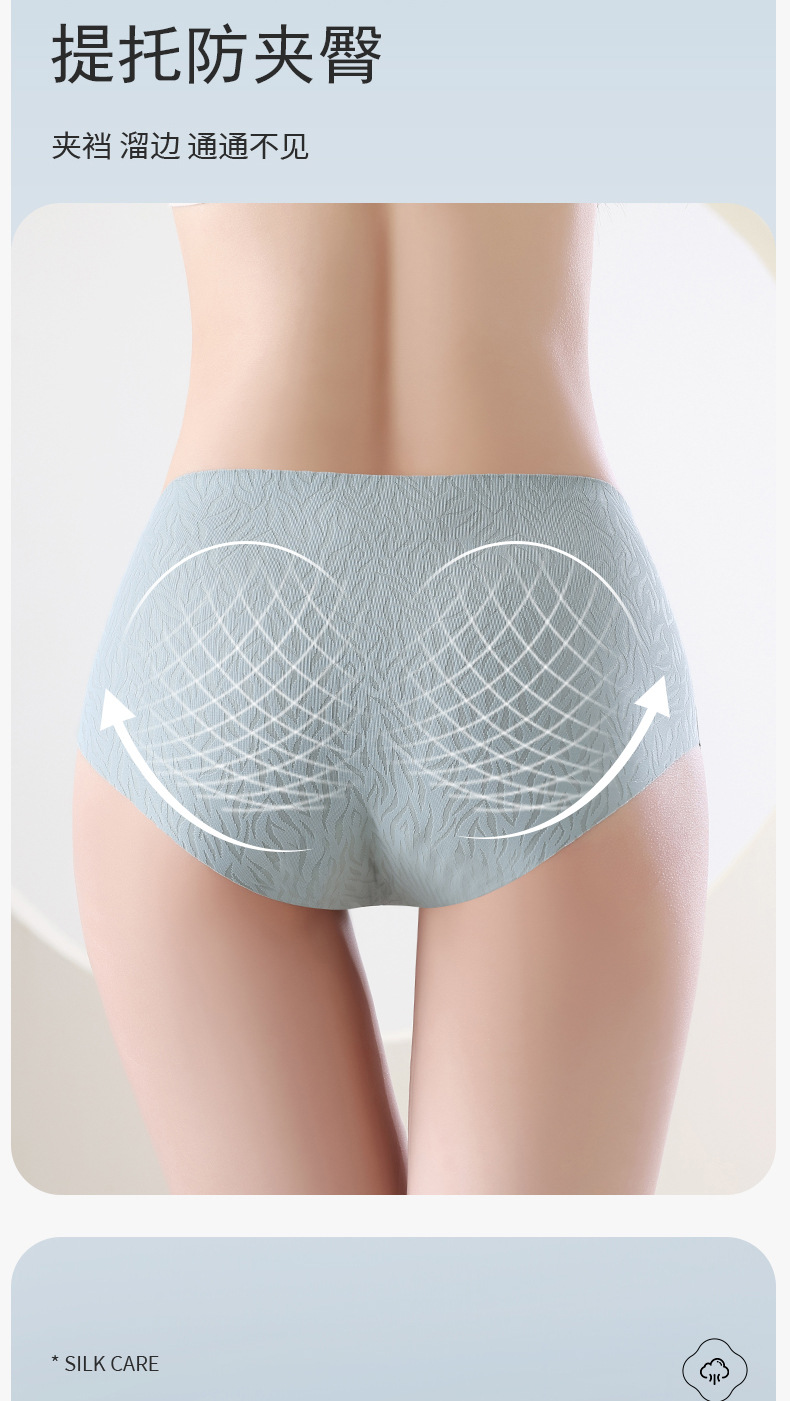 Ropa interior sin costuras de seda de hielo para mujer 2024 nuevo estilo de verano delgado para niñas, ropa interior antibacteriana y transpirable en la cintura media, refrescante