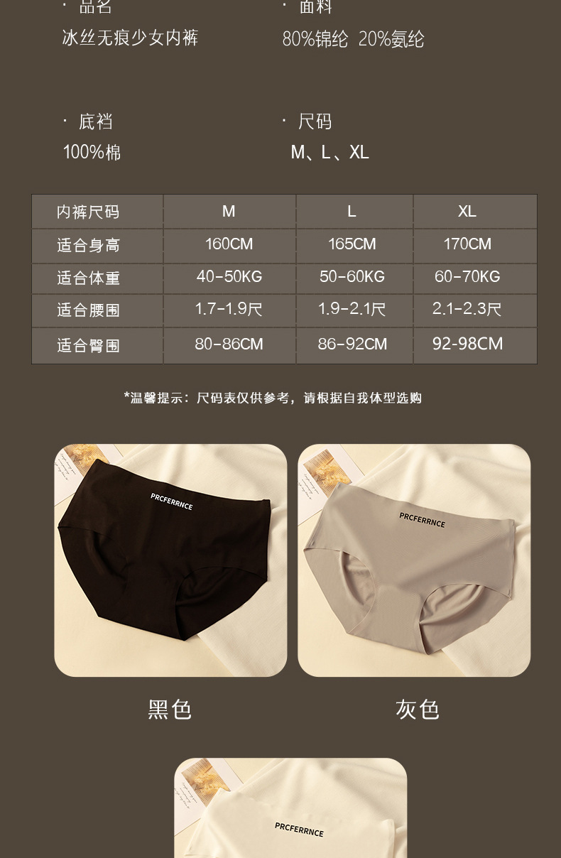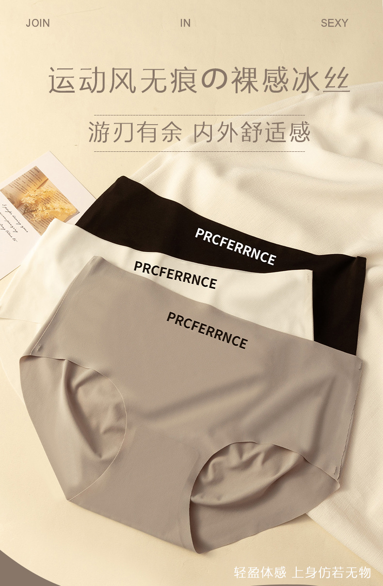 Ropa interior de seda de hielo sin costuras Mujer Cintura media algodón antibacteriano entrepierna algodón Nude Girl's estilo deportivo triángulo pantalones cortos cabeza