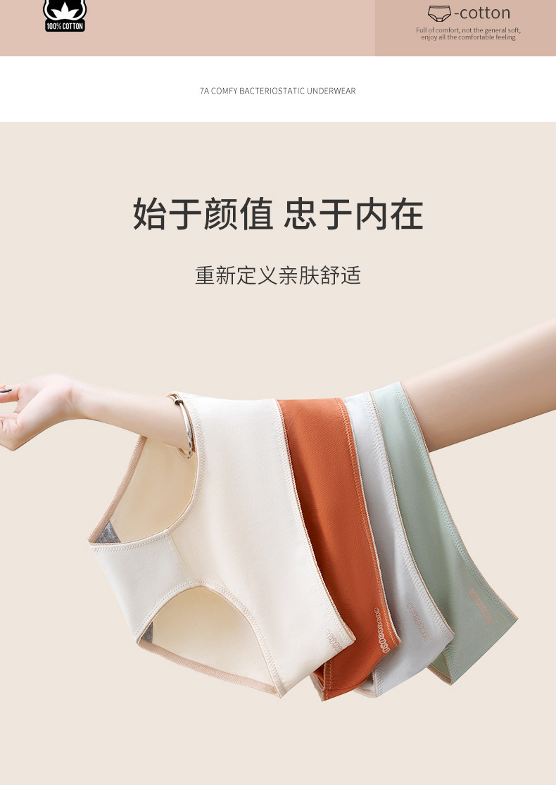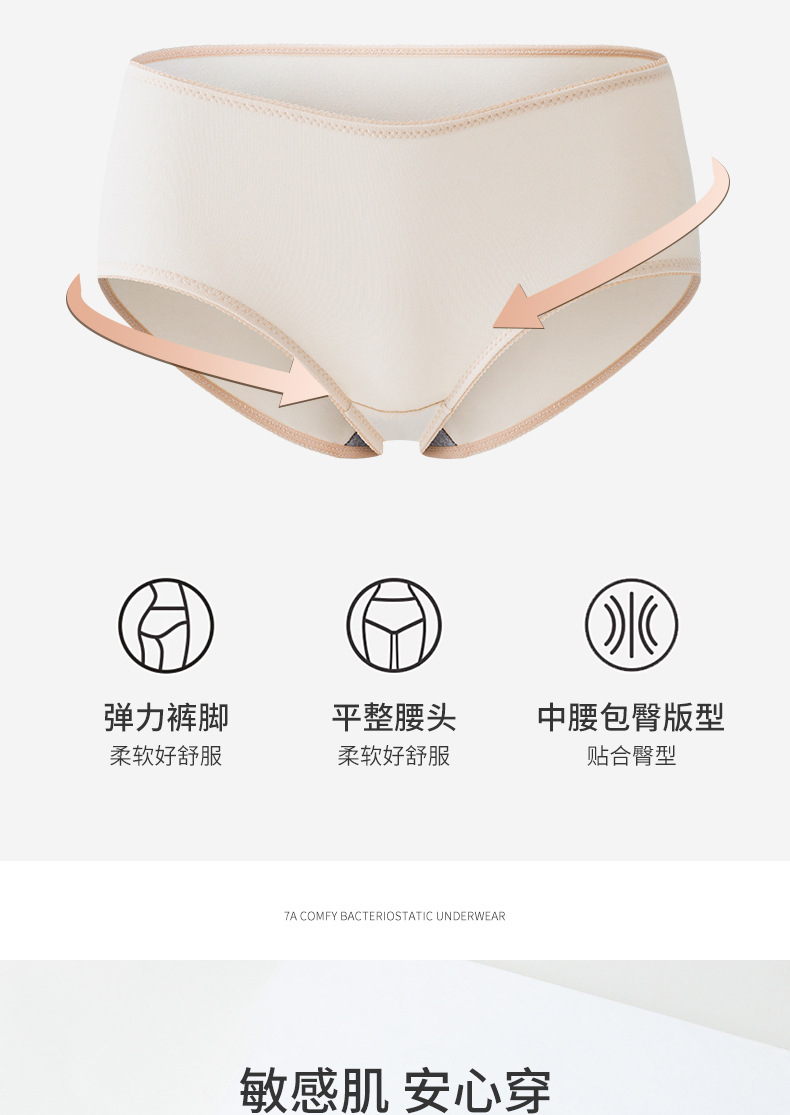 Actualizado 7A puro algodón antibacteriano entrepierna cómodo sin costuras suave vaina invierno nuevo estilo deportivo chica Mediados de cintura calzoncillos