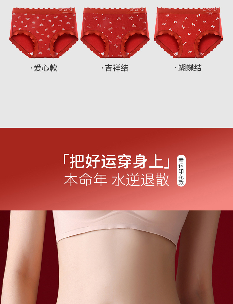 Año DE NACIMIENTO rojo boda Navidad regalo nupcial Dragón año Mediados de cintura cadera-envuelto chica mantenimiento seda antibacteriano entrepierna ropa interior