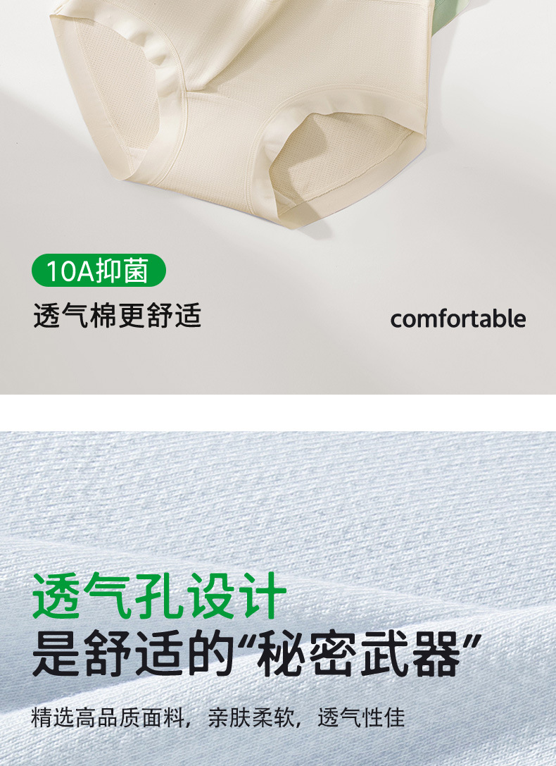 Entrepierna alargada 10A entrepierna antibacteriana entrepierna de algodón puro agujero de ventilación 100,000 agujeros transpirables algodón suave anti-clip cadera calzoncillos de mujer