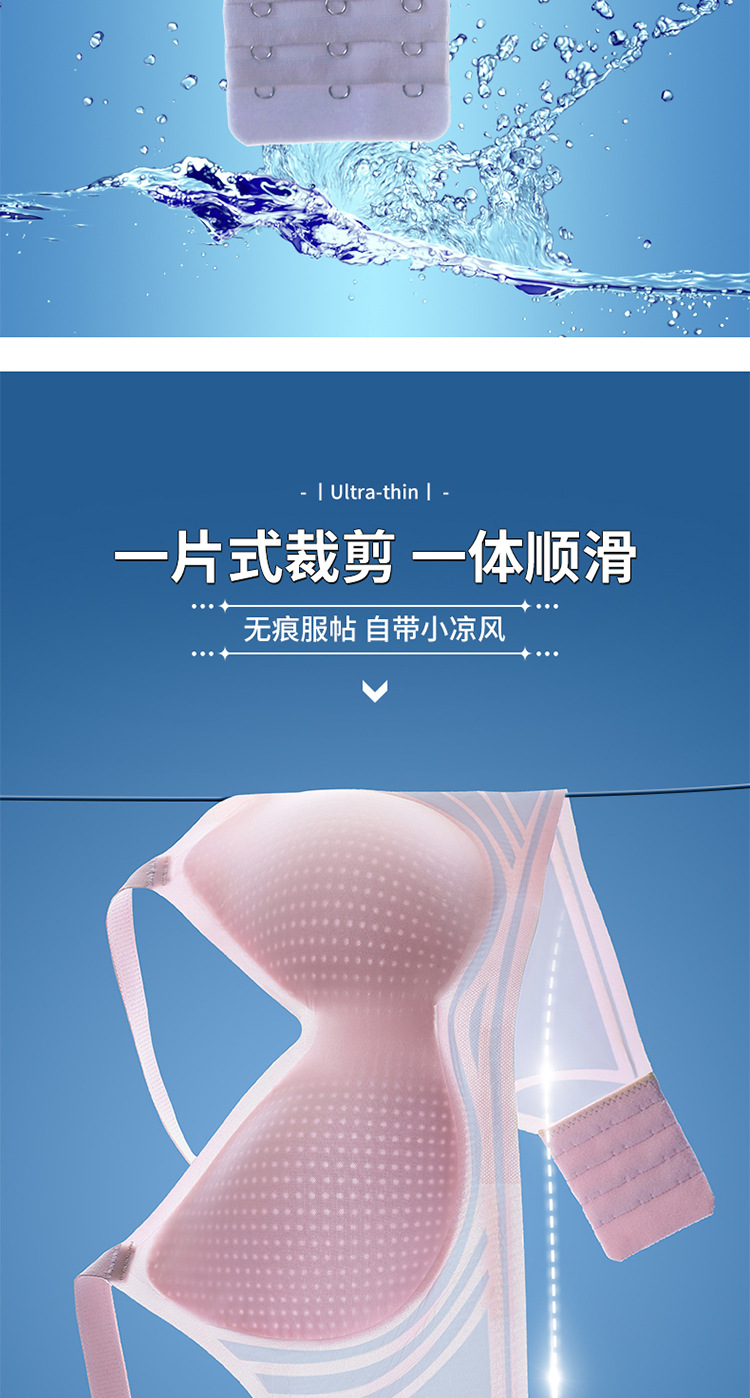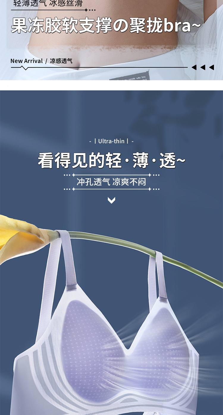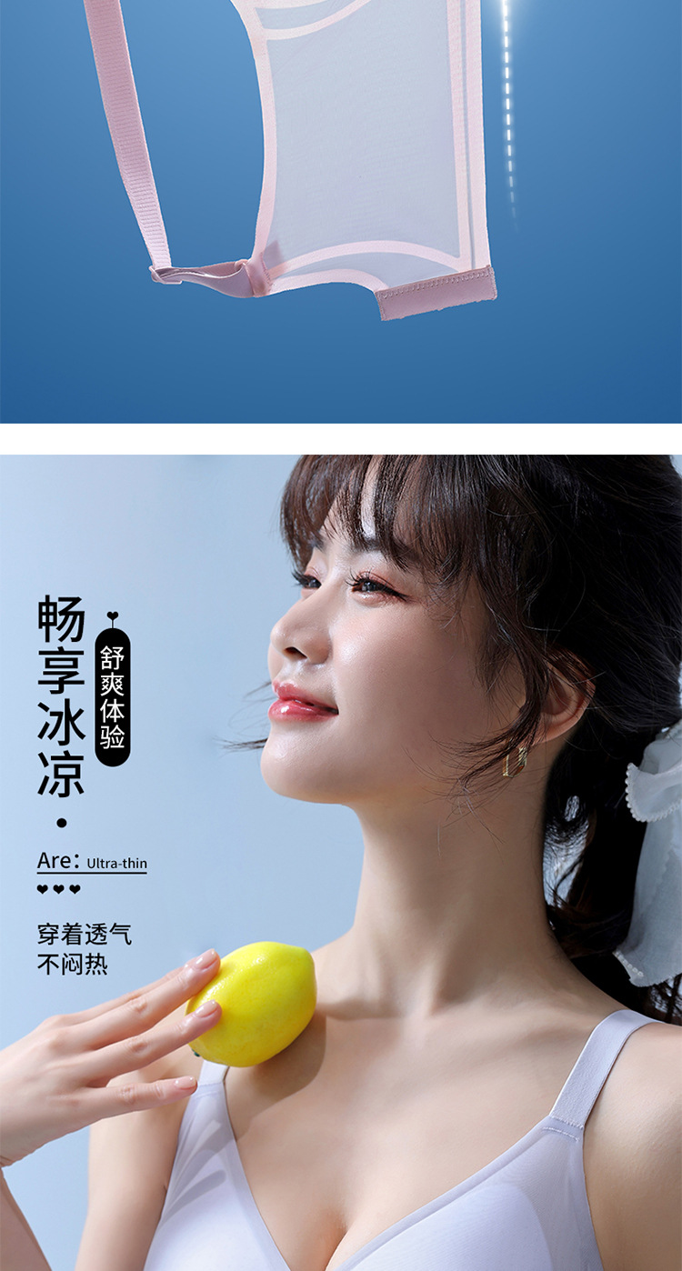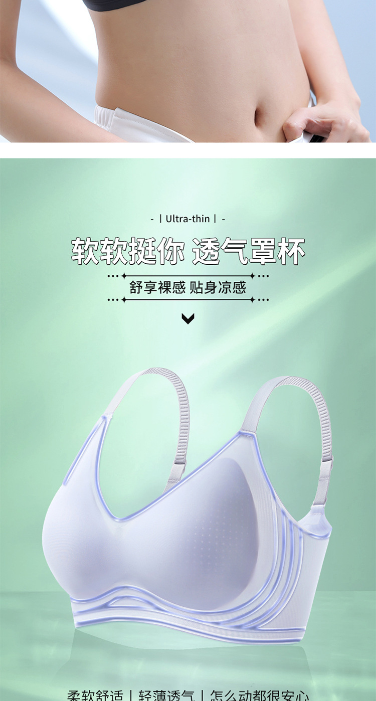 8053 Sujetador de copa fija ultrafino sin costuras con sensación fresca, soporte superior de sensación cero en verano, pechos grandes, ropa interior de soporte pequeño, una pieza