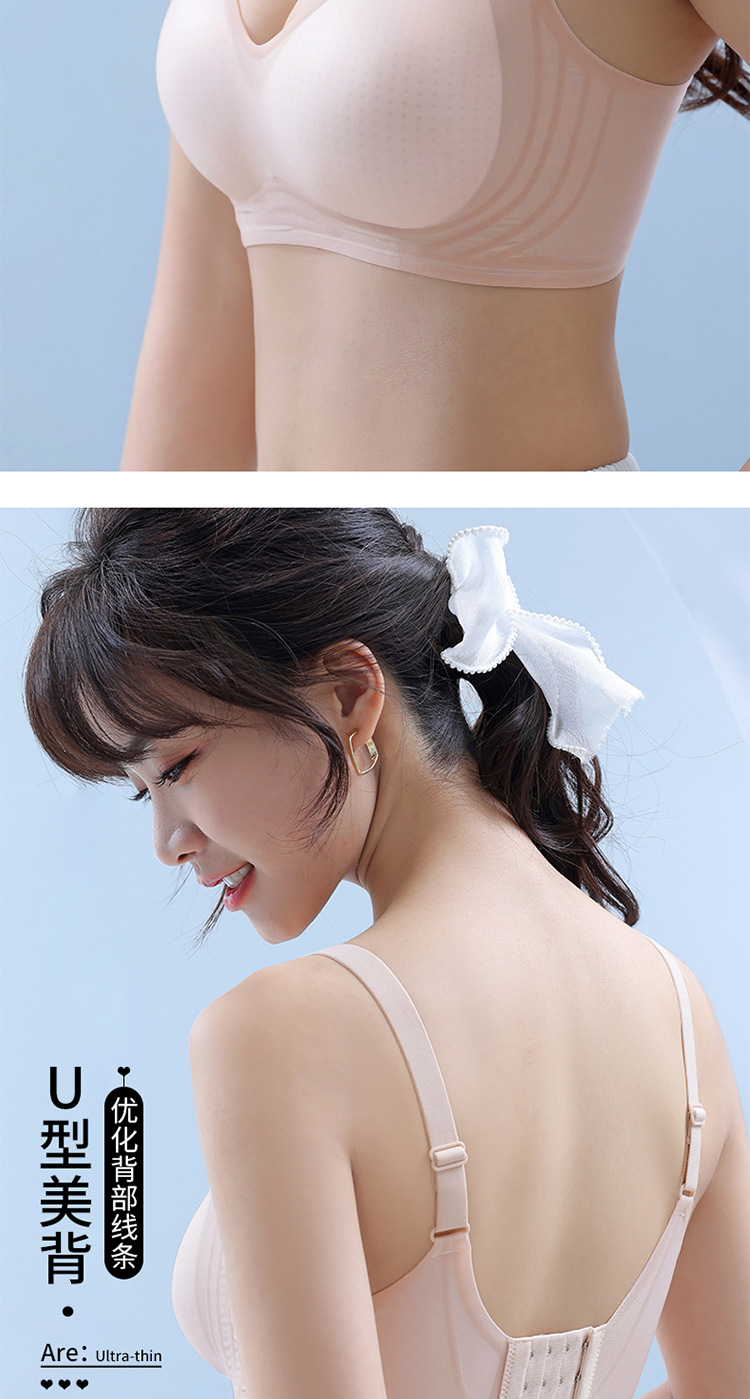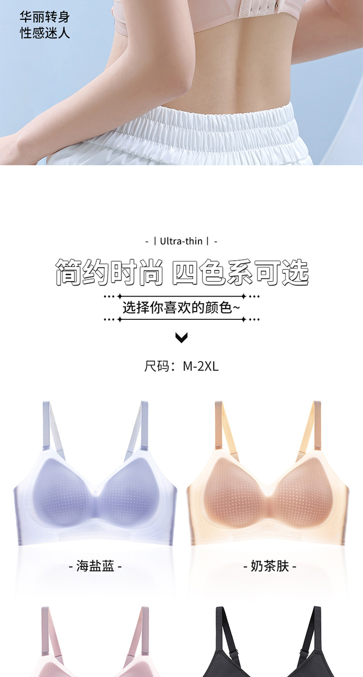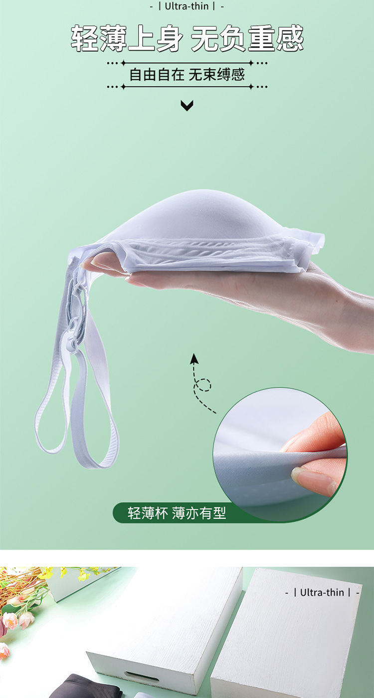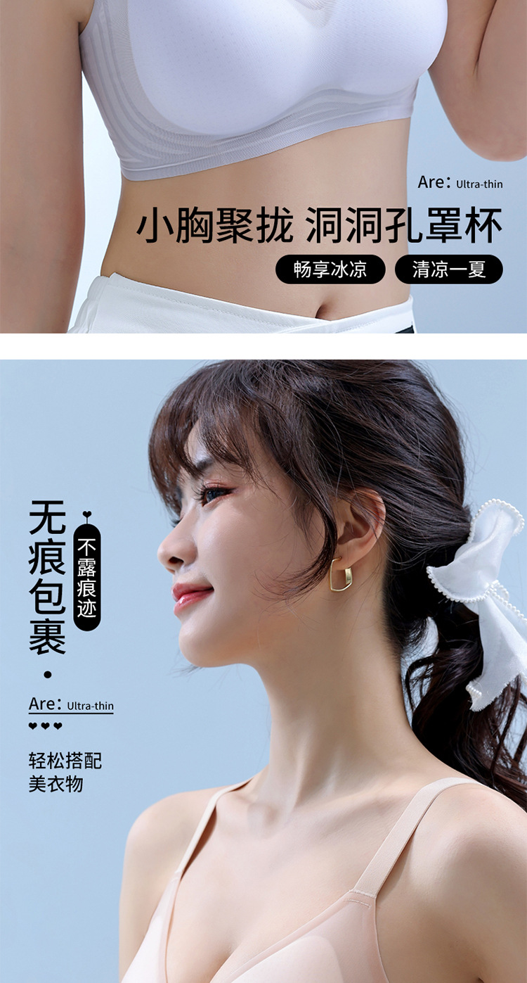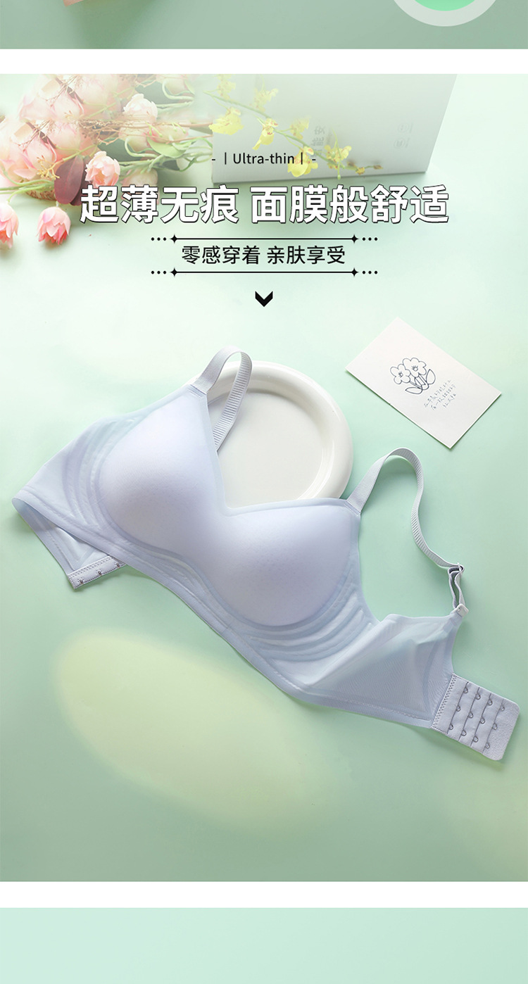 8053 Sujetador de copa fija ultrafino sin costuras con sensación fresca, soporte superior de sensación cero en verano, pechos grandes, ropa interior de soporte pequeño, una pieza