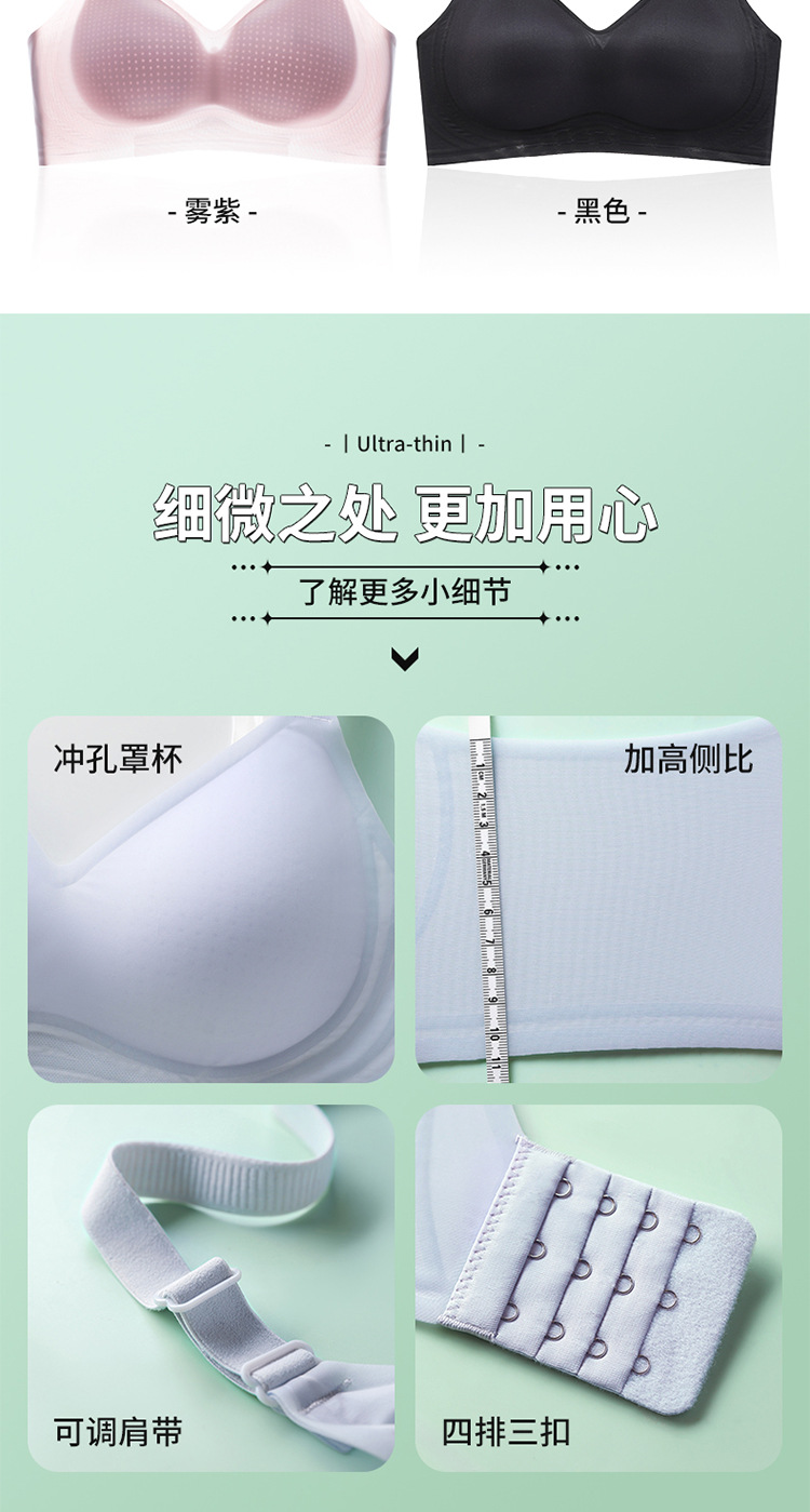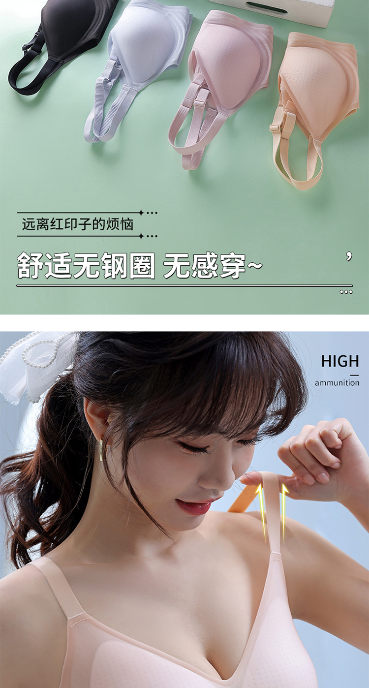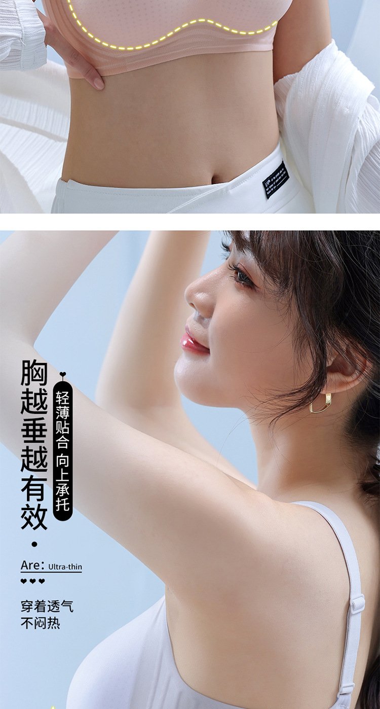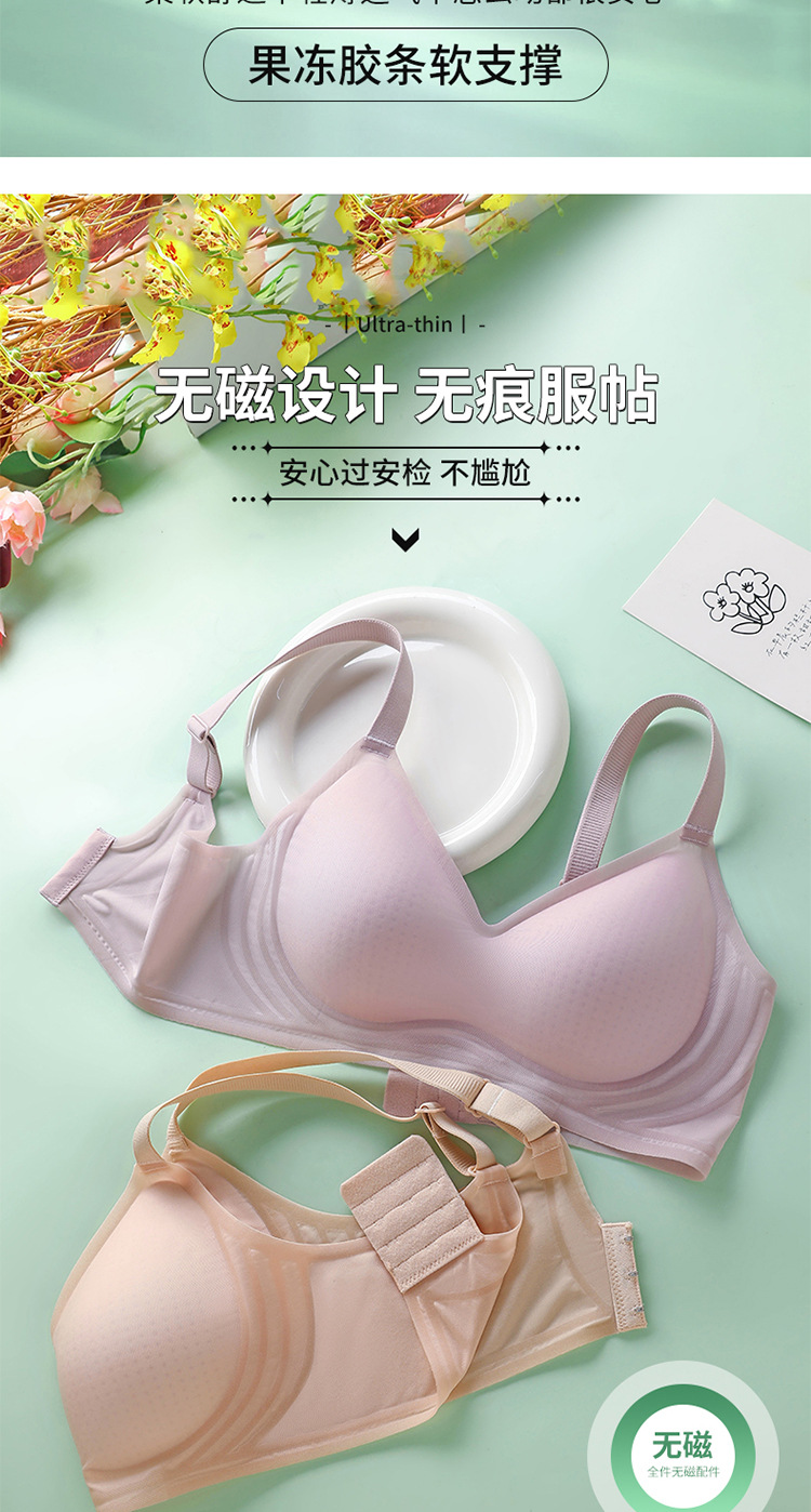 8053 Sujetador de copa fija ultrafino sin costuras con sensación fresca, soporte superior de sensación cero en verano, pechos grandes, ropa interior de soporte pequeño, una pieza