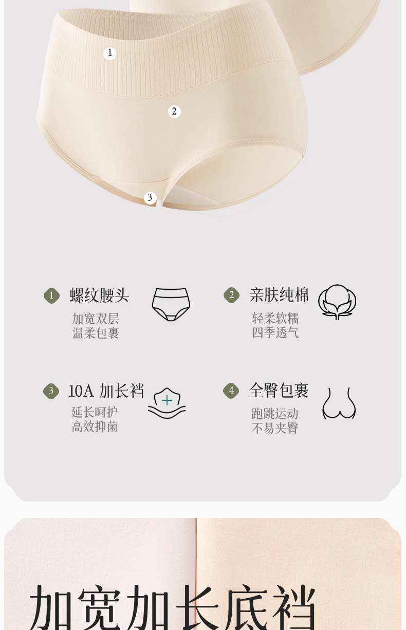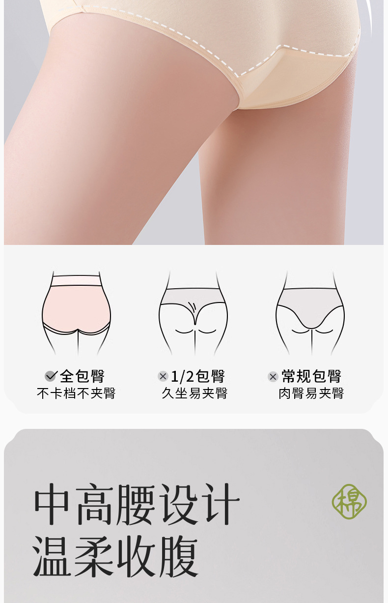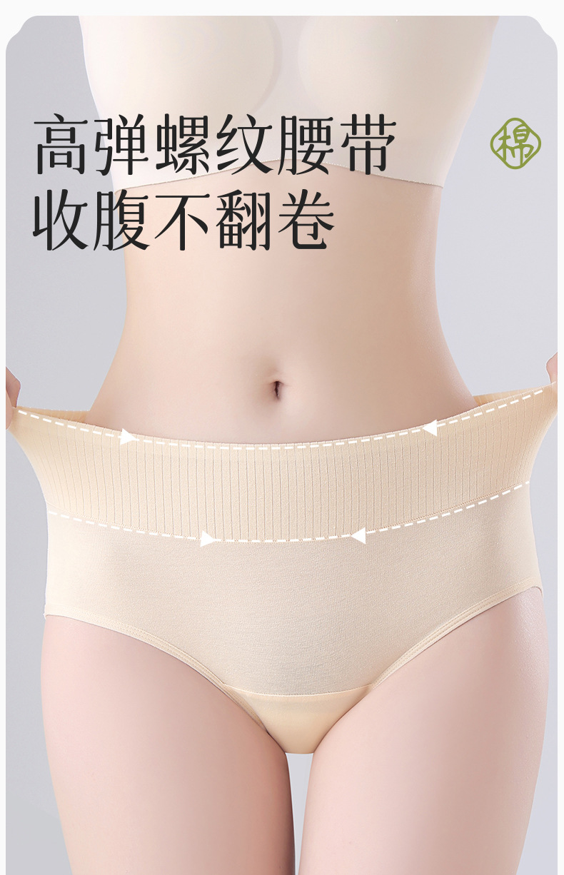 Ropa interior de cintura alta de algodón peinado entrepierna antibacteriana, ropa interior de levantamiento de cadera y abdomen, calzoncillos cómodos, transpirables y agradables para la piel