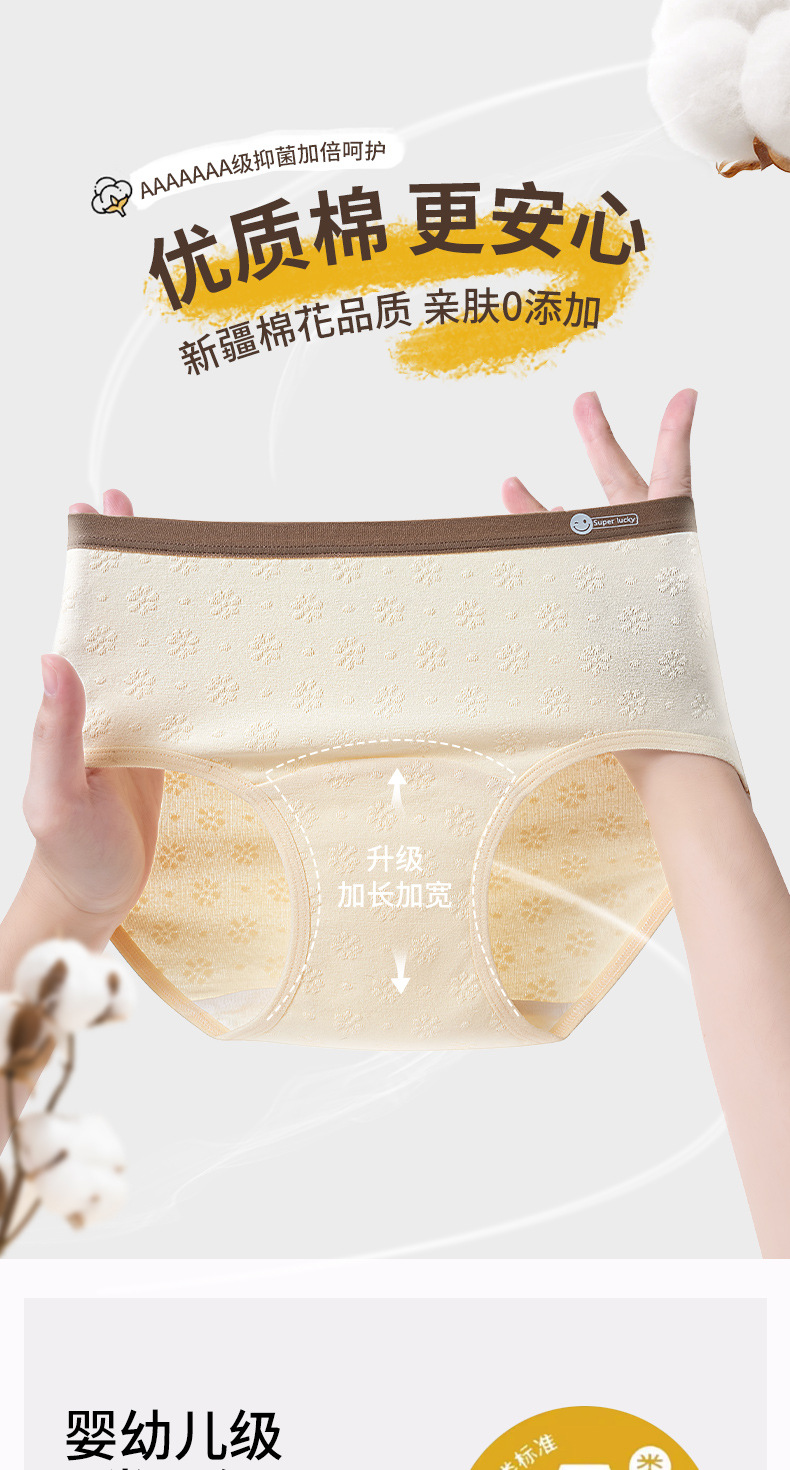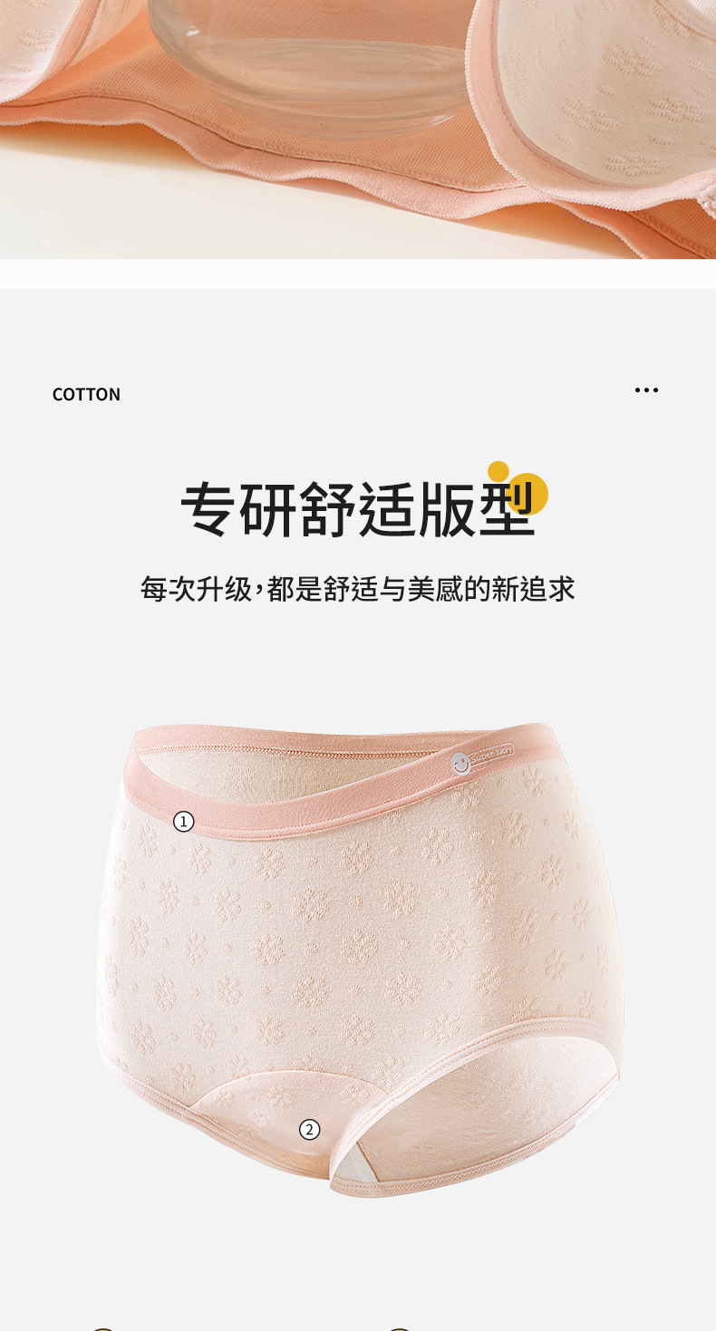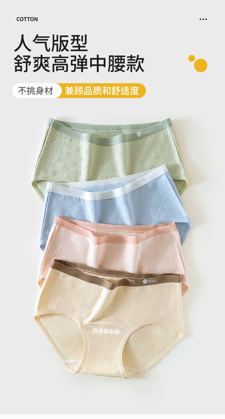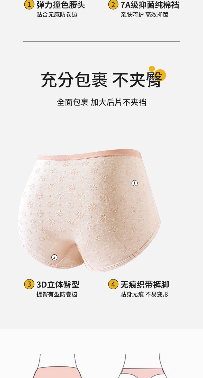 2024 nuevo estilo de algodón puro 7A, entrepierna de algodón inhibitoria y alargada, jacquard de cintura media de grado médico, ropa interior de mujer transpirable y sin costuras