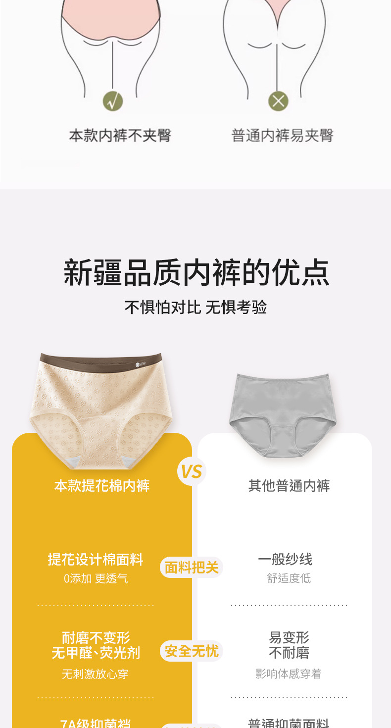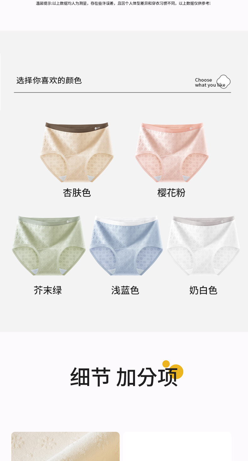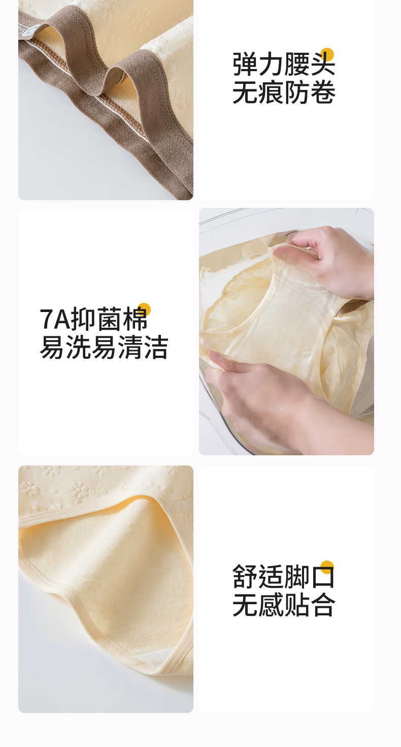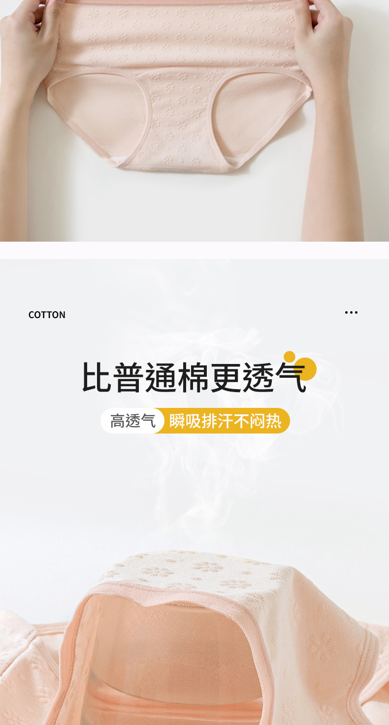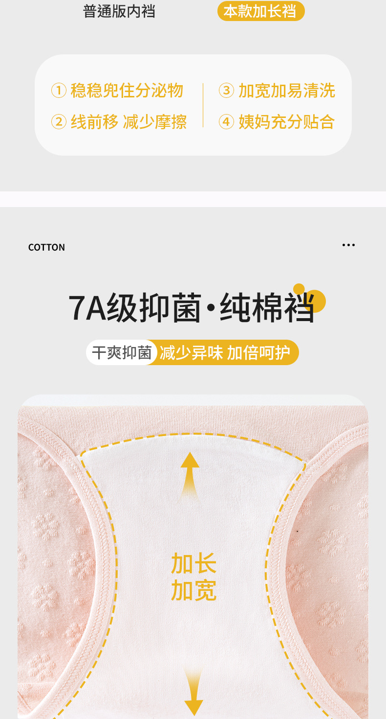 2024 nuevo estilo de algodón puro 7A, entrepierna de algodón inhibitoria y alargada, jacquard de cintura media de grado médico, ropa interior de mujer transpirable y sin costuras