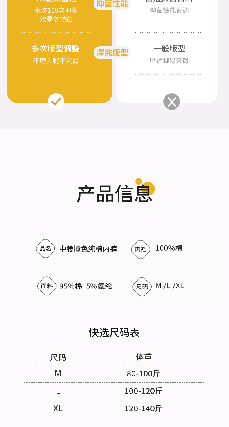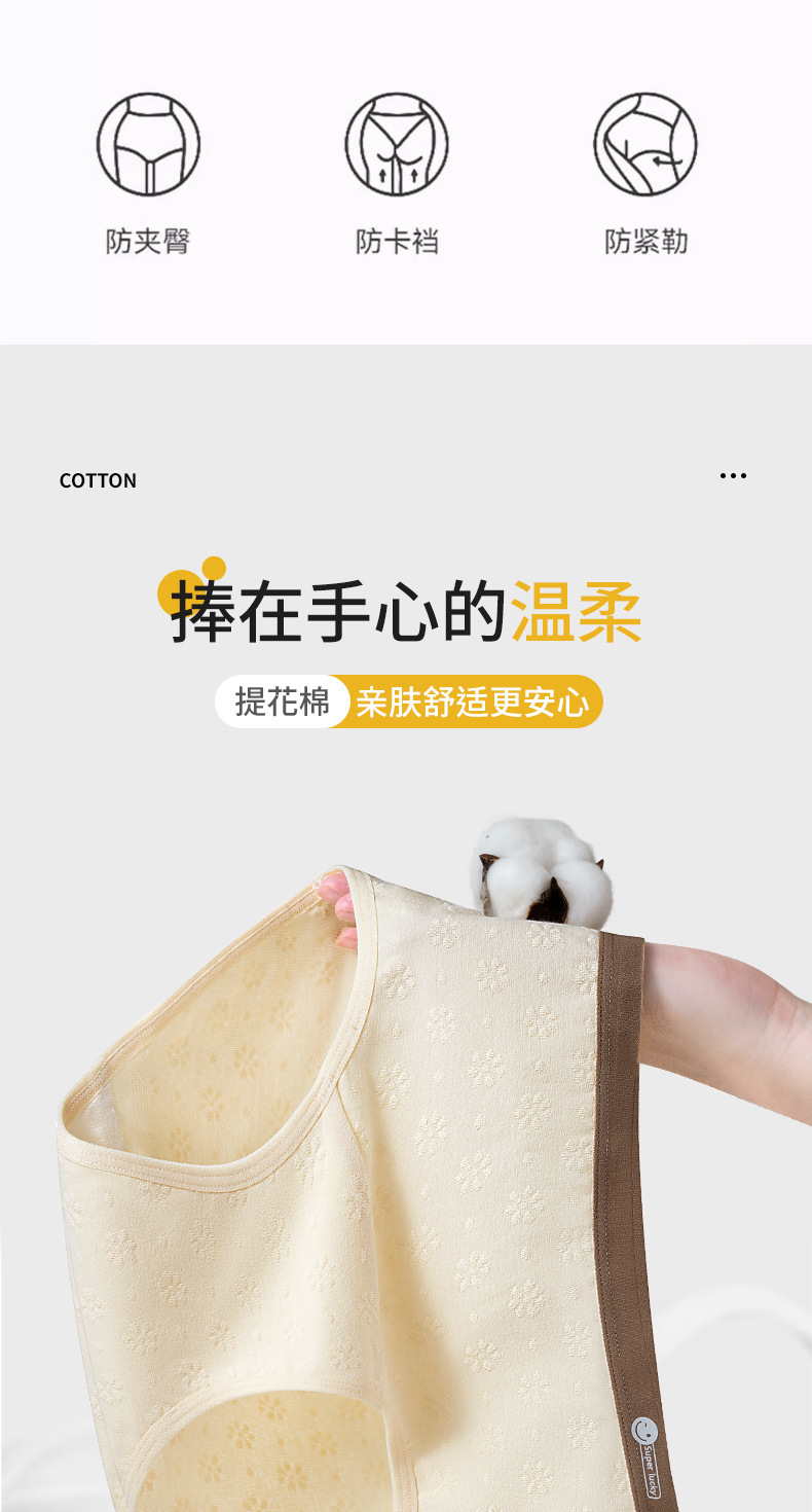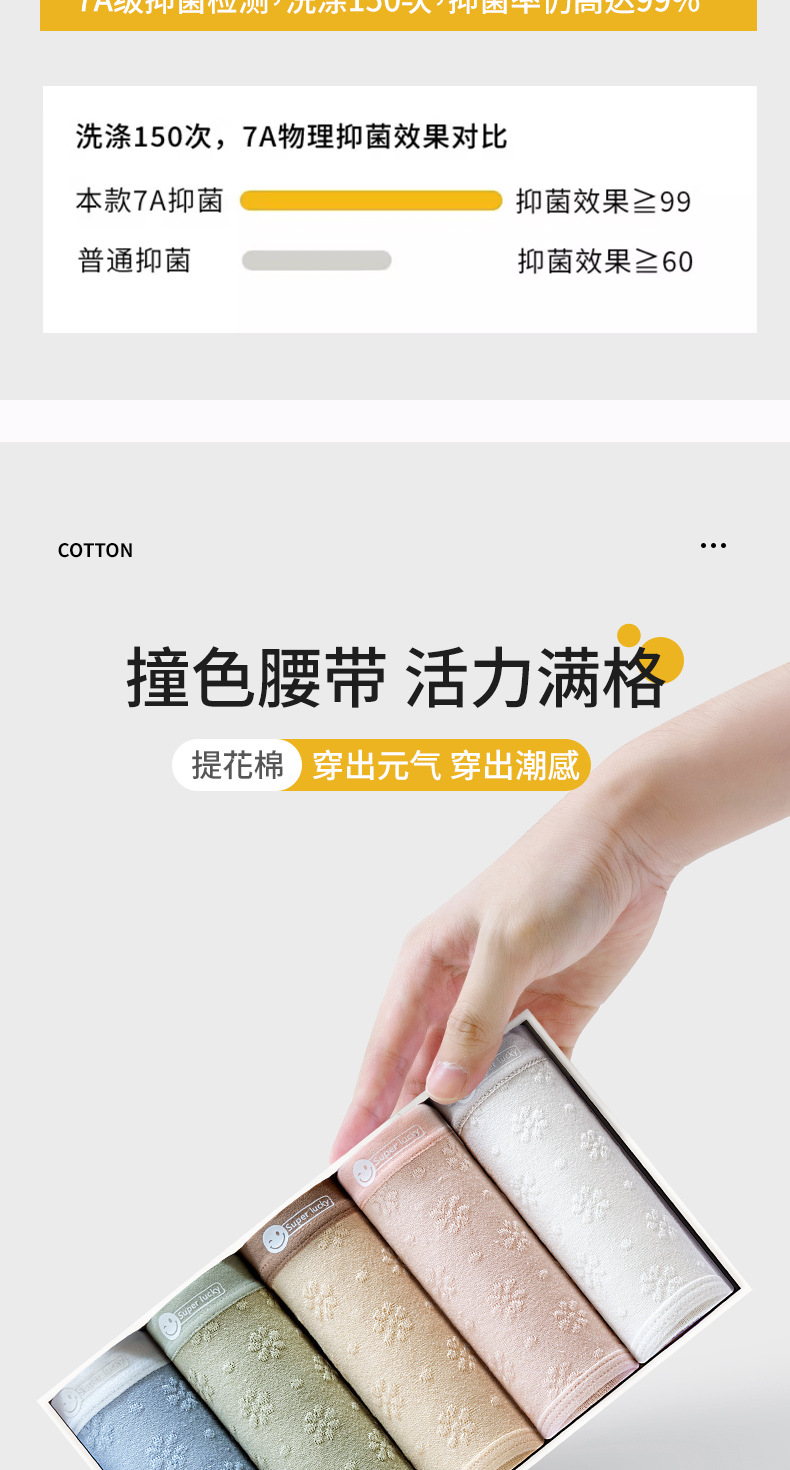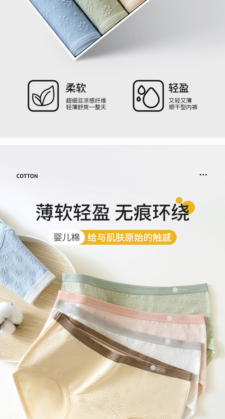 2024 nuevo estilo de algodón puro 7A, entrepierna de algodón inhibitoria y alargada, jacquard de cintura media de grado médico, ropa interior de mujer transpirable y sin costuras