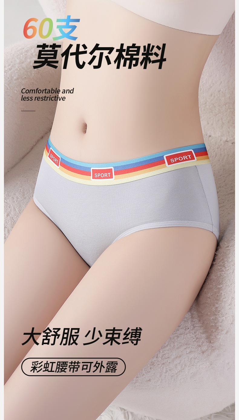 60 bragas modales para mujer, calzoncillos antibacterianos para niñas de cintura media, nuevo estilo deportivo, refrescante y sin costuras