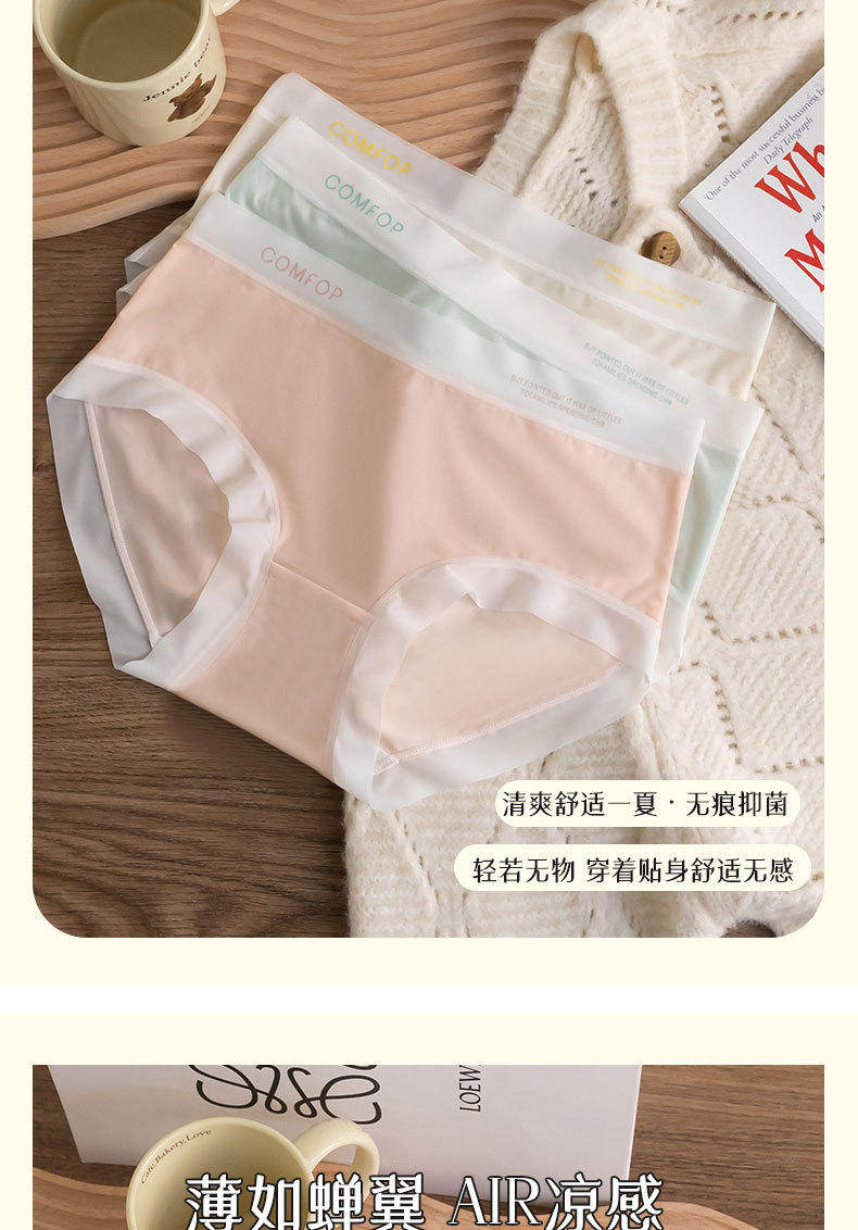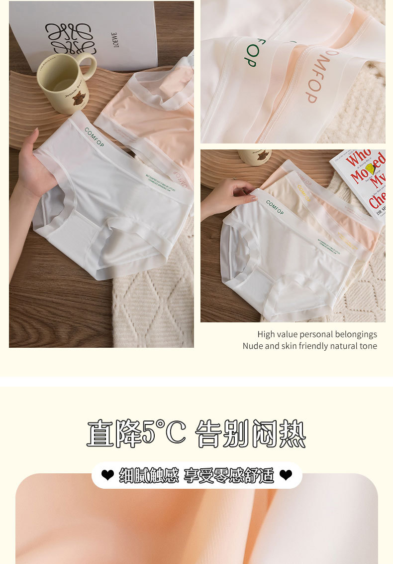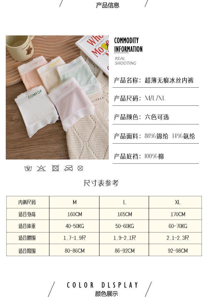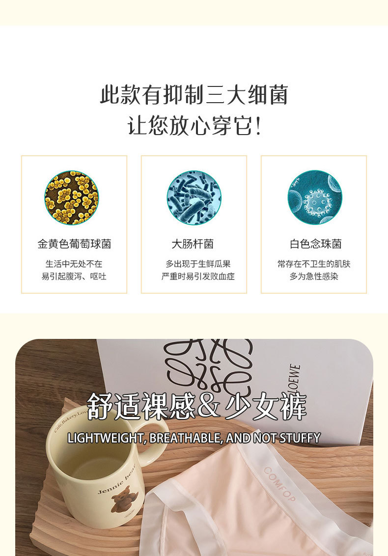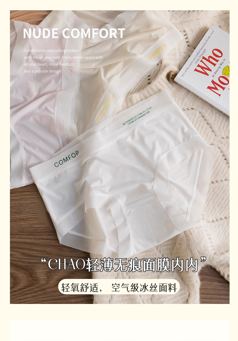 Ropa interior de seda de hielo sin costuras cómodo Algodón puro entrepierna antibacteriana transpirable verano de las niñas delgada ropa interior de máscara sin costuras de secado rápido