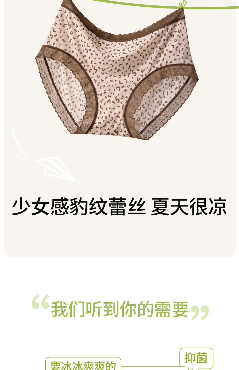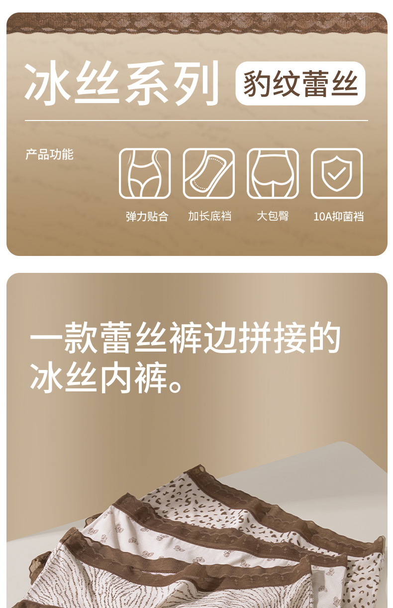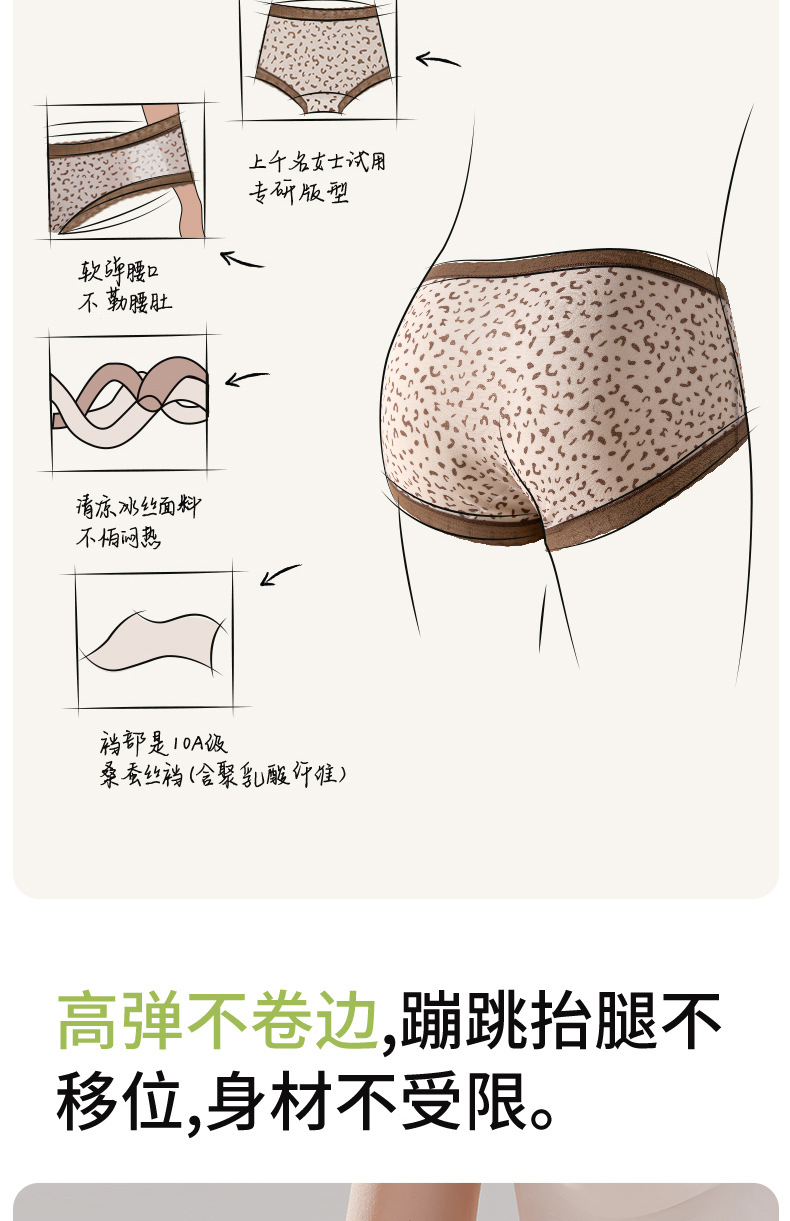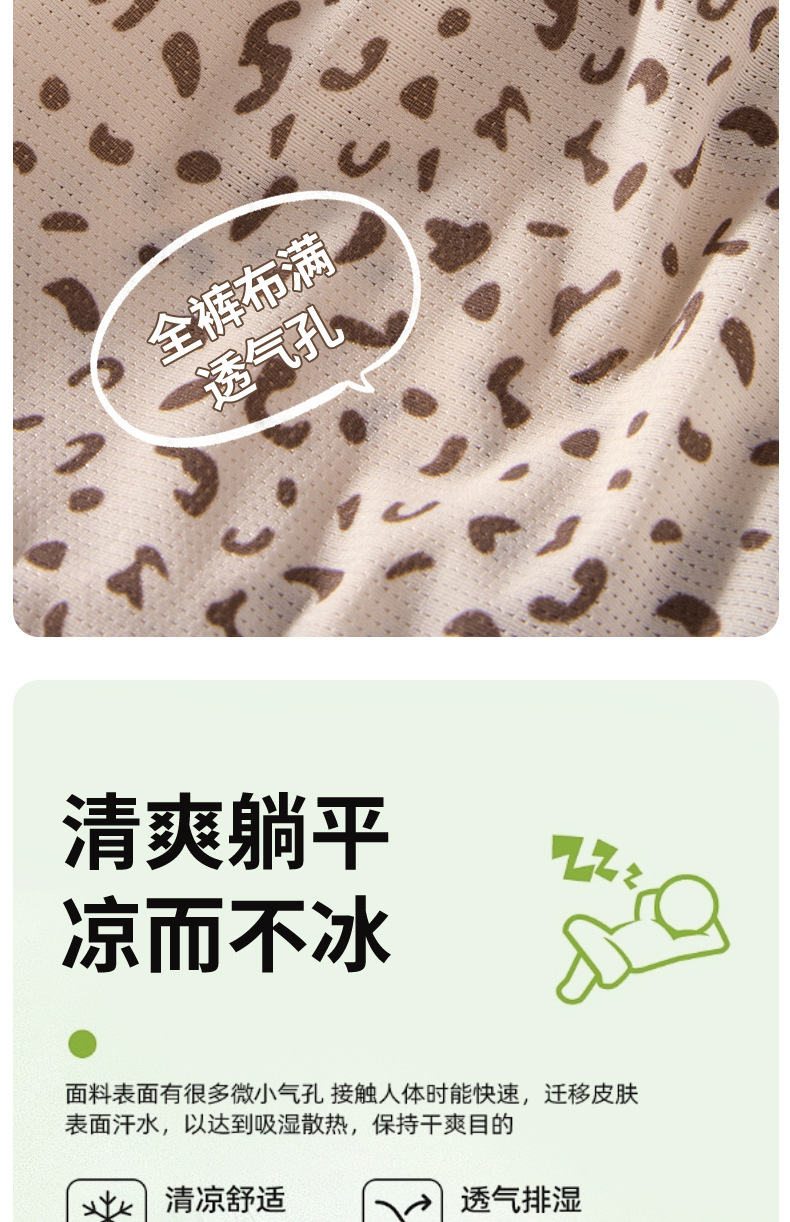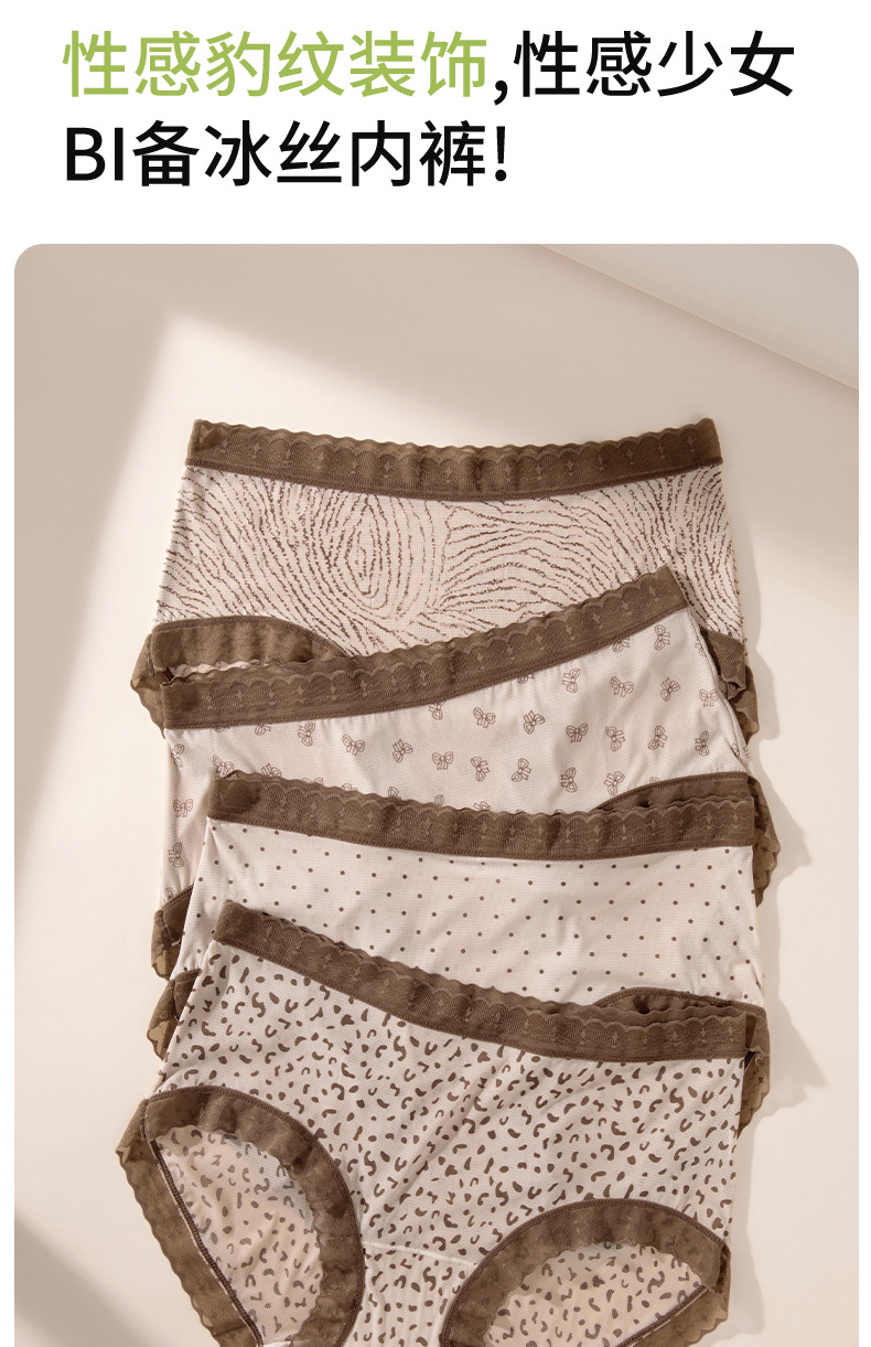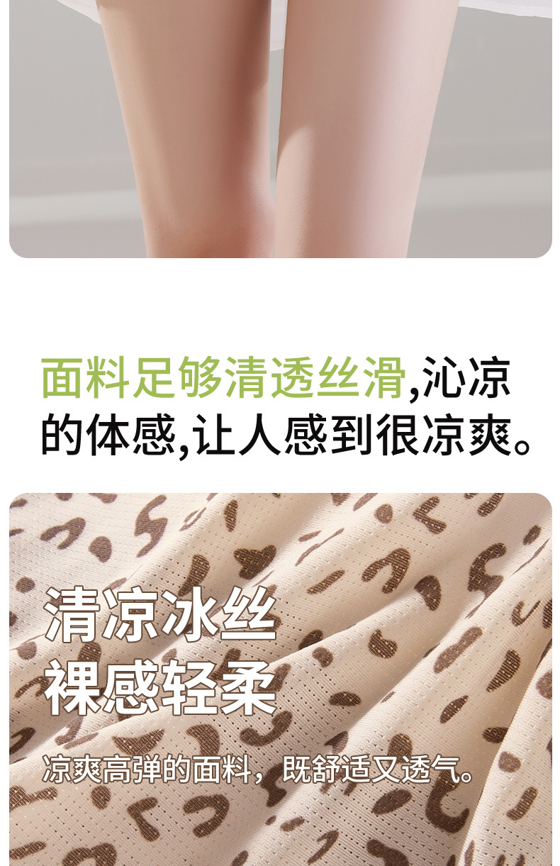 Hilo de seda de hielo, malla transpirable, estampado de leopardo, niña de verano, entrepierna de seda, entrepierna antibacteriana, entrepierna larga, calzoncillos de seda de hielo para mujer