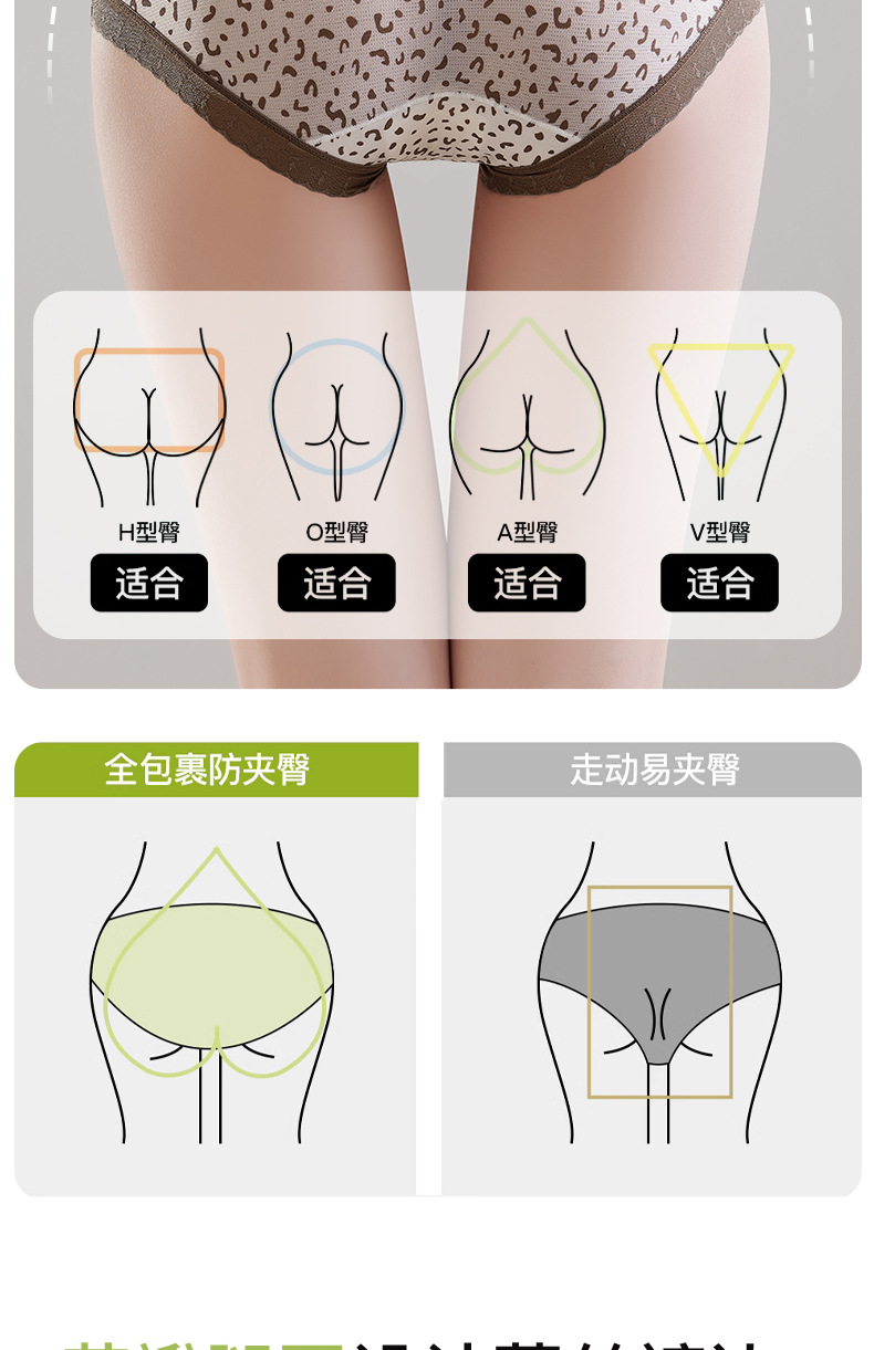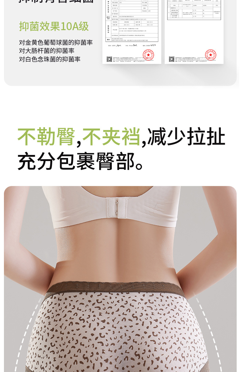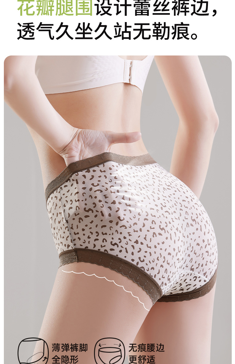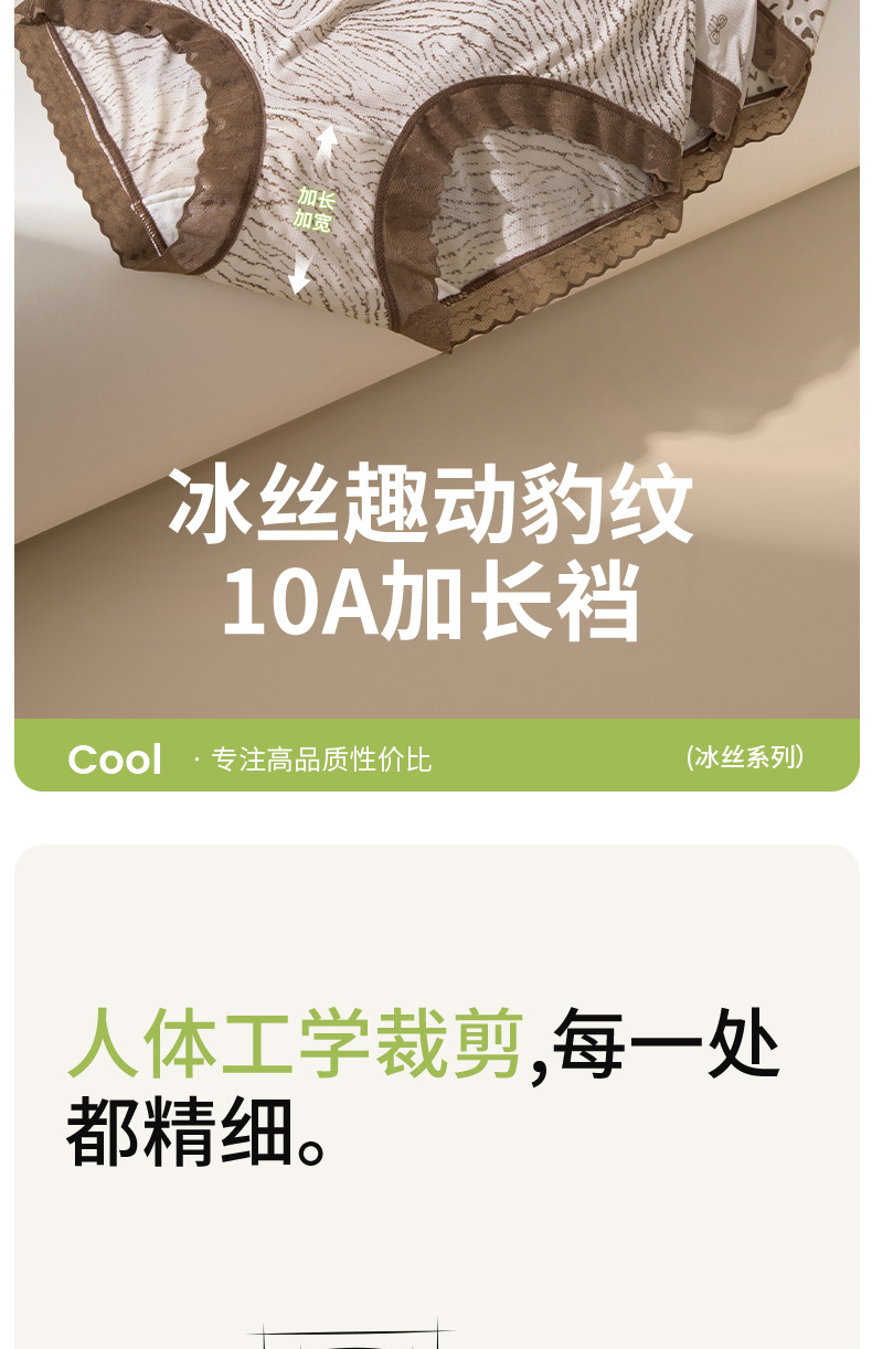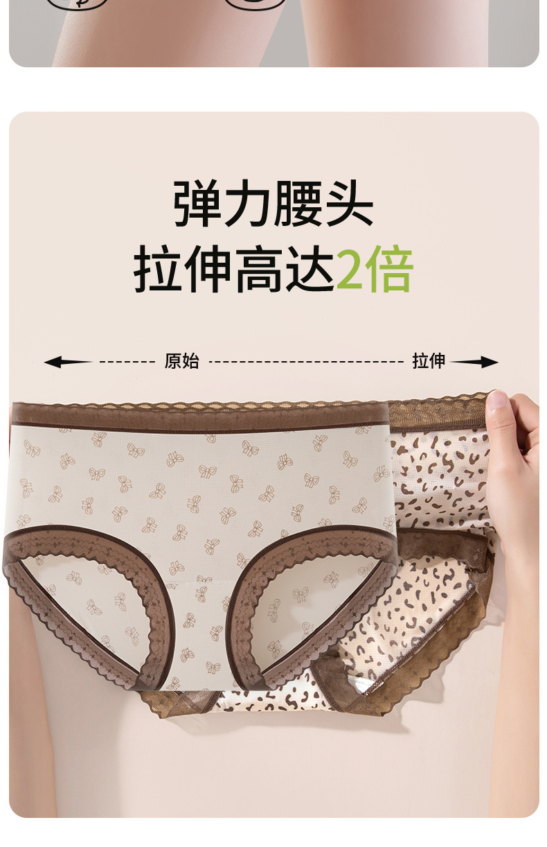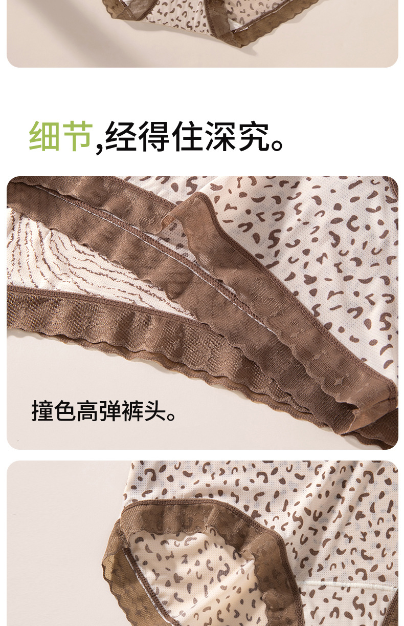 Hilo de seda de hielo, malla transpirable, estampado de leopardo, niña de verano, entrepierna de seda, entrepierna antibacteriana, entrepierna larga, calzoncillos de seda de hielo para mujer