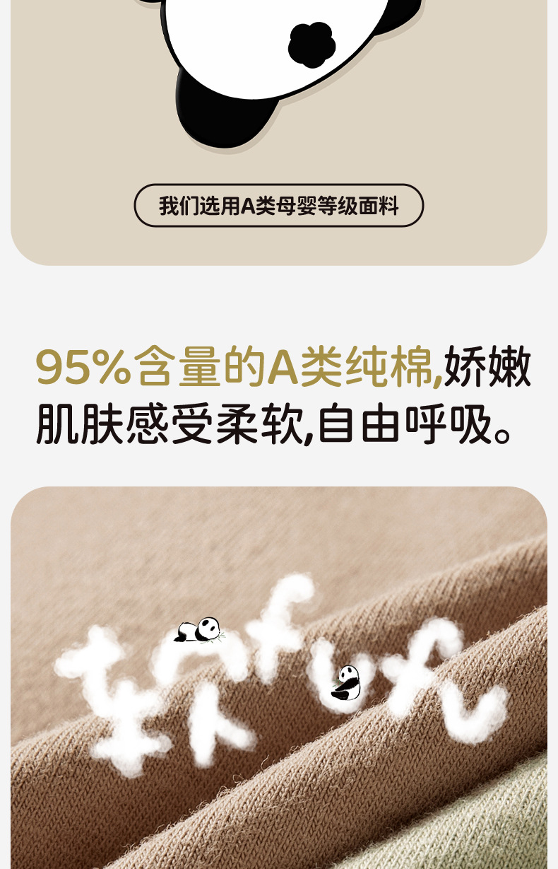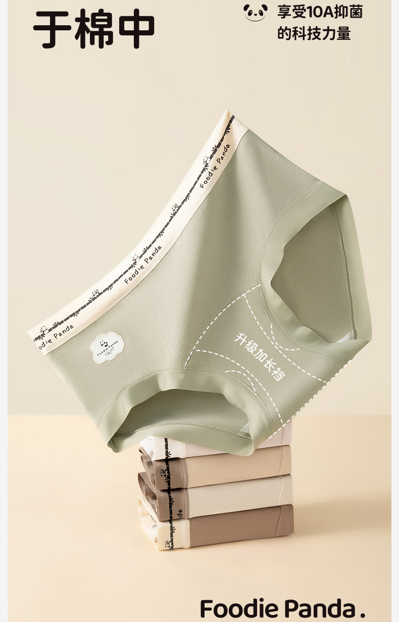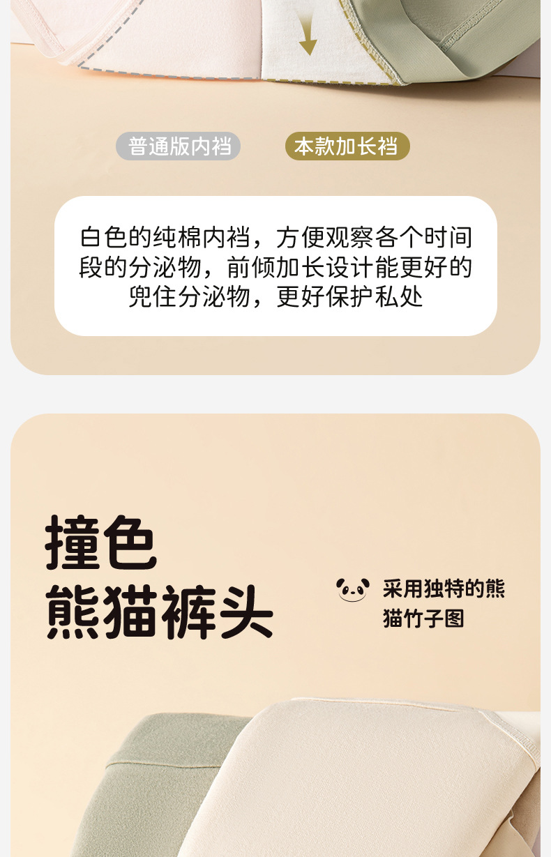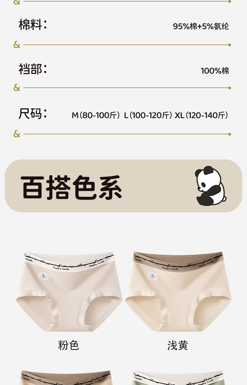 Bragas de algodón panda de color en contraste, entrepierna antibacteriana de algodón para bebés Clase A, entrepierna larga, entrepierna de algodón, cintura media, calzoncillos sin costuras para mujer
