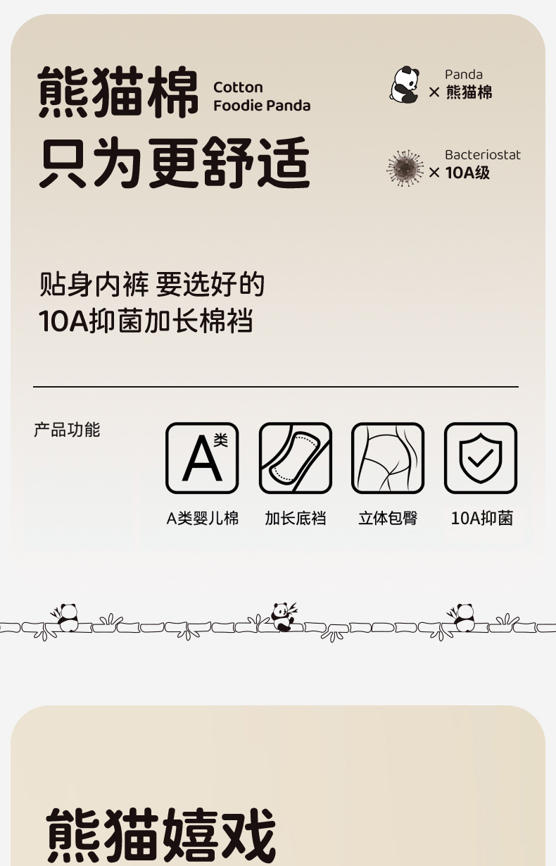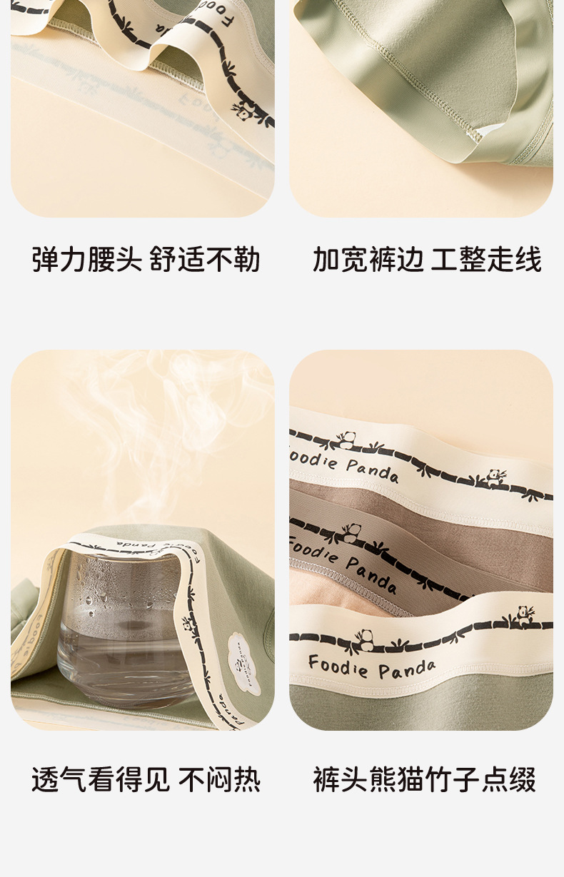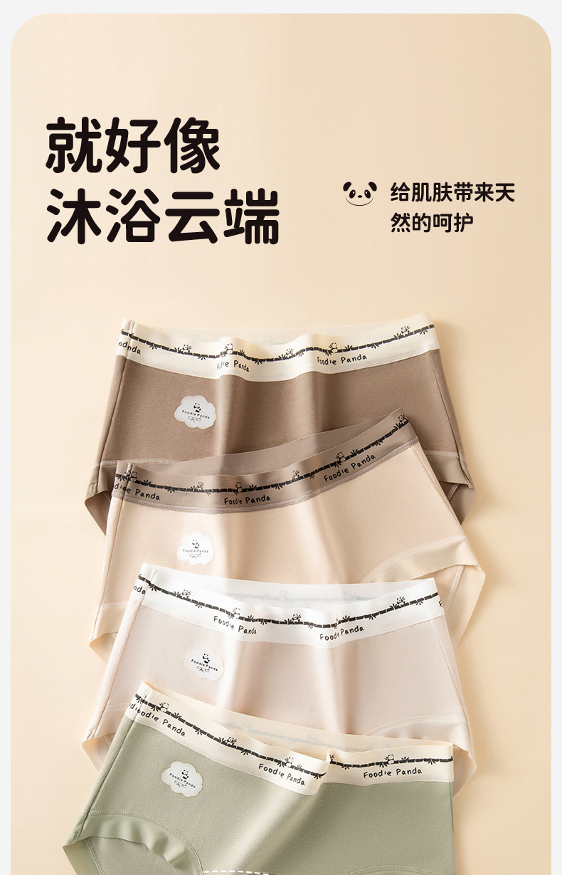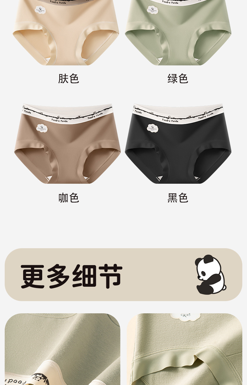 Bragas de algodón panda de color en contraste, entrepierna antibacteriana de algodón para bebés Clase A, entrepierna larga, entrepierna de algodón, cintura media, calzoncillos sin costuras para mujer