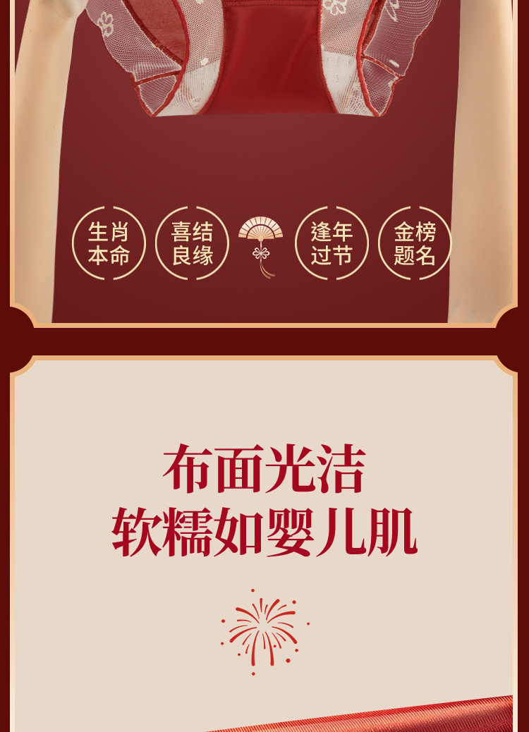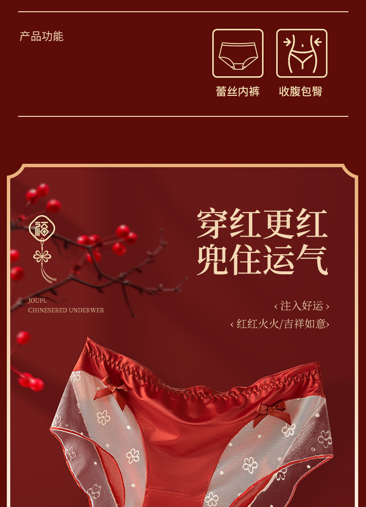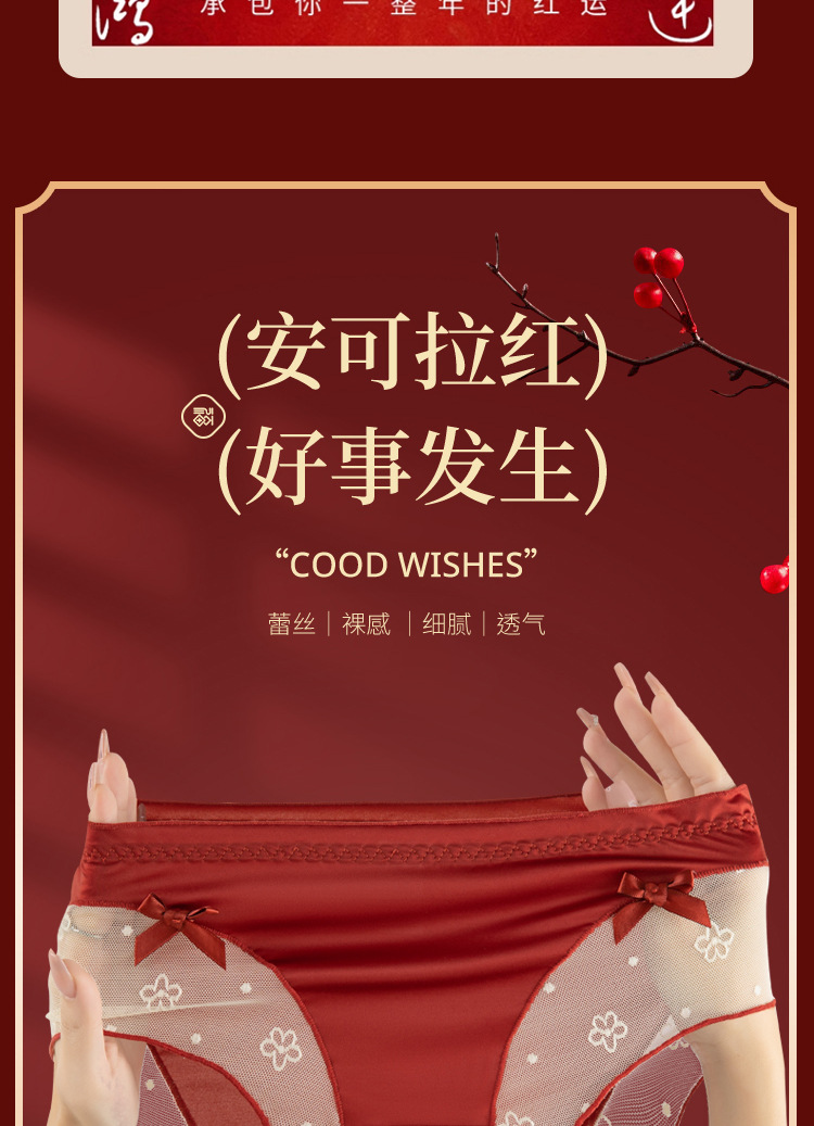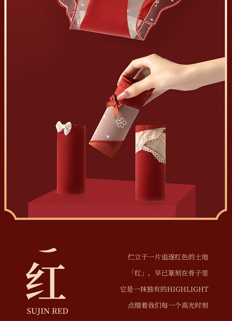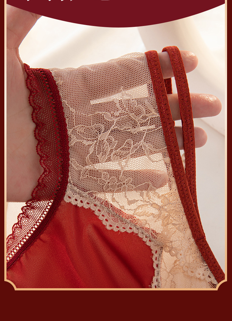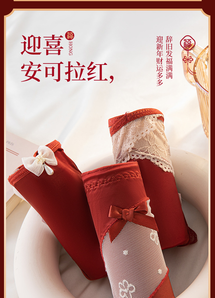 Encaje francés puro deseo suave lazo año natal agradable para la piel transpirable entrepierna interior elástico alto sexy cintura media ropa interior para mujer