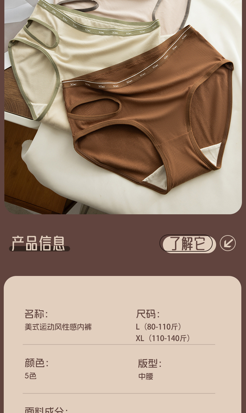 Ropa interior sin costuras, antibacteriano femenino, doble entrepierna, nueva cintura media, agradable para la piel, transpirable, estilo deportivo sexy americano, ropa interior femenina