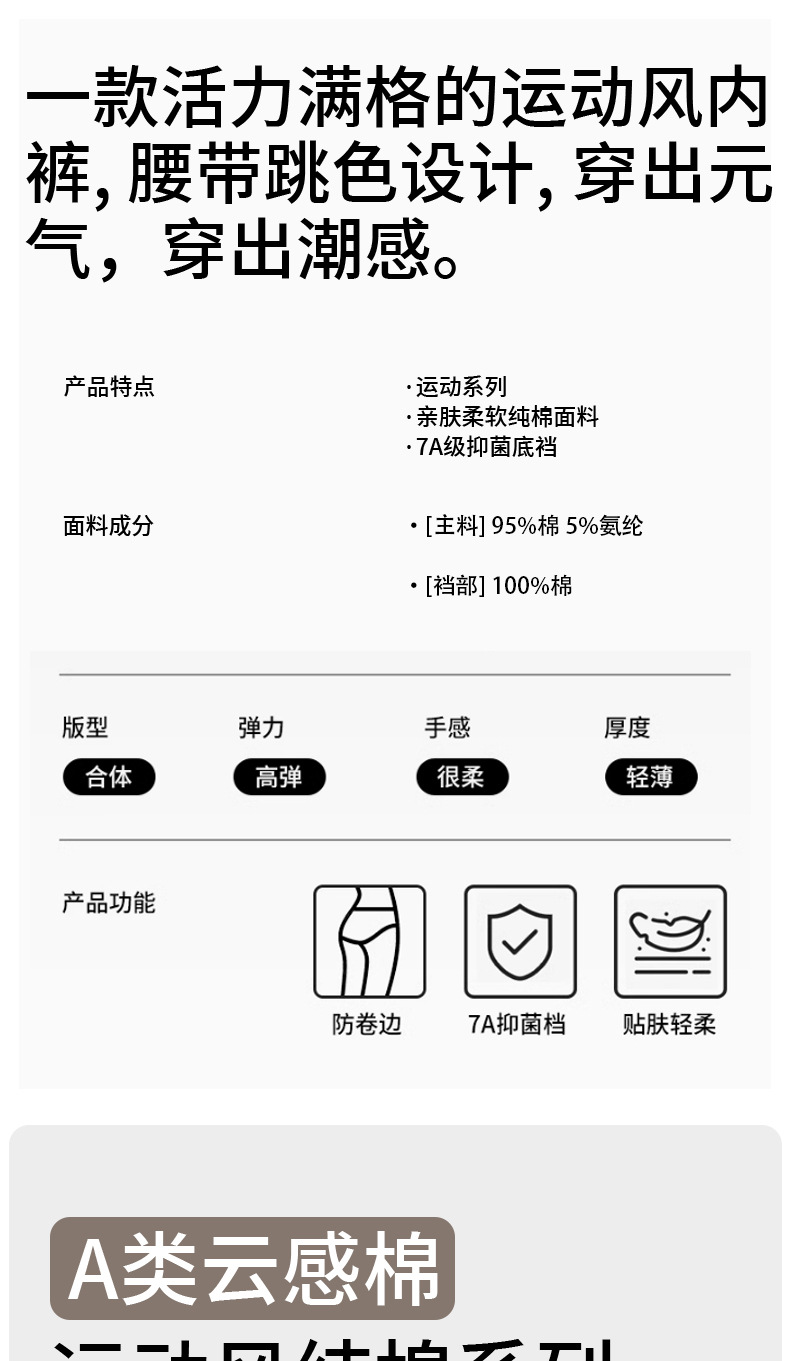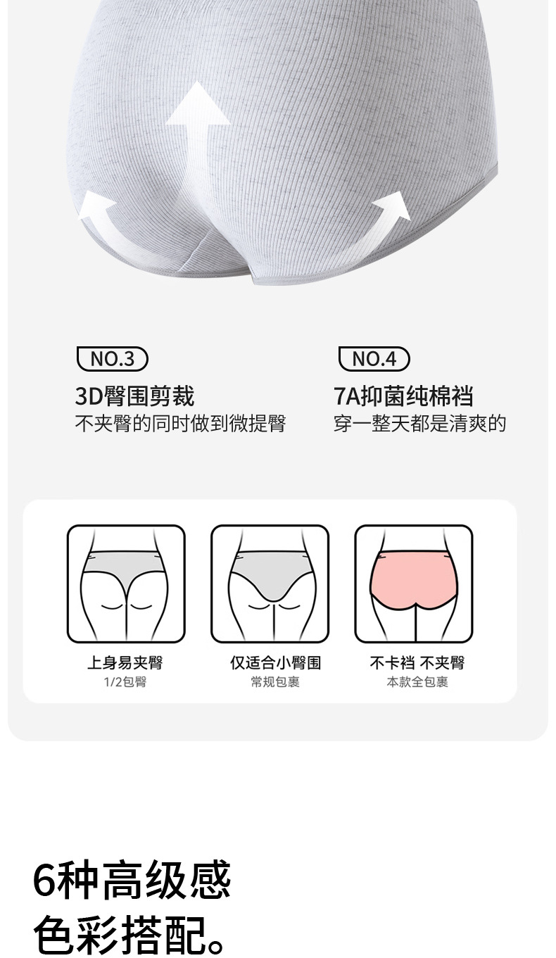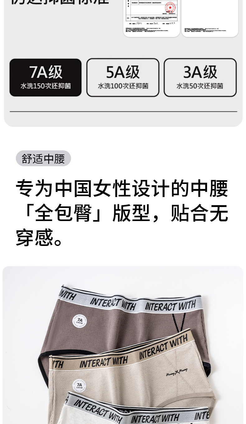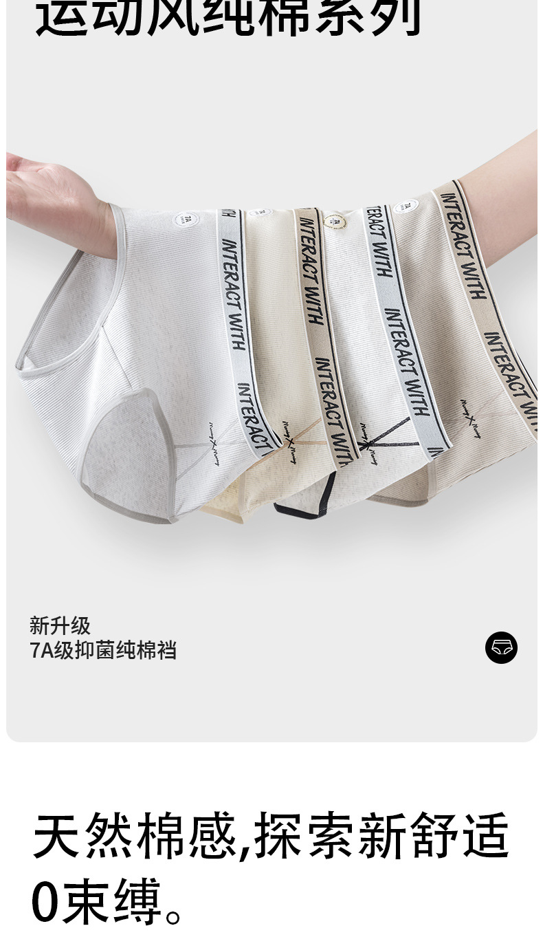 Pantalones completos 7A ropa interior de mujer de algodón antibacteriano color de contraste inglés cintura cómoda y transpirable cintura media cadera calzoncillos de niña