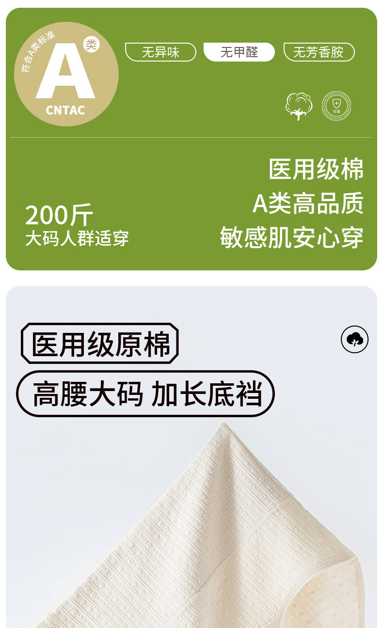 Algodón de alta calidad, cintura alta, gran tamaño, grasa MM200 kg, entrepierna larga, jacquard de algodón, gran tamaño, grado médico, algodón A
