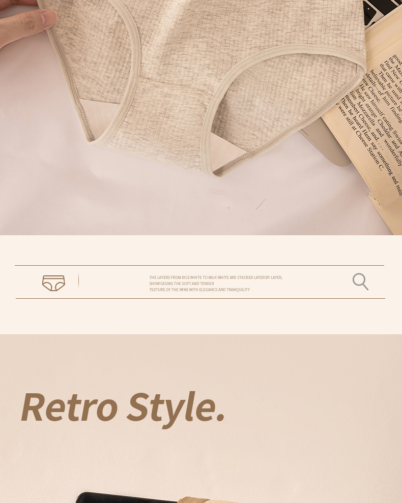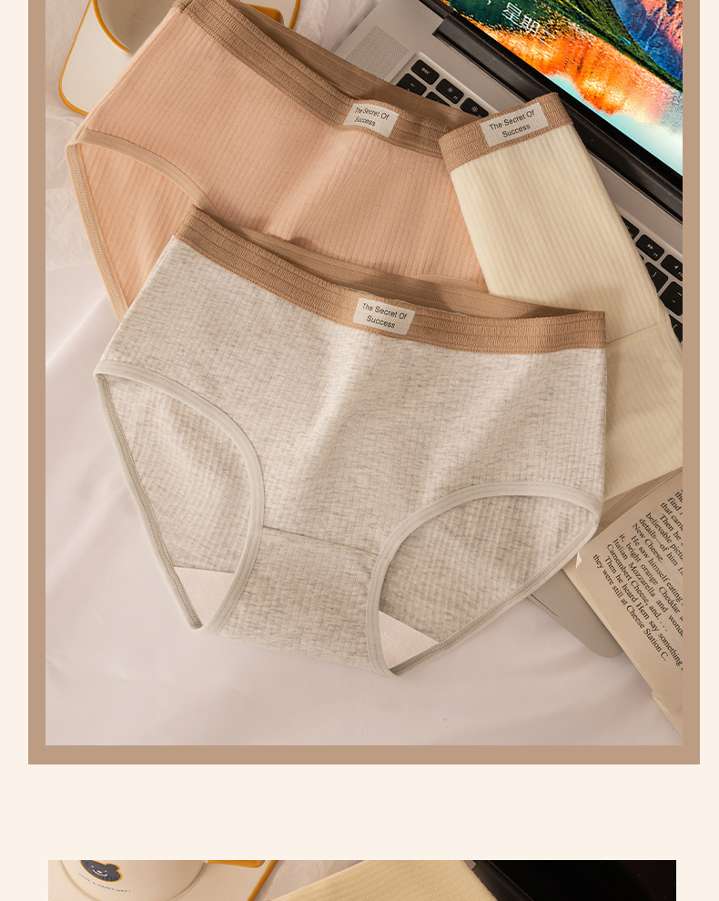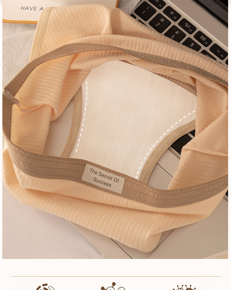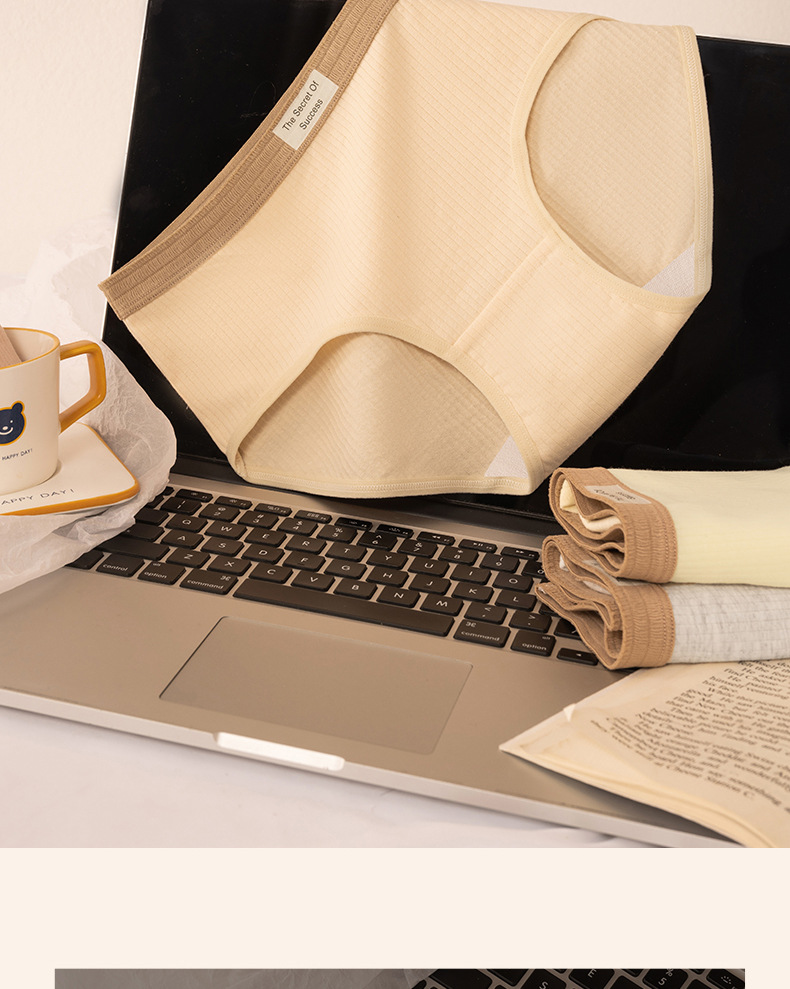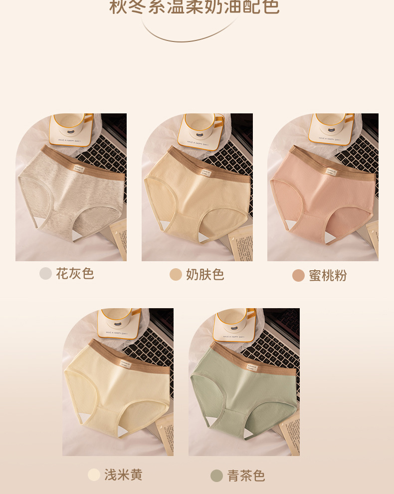 Estilo retro puro algodón antibacteriano 100% algodón entrepierna media cintura color sólido Maillard deportes sin costuras Otoño e Invierno ropa interior de mujer