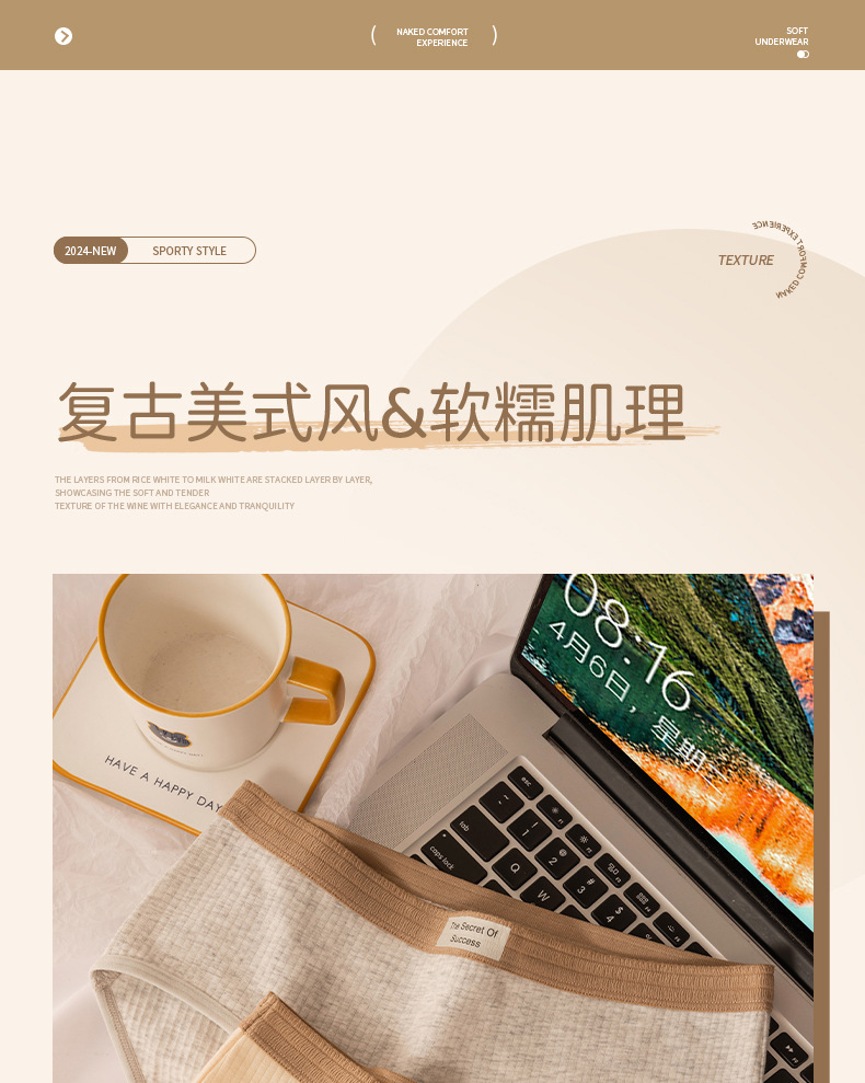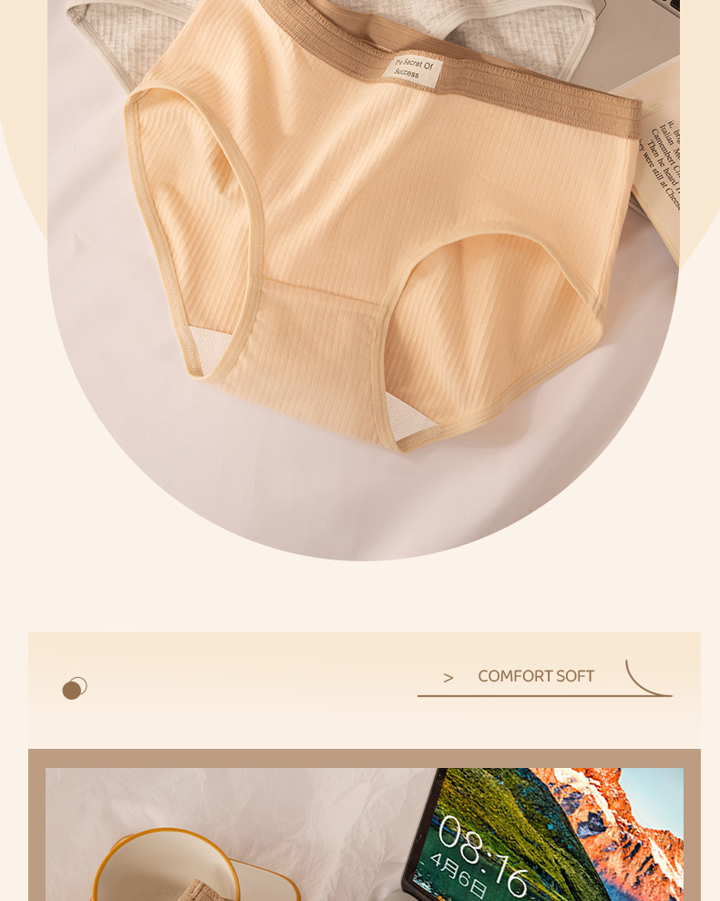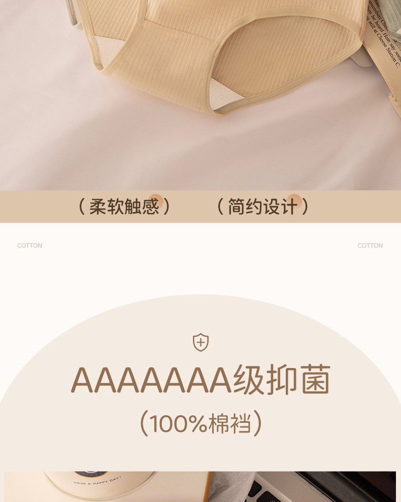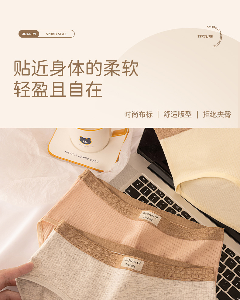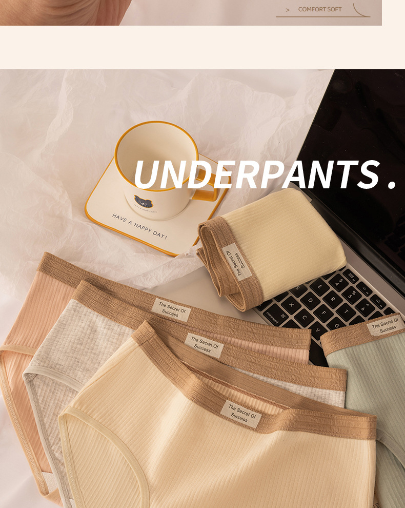 Estilo retro puro algodón antibacteriano 100% algodón entrepierna media cintura color sólido Maillard deportes sin costuras Otoño e Invierno ropa interior de mujer