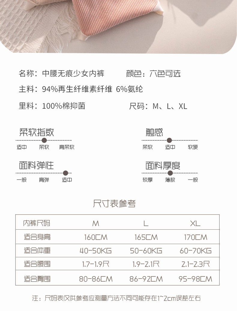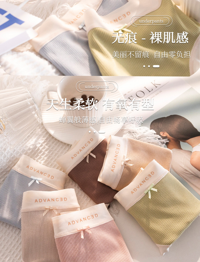 Ropa interior modal entrepierna de algodón puro de las mujeres sin costuras desnuda cintura media Transpirable Alto Elástico Triángulo de niña ropa interior corta