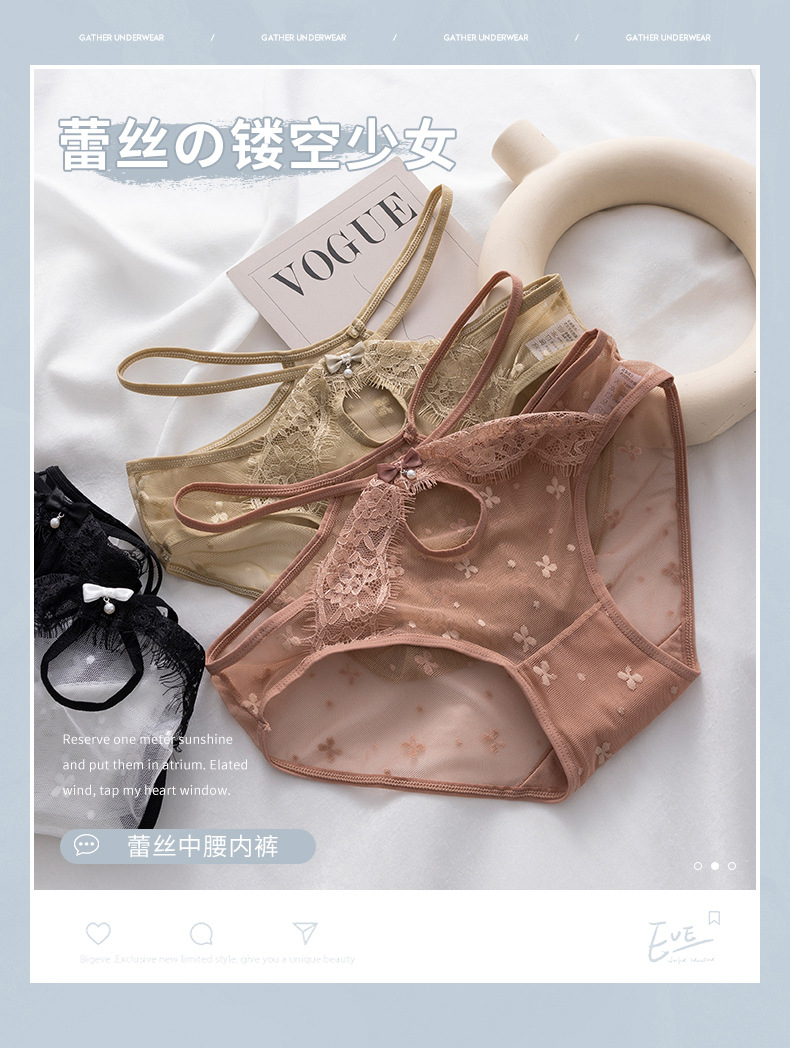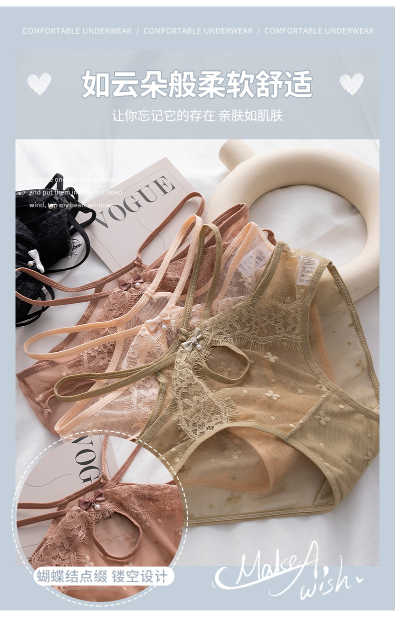 Otoño e Invierno de encaje sexy puro deseo sin costuras hueco Mediados de cintura de algodón chica 2022 ropa interior popular chica de moda