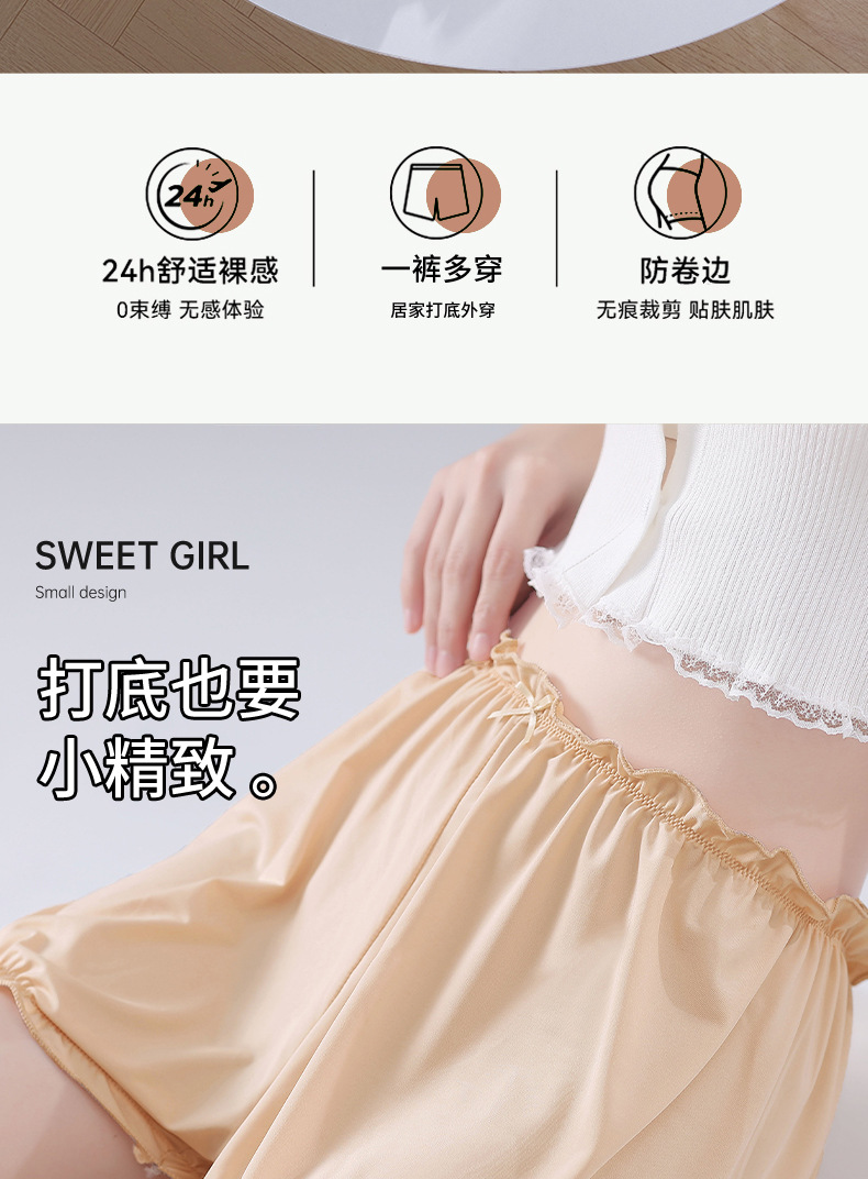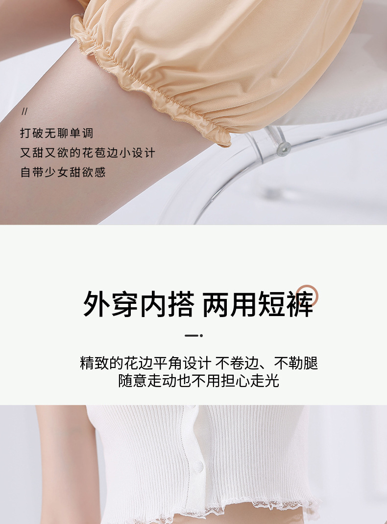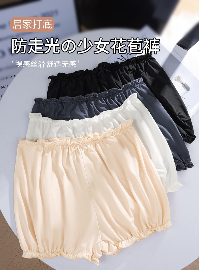 Pantalones de seguridad de linterna de seda de hielo para mujer, estilo fino de verano, pantalones de calabaza anti-desplazamiento, pantalones cortos de alta elasticidad, pantalones de seguridad para mujer