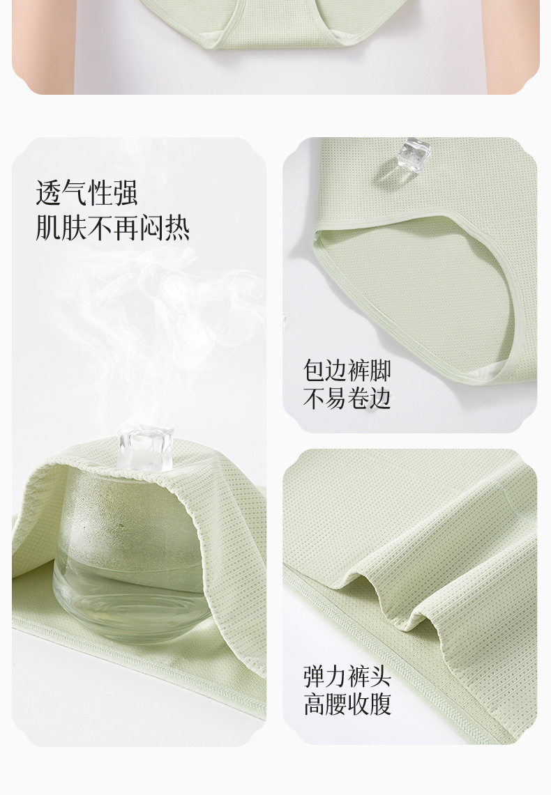 Primavera y verano nuevo agujero transpirable seda de hielo talla grande cintura alta abdomen 10A entrepierna antibacteriana entrepierna de algodón calzoncillos para mujer