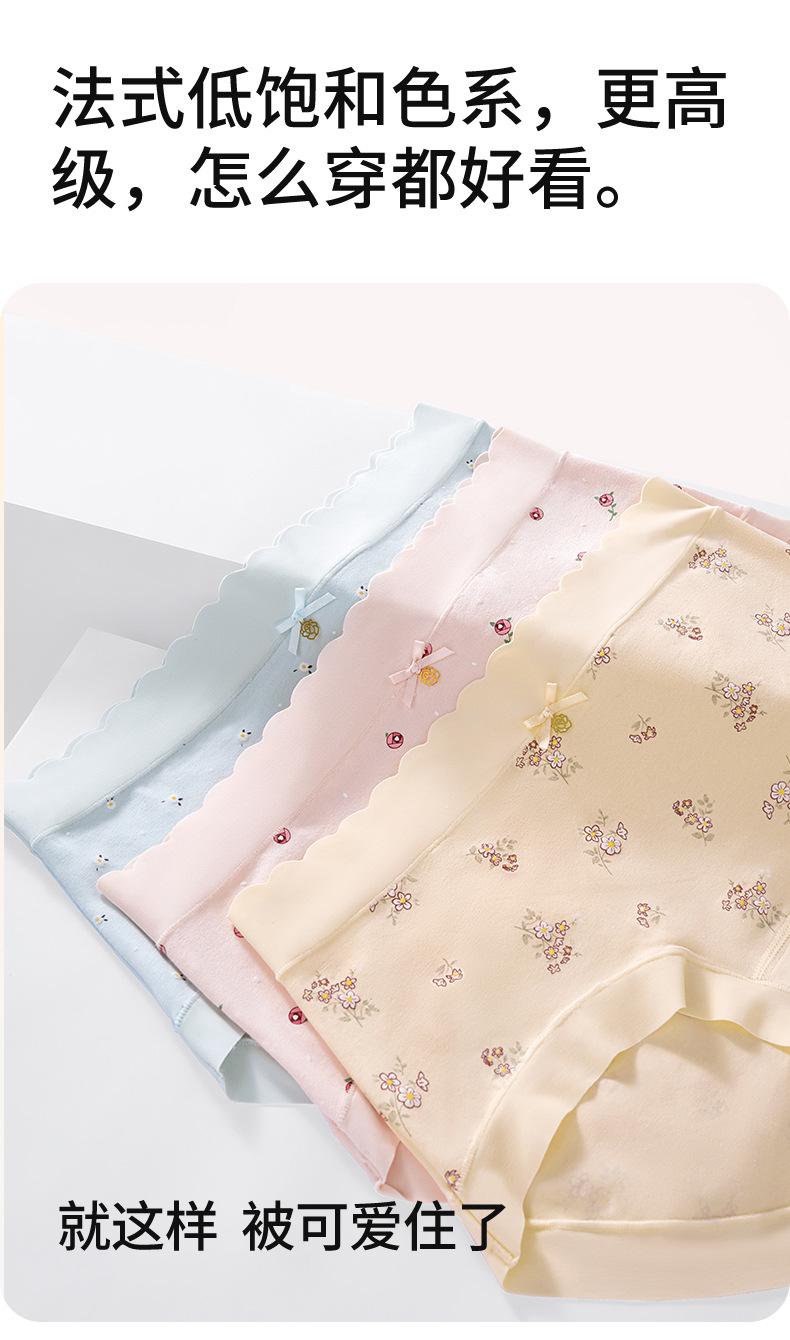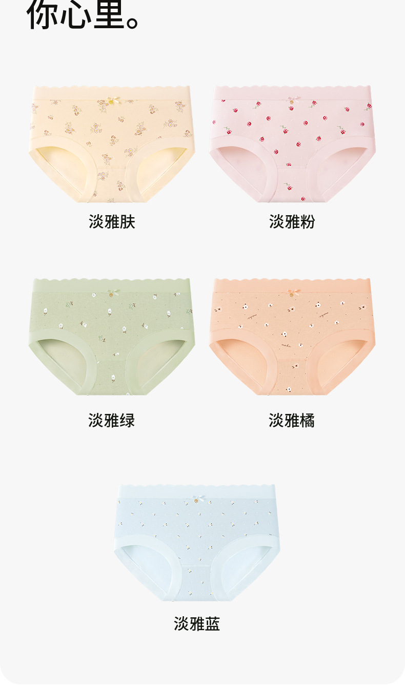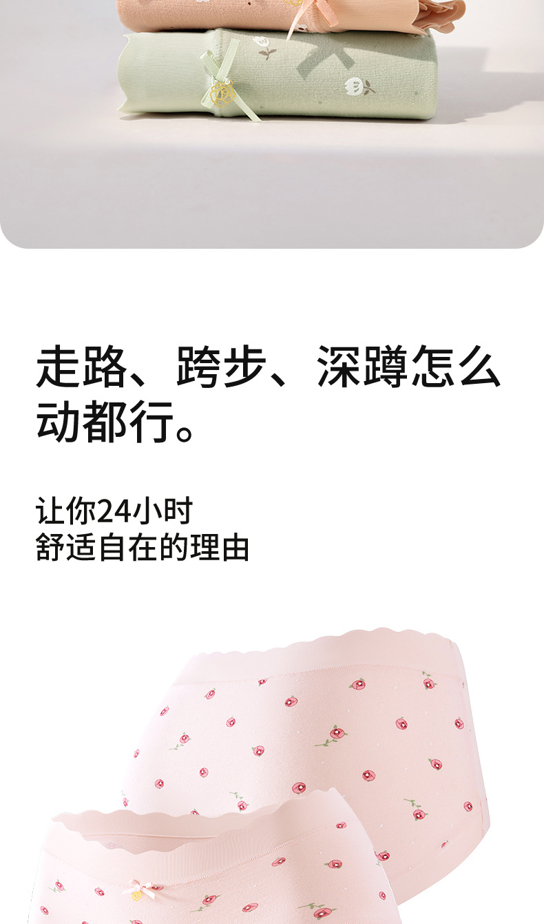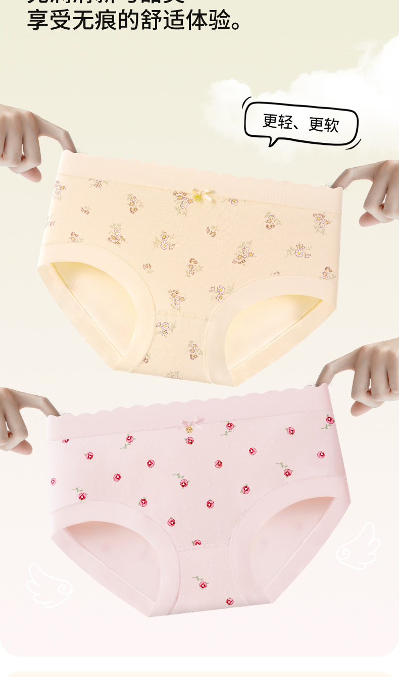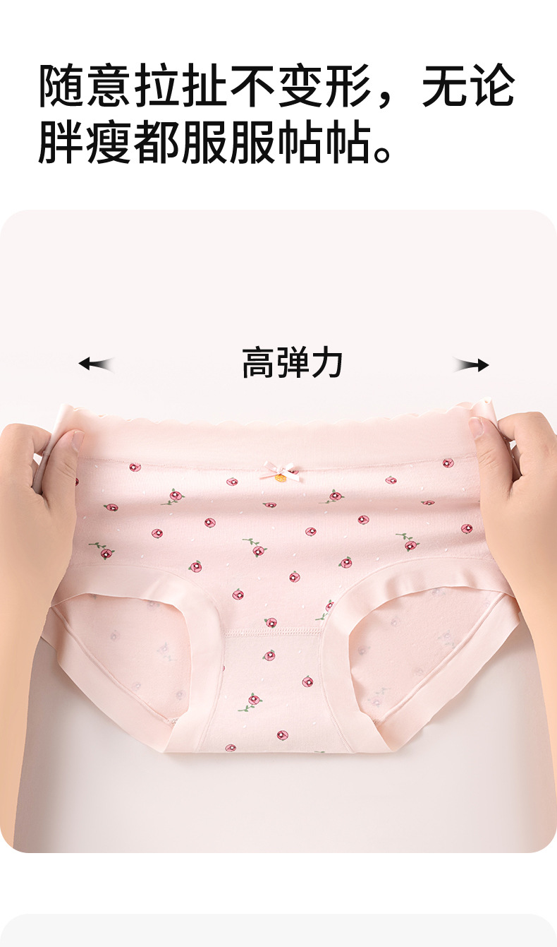 Ropa interior de mujer sin costuras de cintura media de algodón puro entrepierna antibacteriana transpirable y agradable para la piel algodón pequeño estampado fresco para mujer