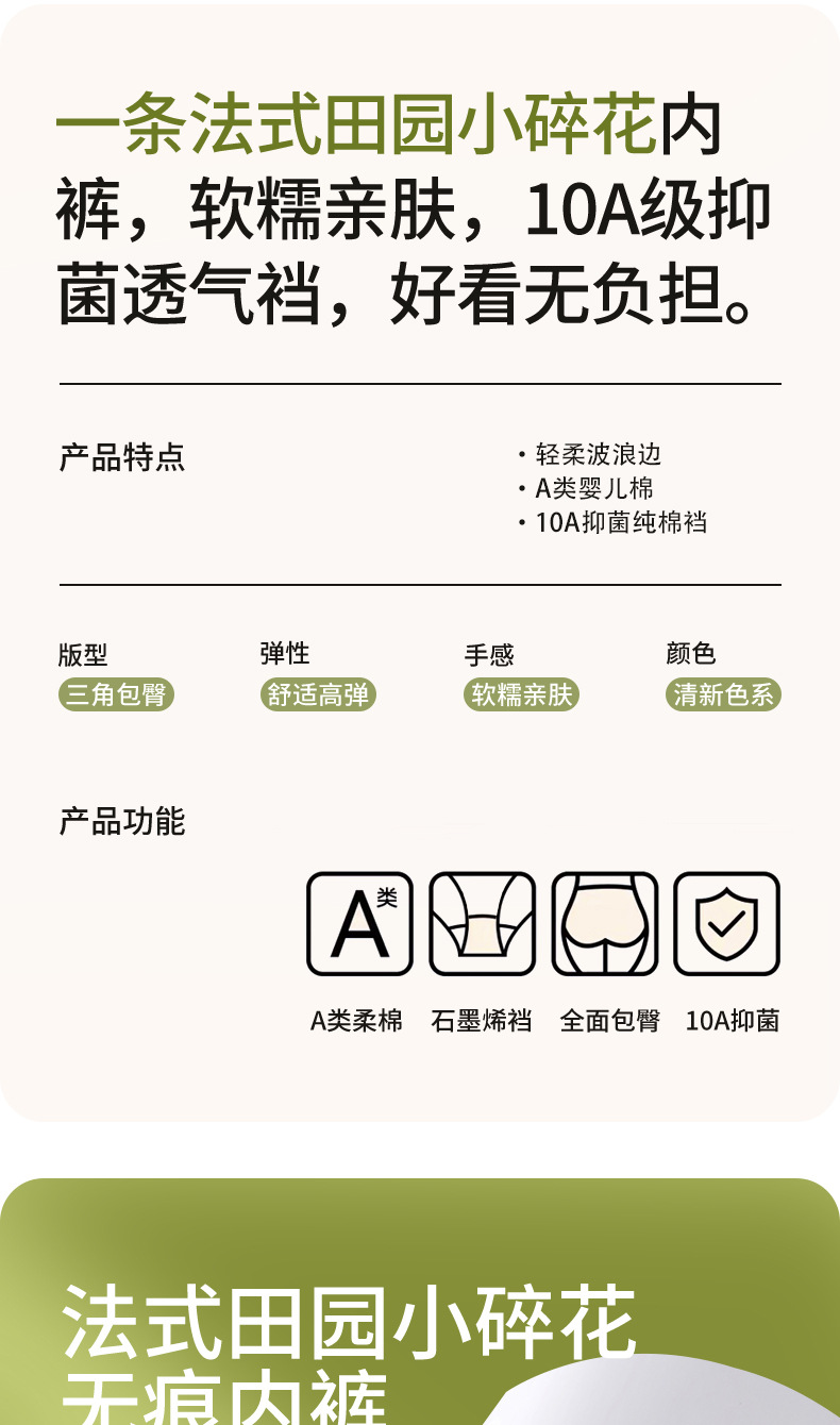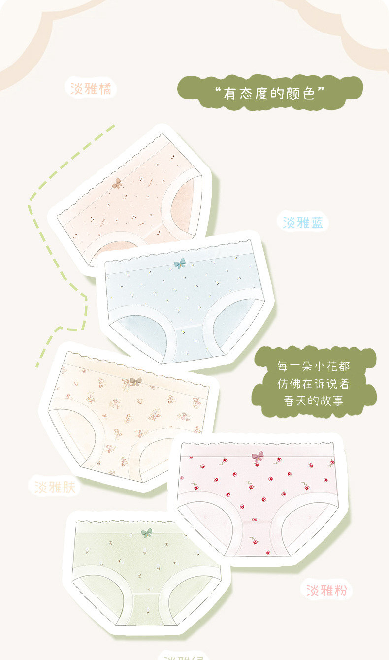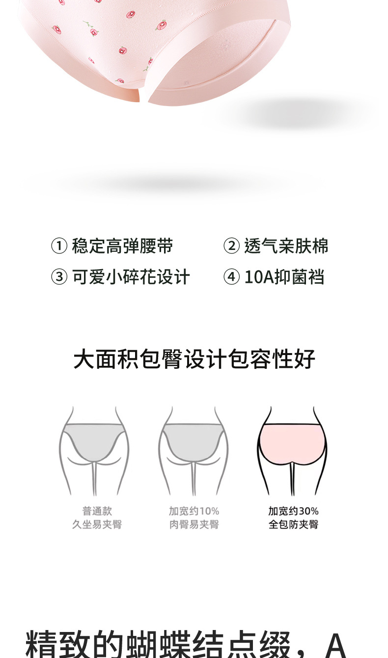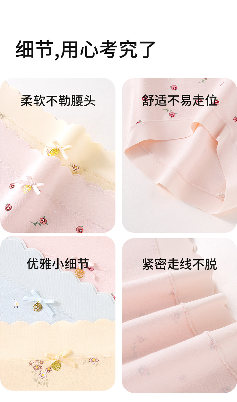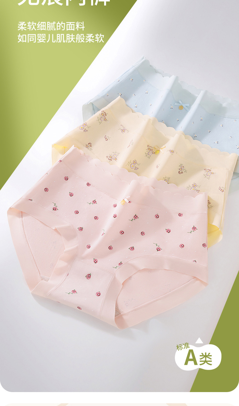 Ropa interior de mujer sin costuras de cintura media de algodón puro entrepierna antibacteriana transpirable y agradable para la piel algodón pequeño estampado fresco para mujer