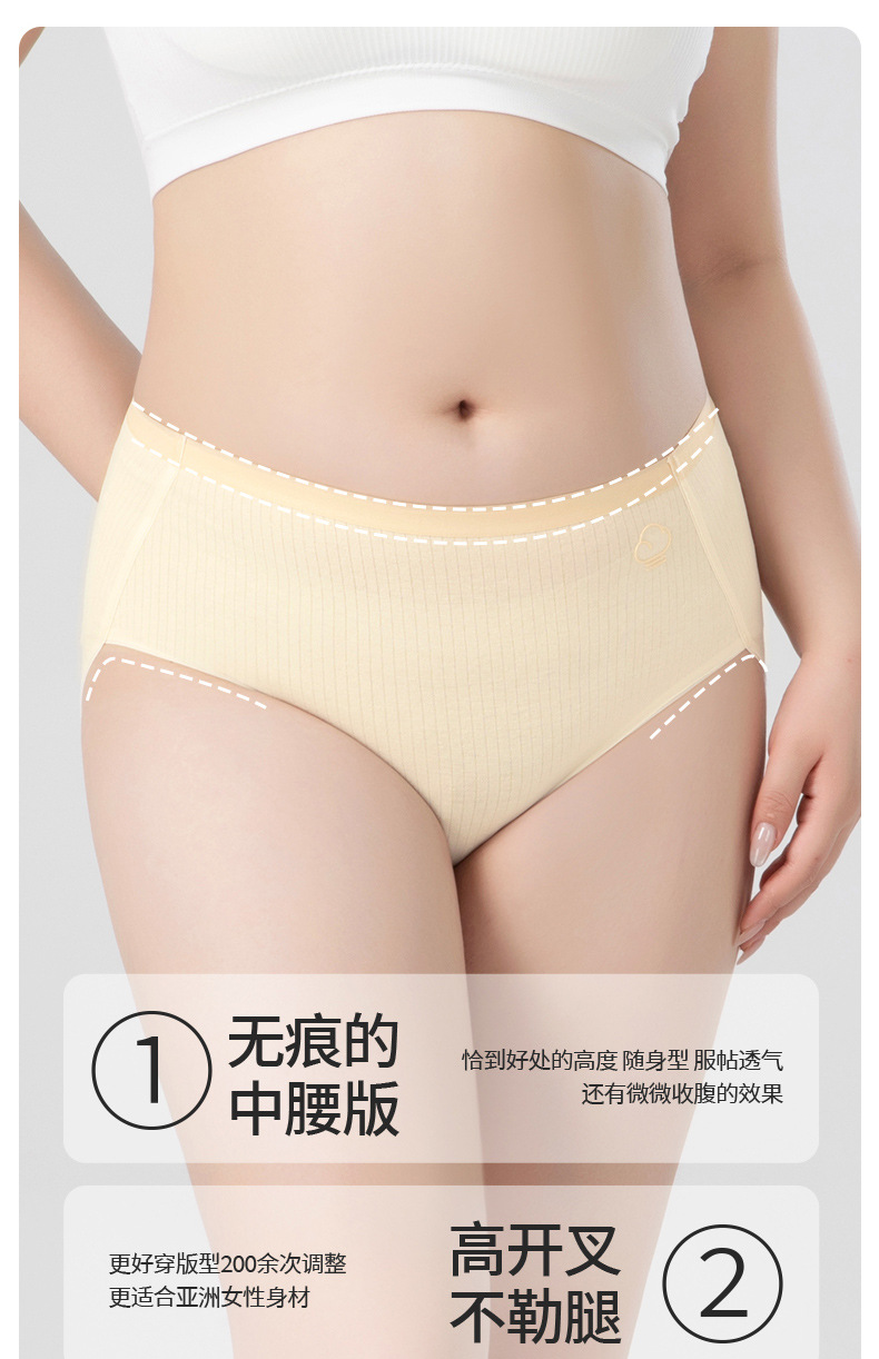 Sin costuras, alto elástico, cintura media, algodón de gran tamaño, bolso, clima de cadera, algodón puro 10A, entrepierna antibacteriana, entrepierna de algodón, calzoncillos para mujer