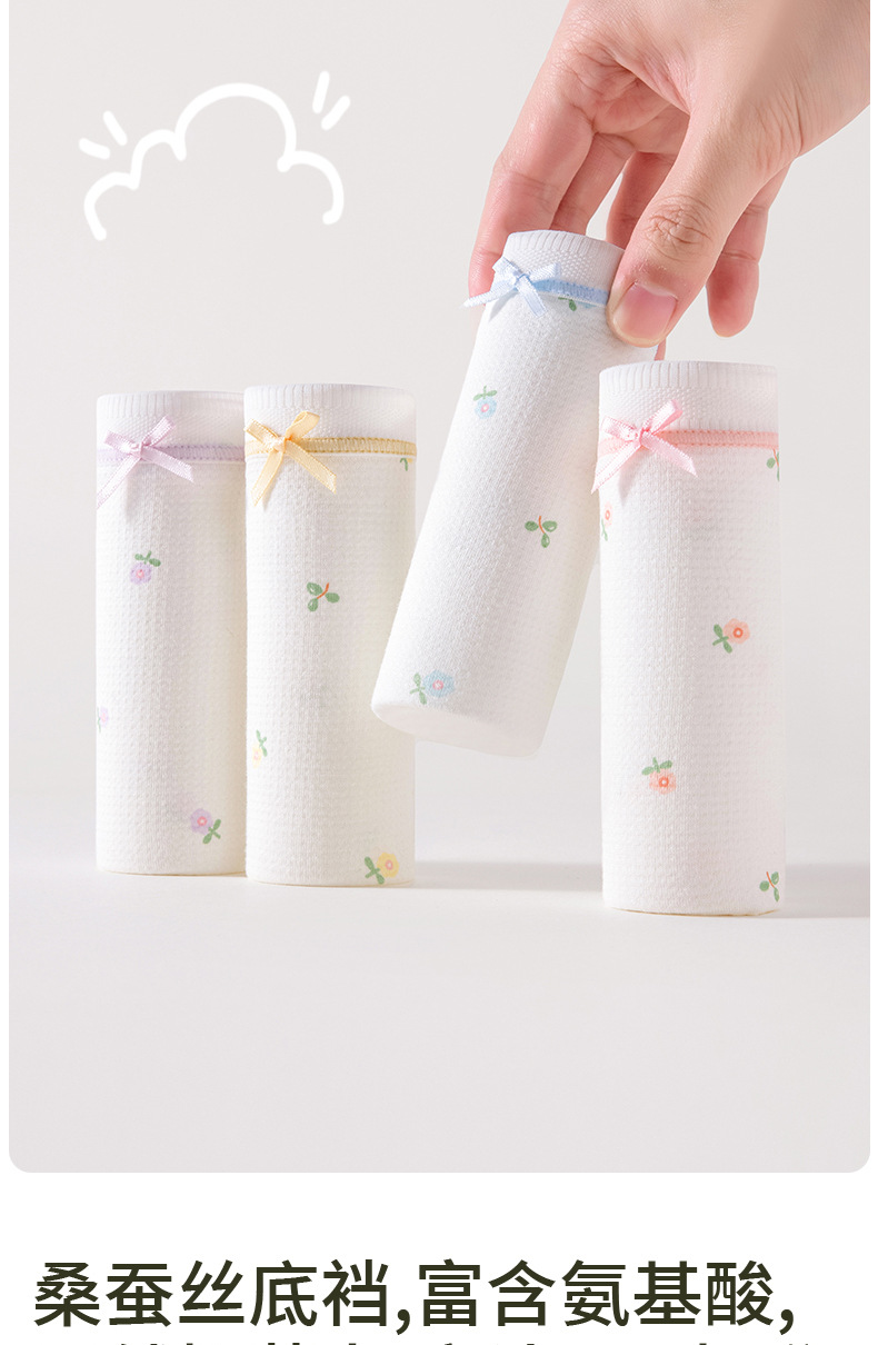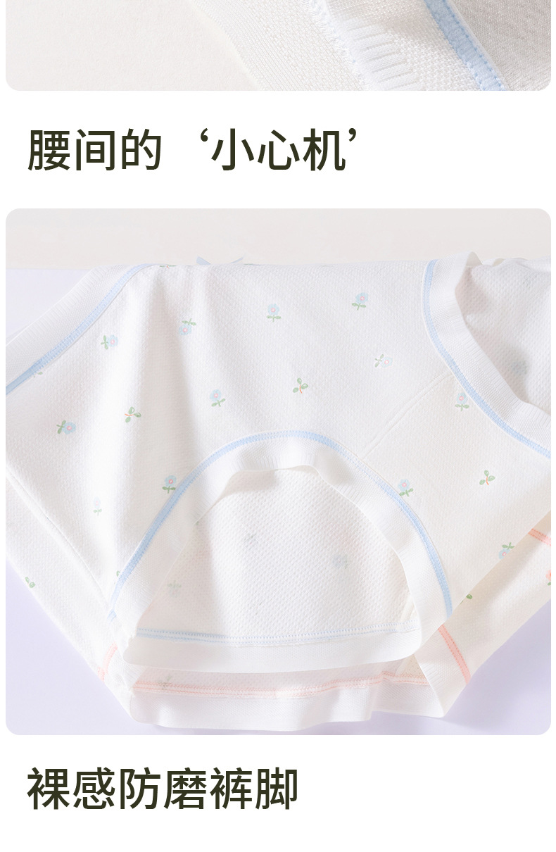 Waffle calzoncillos para mujer, entrepierna inferior de seda de morera, entrepierna antibacteriana, transpirable, niña linda, calzoncillos florales para mujer