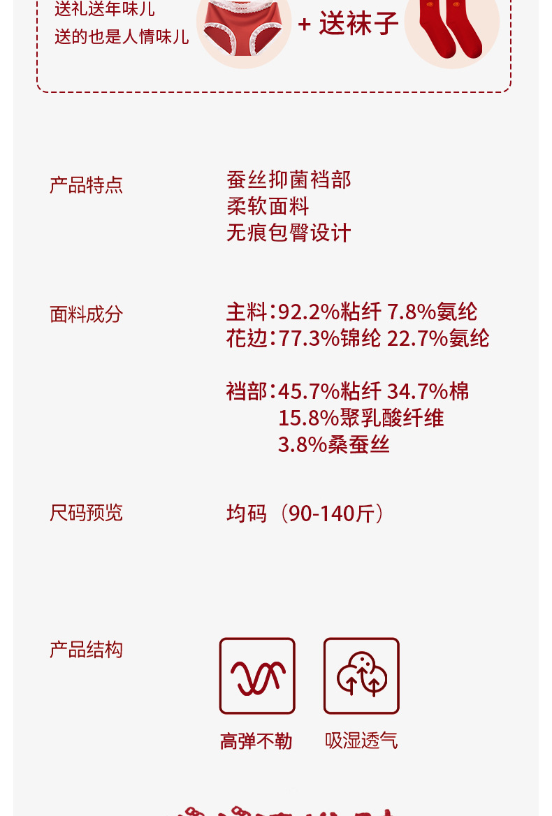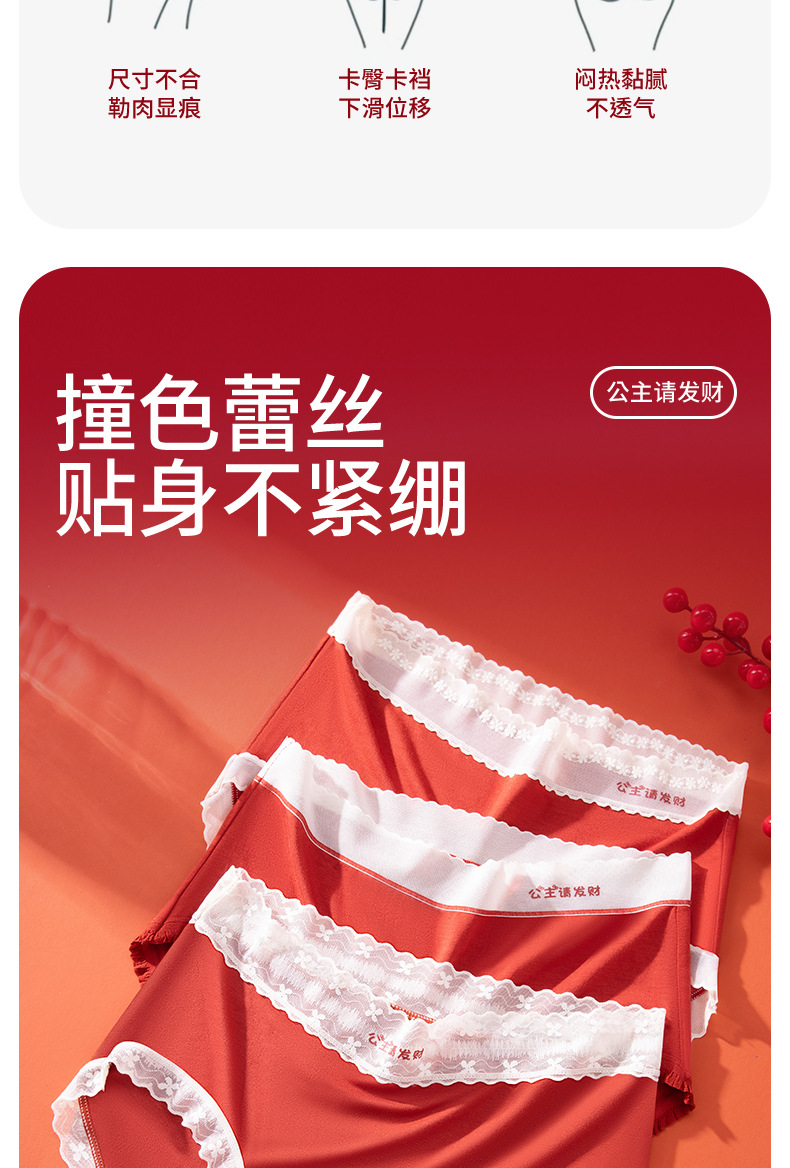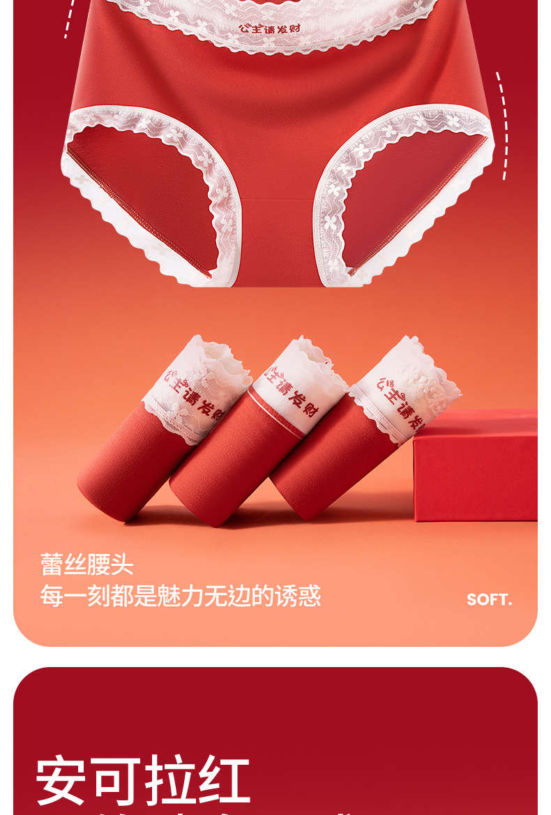 Princesa, por favor haz una fortuna, rojo Encora rojo, año de nacimiento, matrimonio, suerte, entrepierna de seda roja, calzoncillos rojos, calcetines gratis