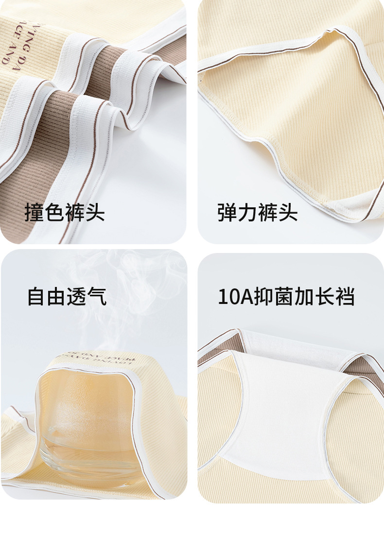 Algodón puro antibacteriano entrepierna Algodón puro Clase A Cintura media sin costuras 2024 Nuevo calzoncillos de mujer de color de contraste de entrepierna de algodón de Xinjiang