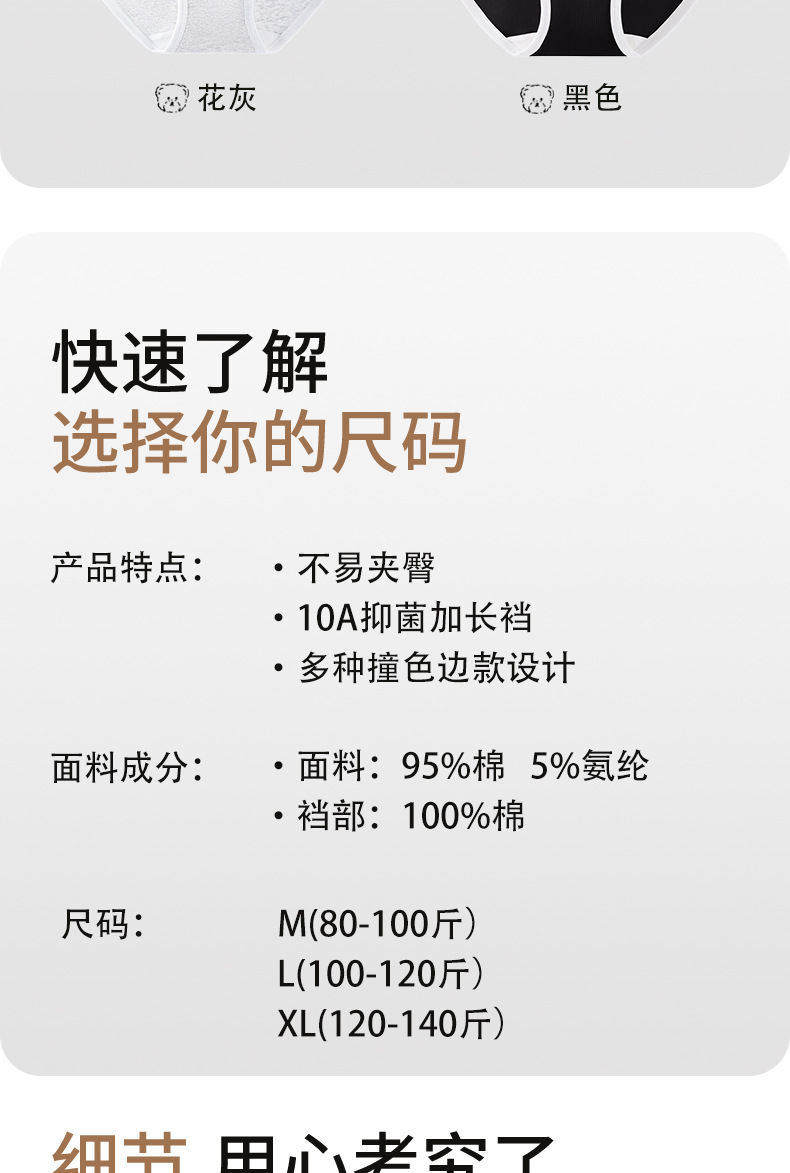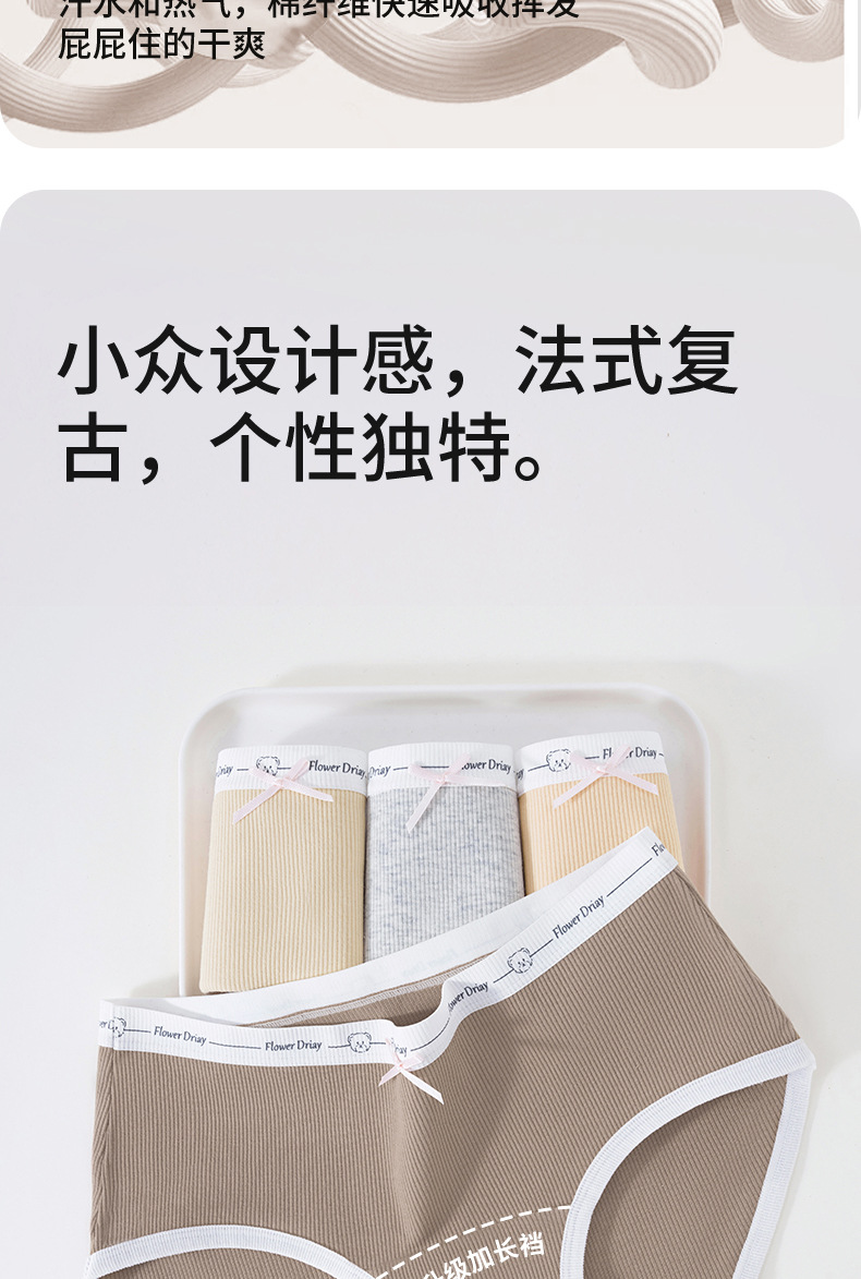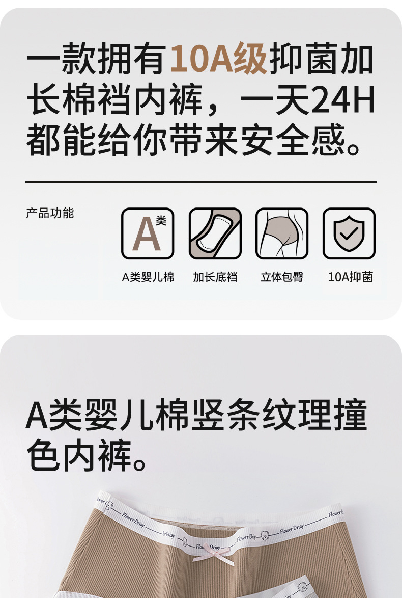 Algodón puro entrepierna antibacteriana Algodón puro Clase A Cintura media sin costuras 2024 Nuevo estilo interior largo, transpirable y agradable para la piel calzoncillos para mujer