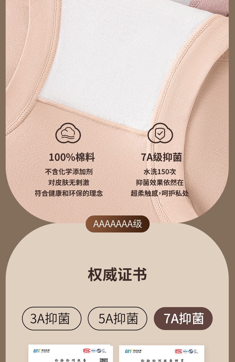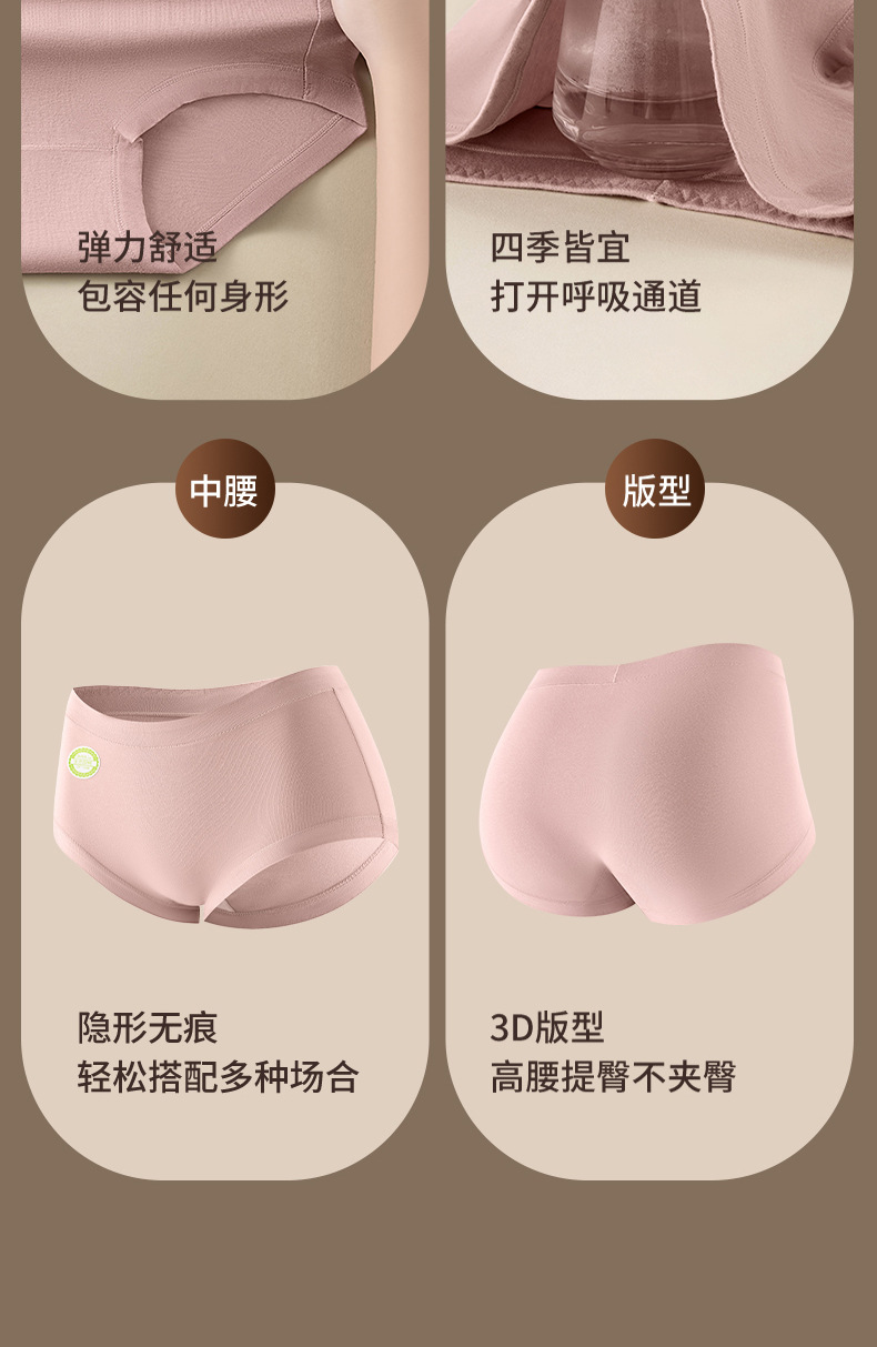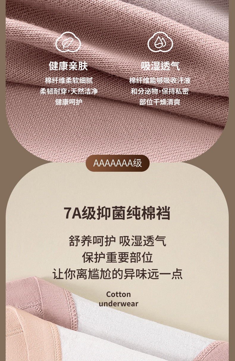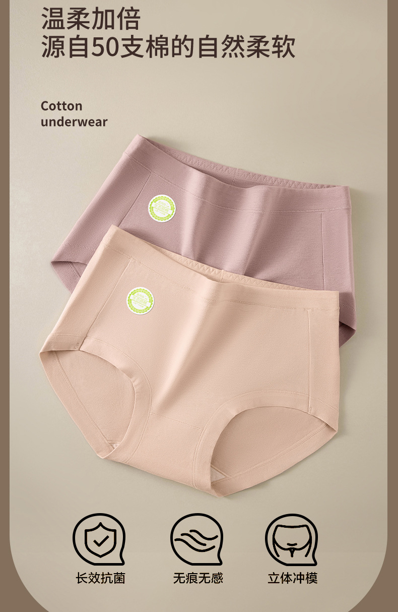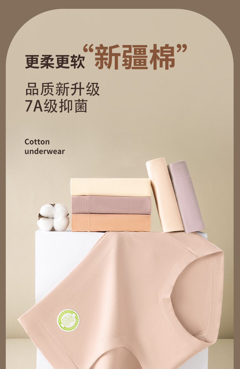 Xinjiang ropa interior de cadera transpirable suave de algodón de fibra larga 7A antibacteriano 100% algodón entrepierna calzoncillos de cintura media para mujer
