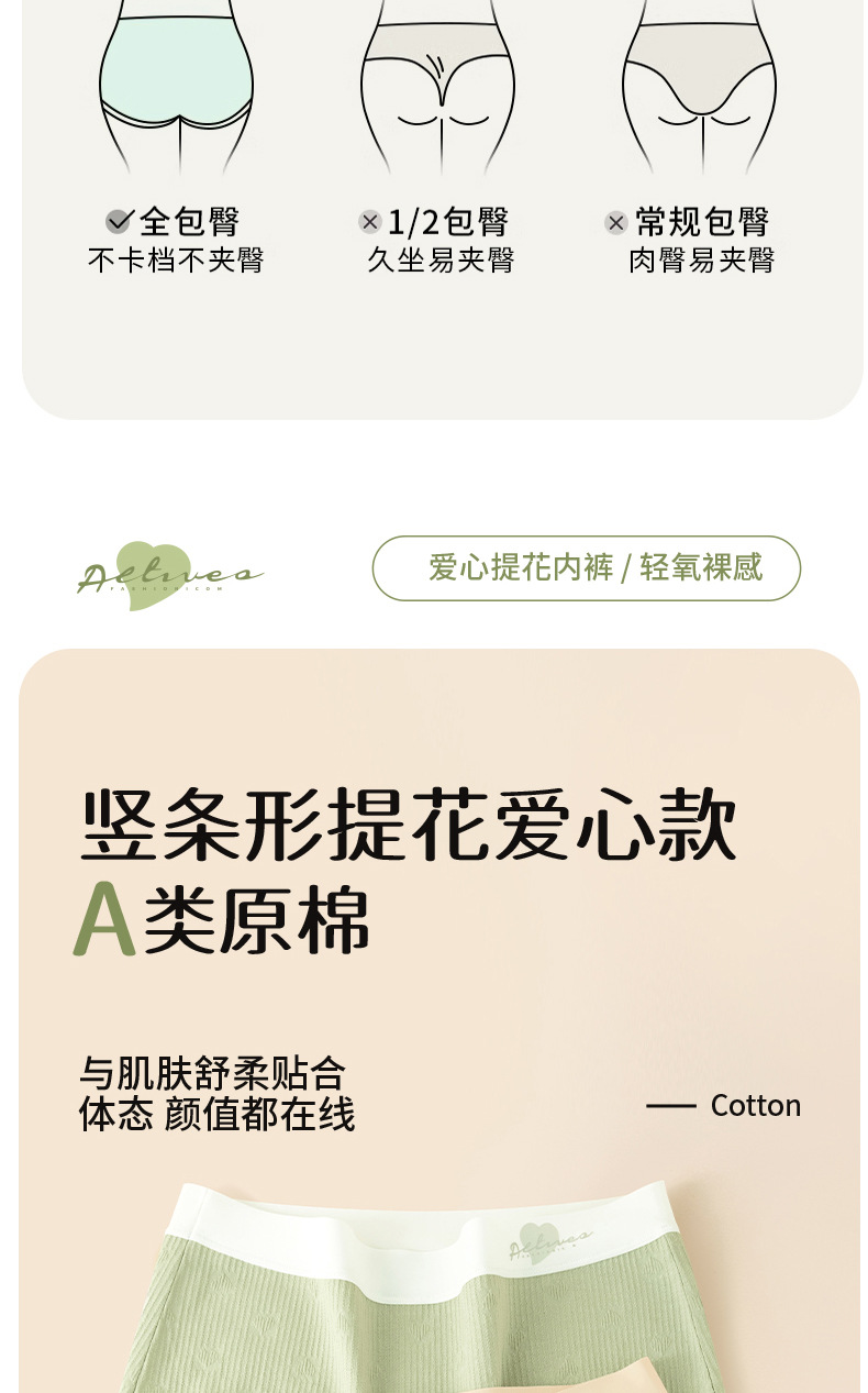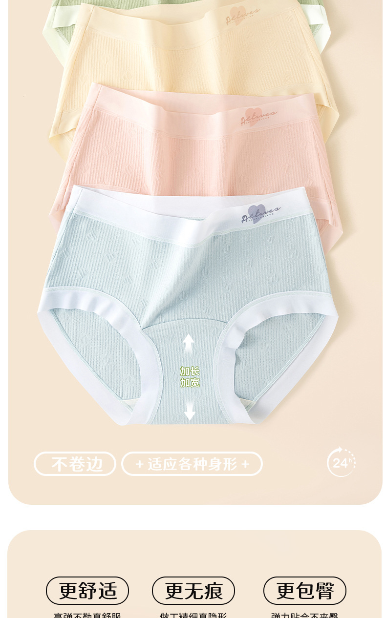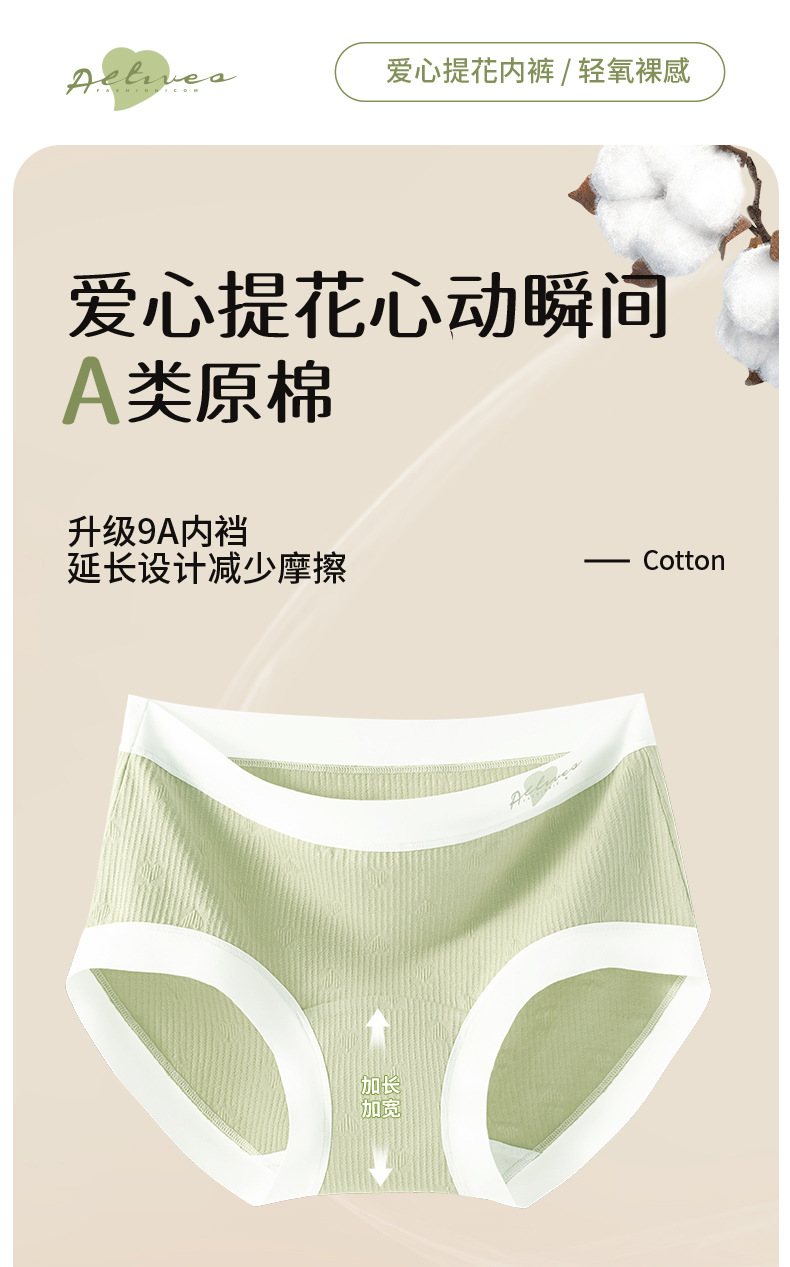 Ropa interior de algodón jacquard de amor de algodón de clase A ~ 9A antibacteriano alarga y ensancha 100% algodón entrepierna cintura media ropa interior transpirable mujer