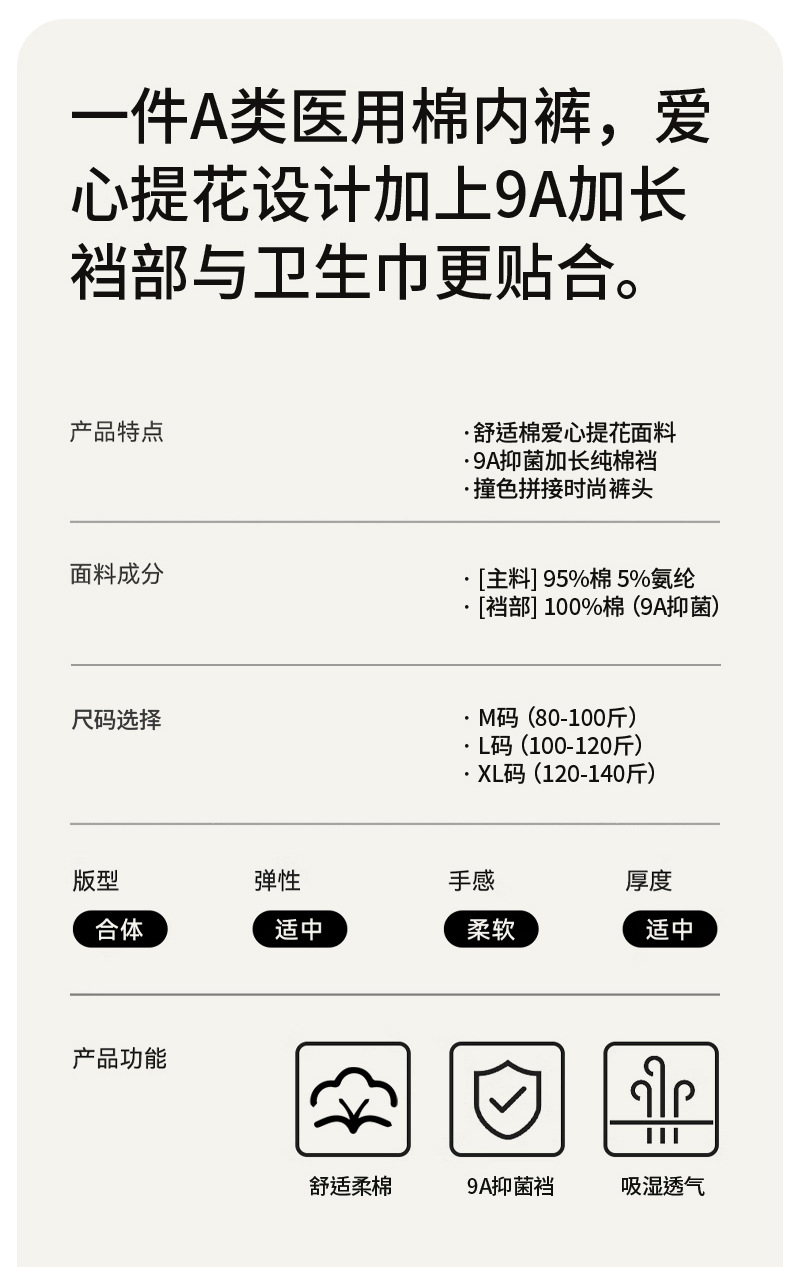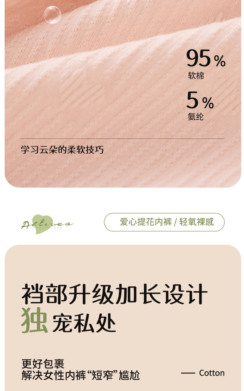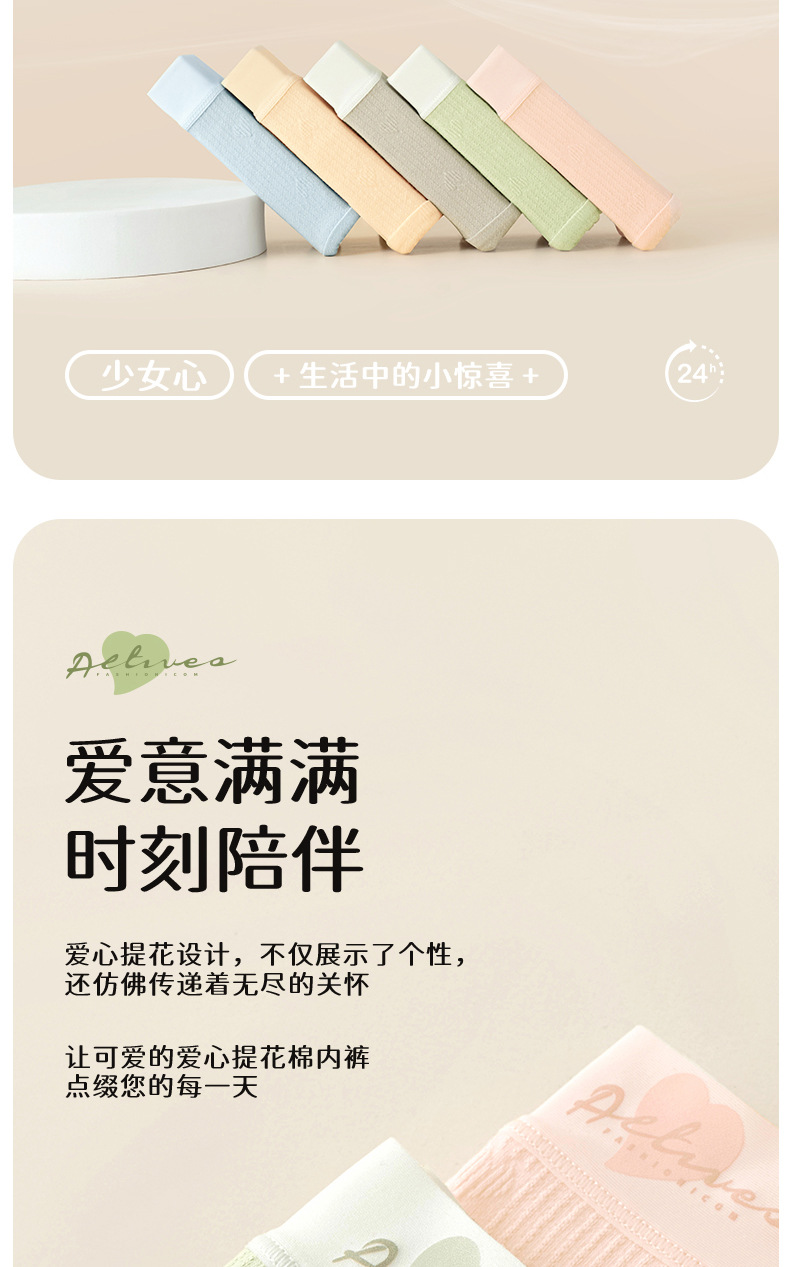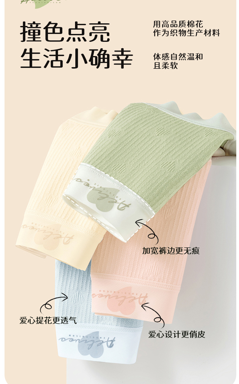 Ropa interior de algodón jacquard de amor de algodón de clase A ~ 9A antibacteriano alarga y ensancha 100% algodón entrepierna cintura media ropa interior transpirable mujer